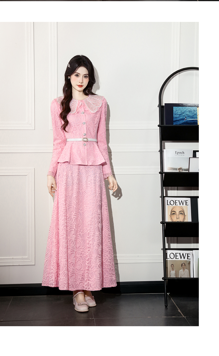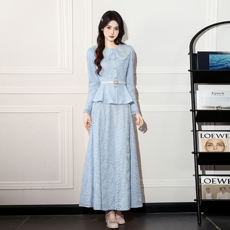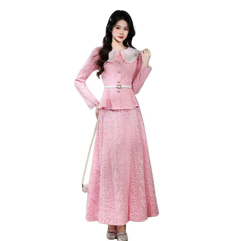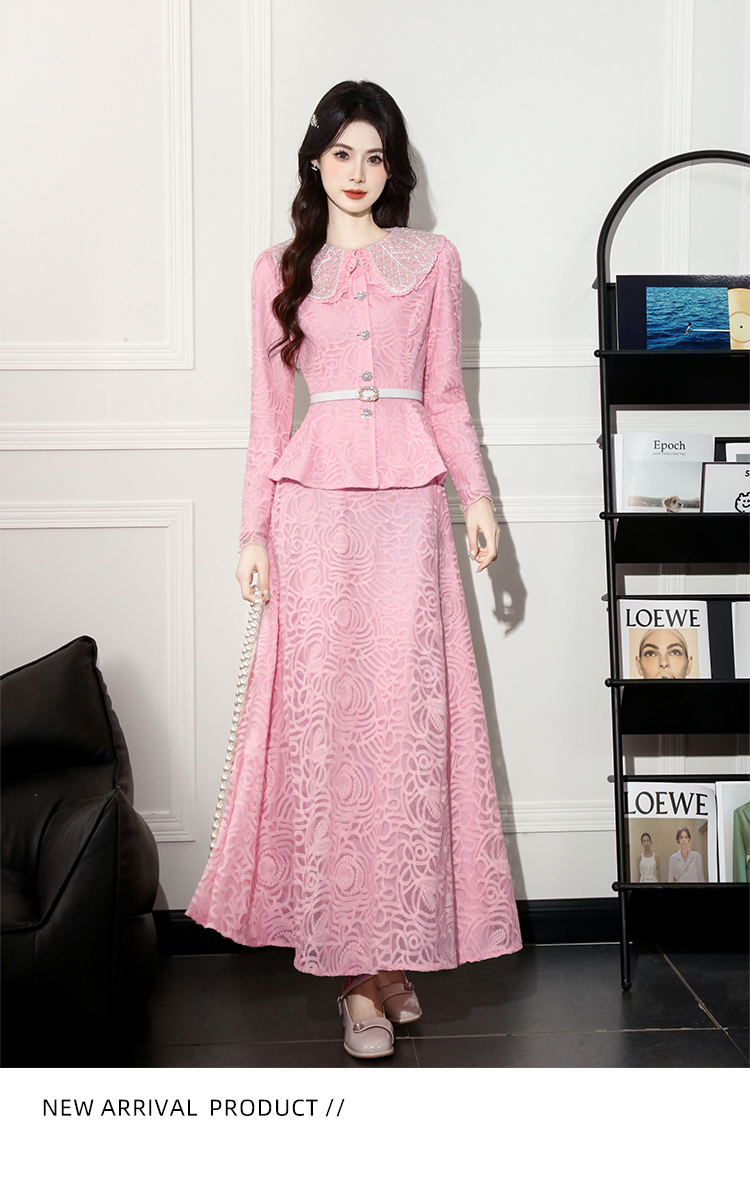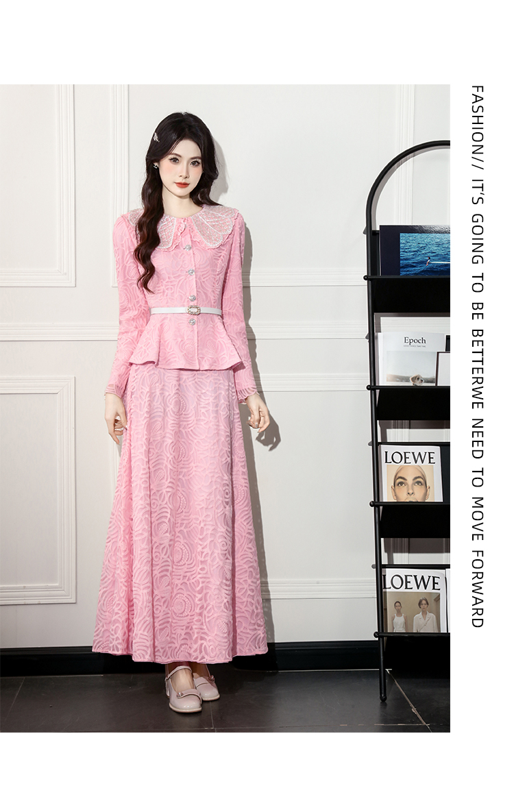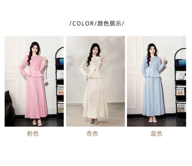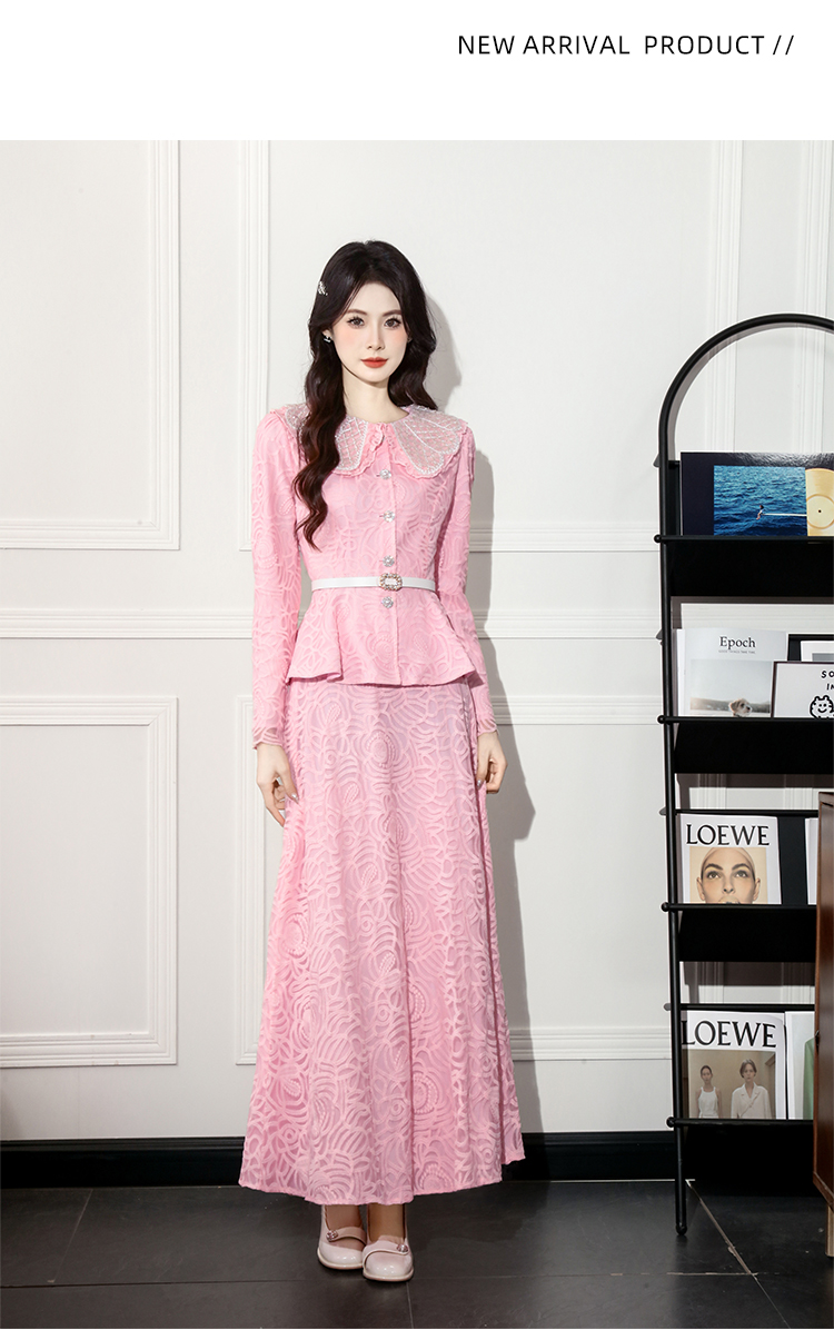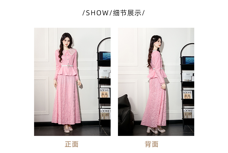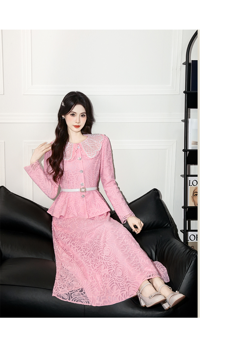MY14151# 新款时尚重工钉珠收腰显瘦长袖两件套蕾丝连衣裙女裝貨源服裝批發