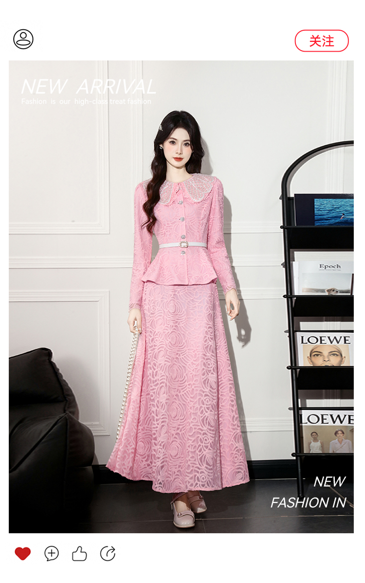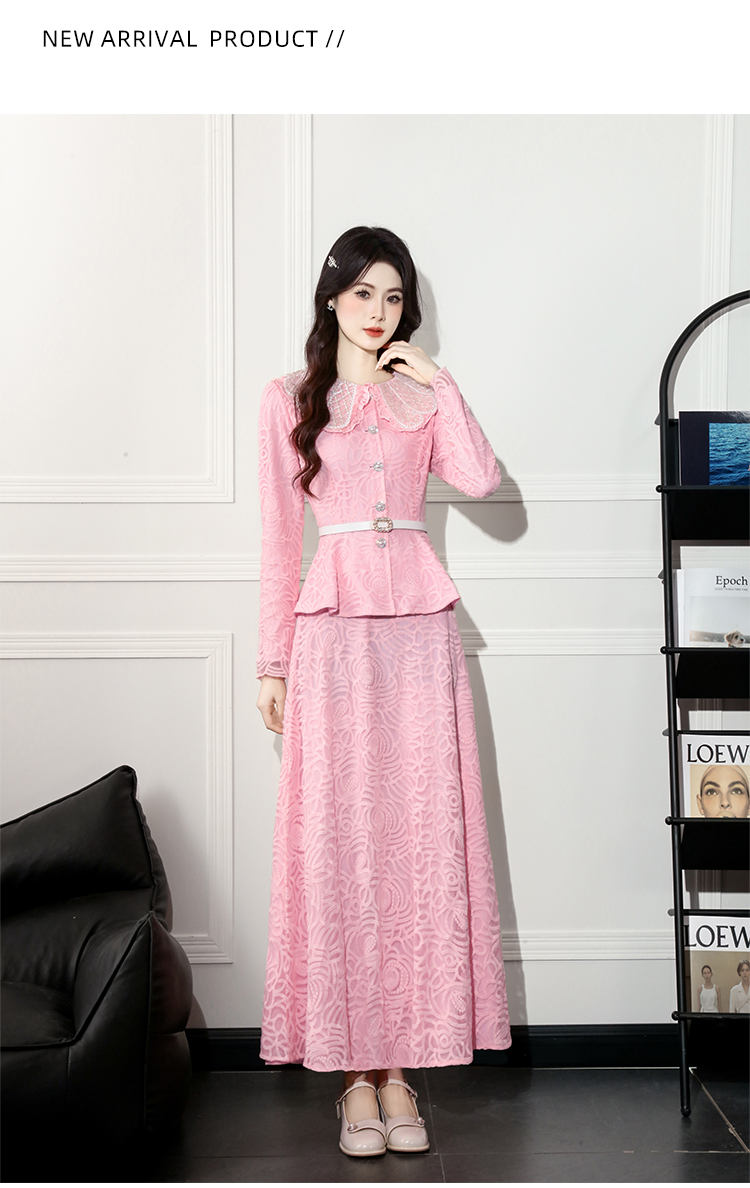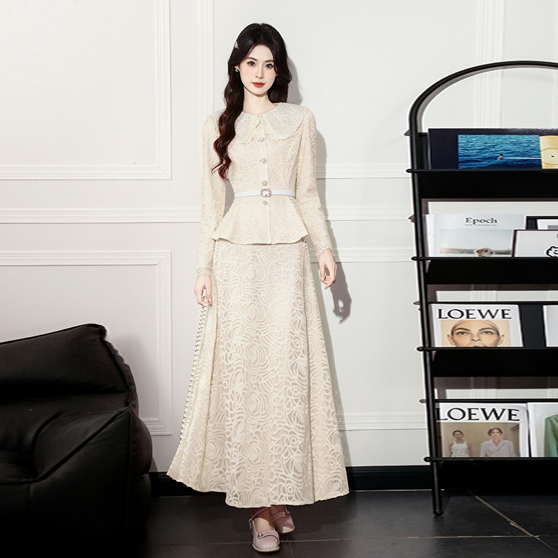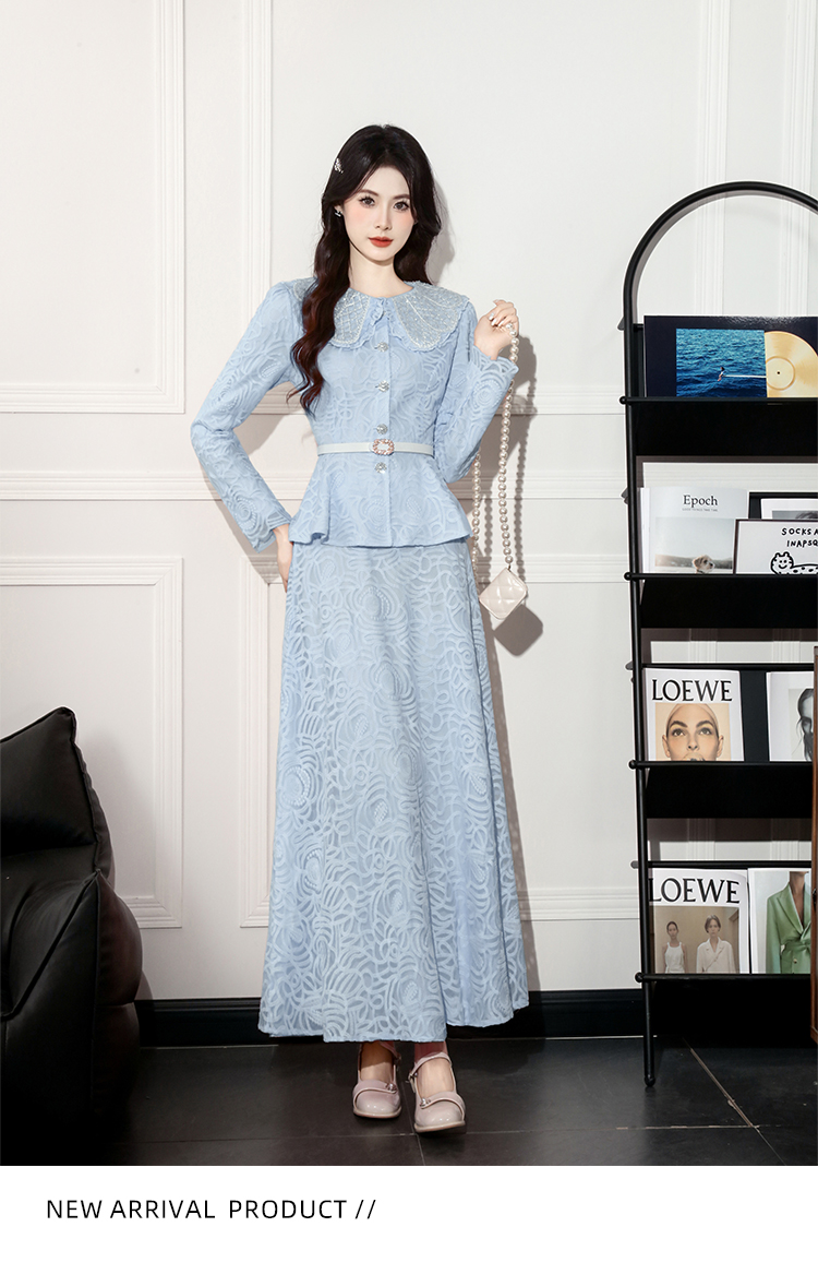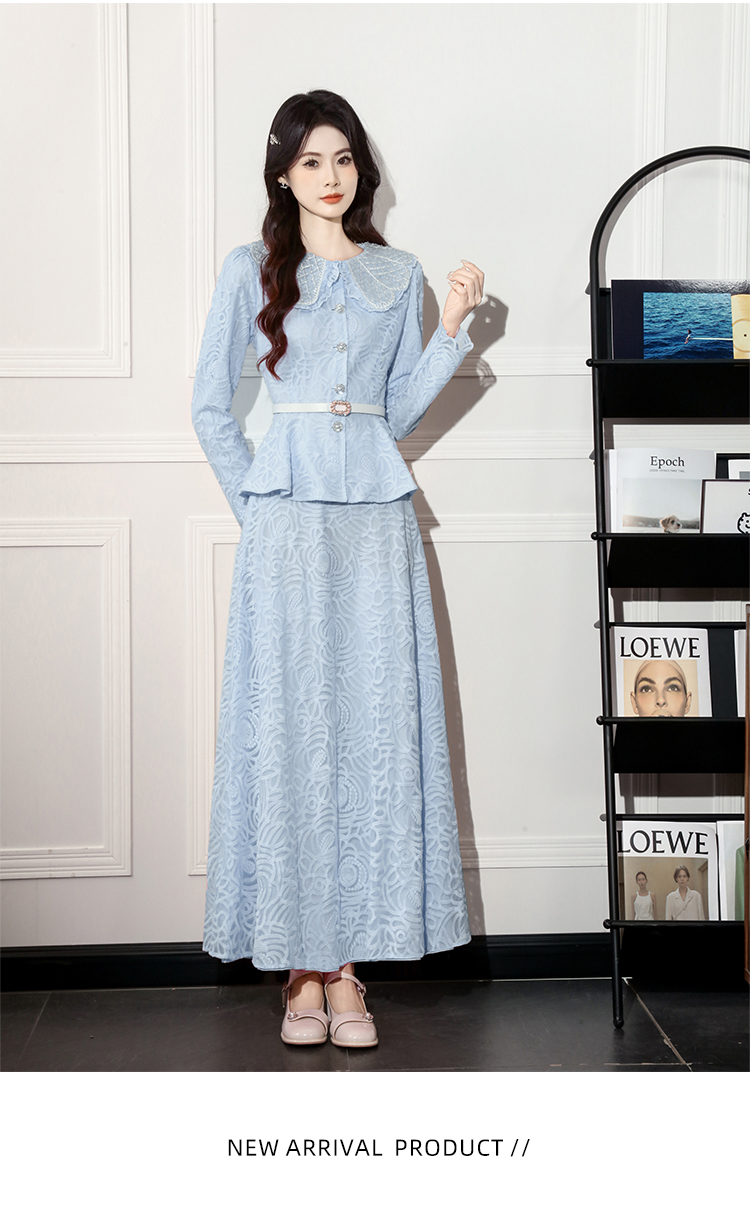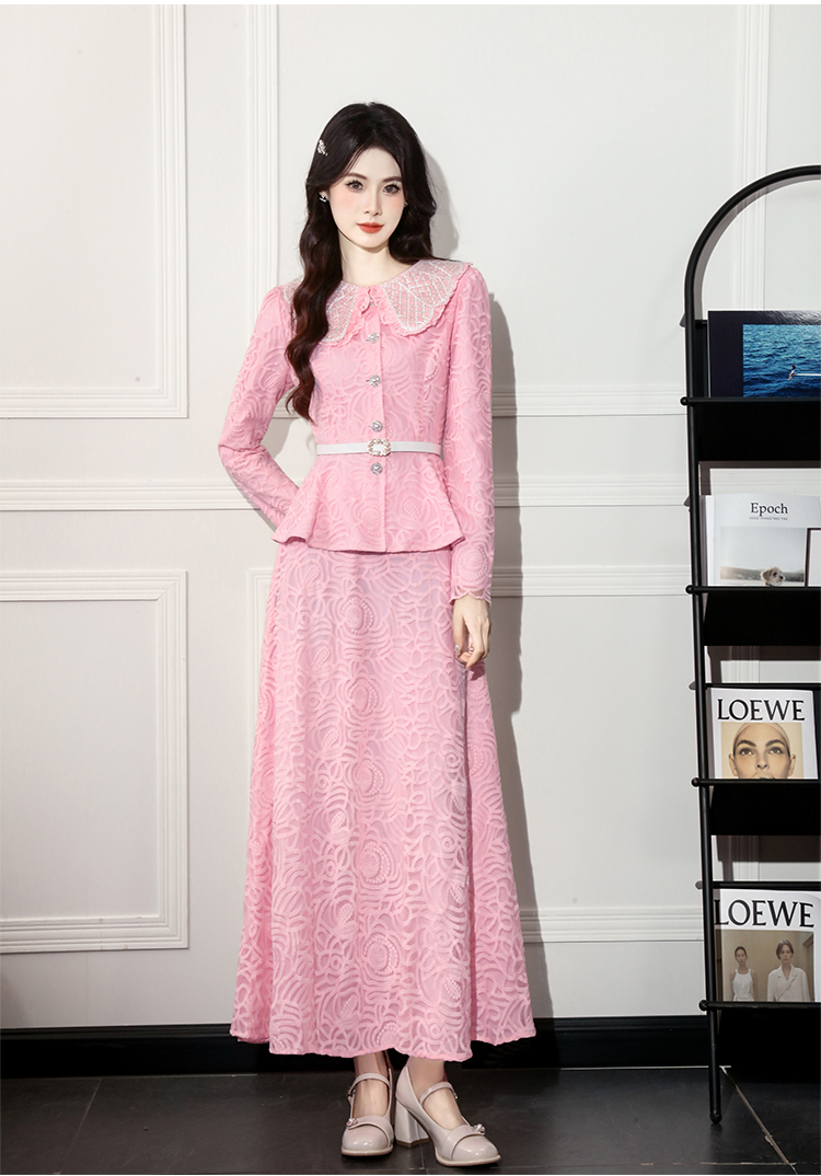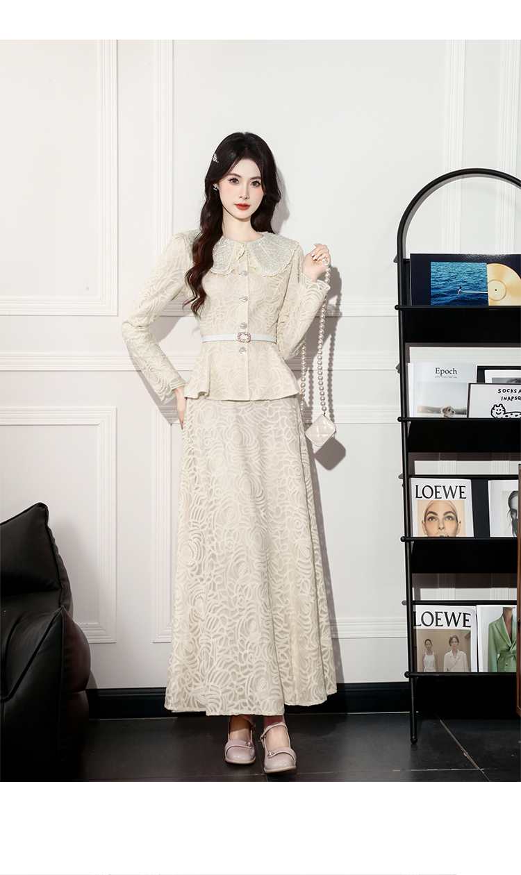 MY14151# 新款时尚重工钉珠收腰显瘦长袖两件套蕾丝连衣裙女裝貨源服裝批發