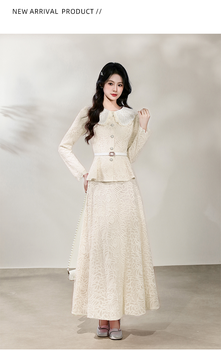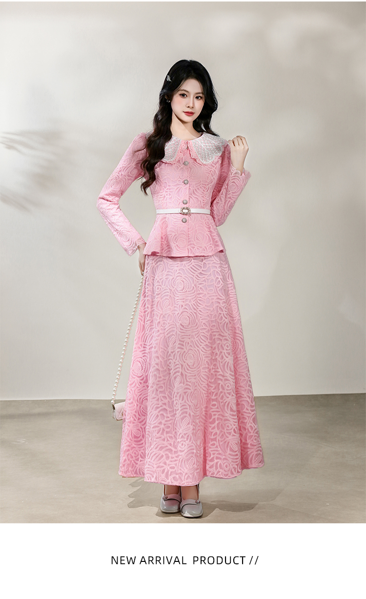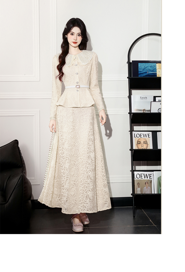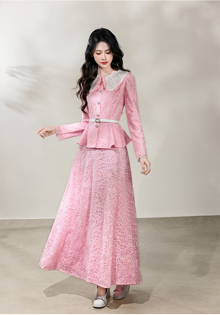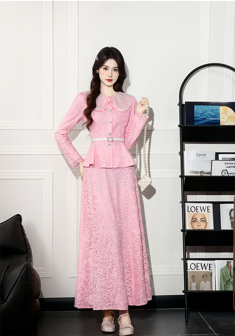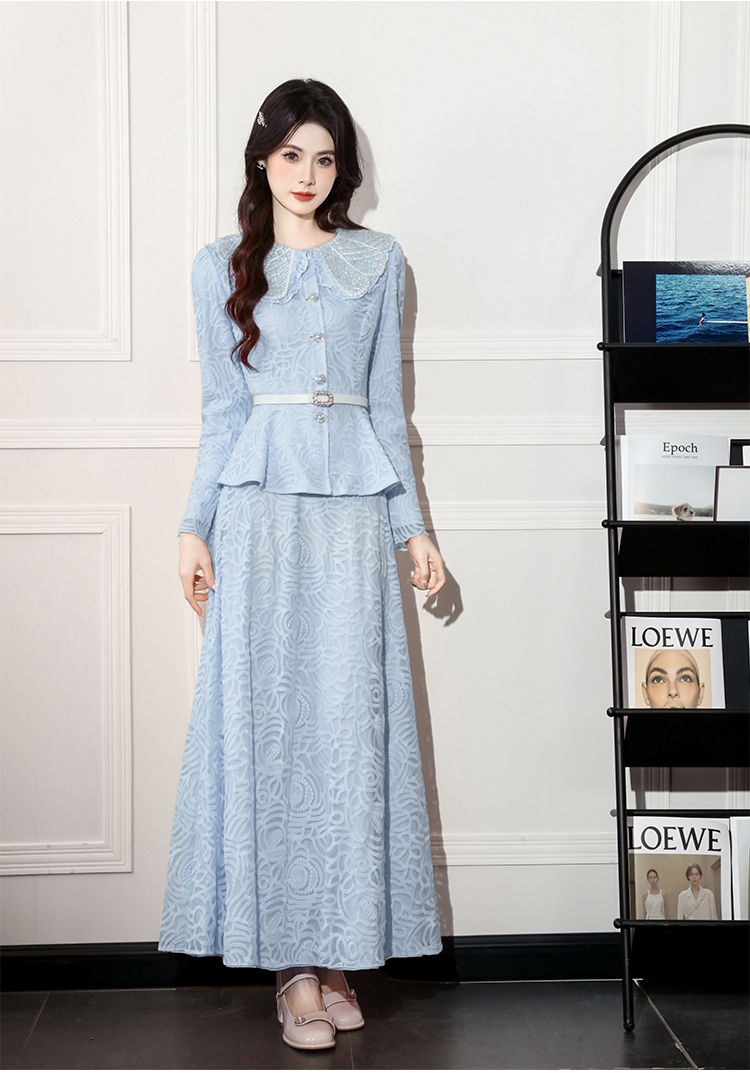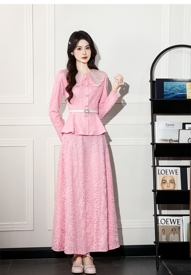 MY14151# 新款时尚重工钉珠收腰显瘦长袖两件套蕾丝连衣裙女裝貨源服裝批發