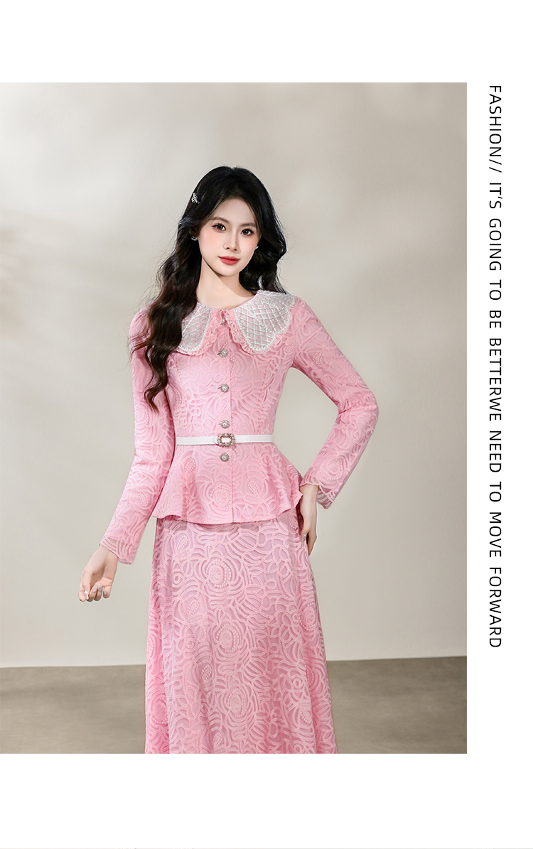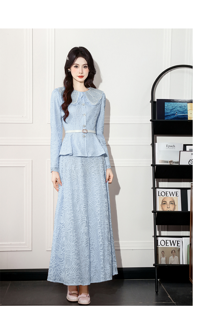 MY14150# 新款韩系温柔风V领镶钻蕾丝长袖上衣鱼尾裙套装女裝貨源服裝...