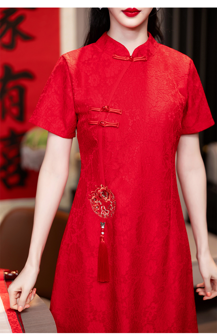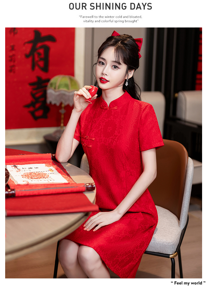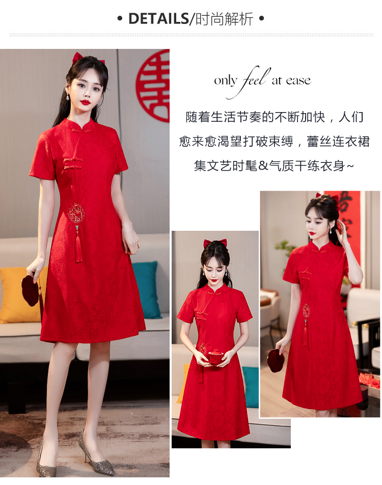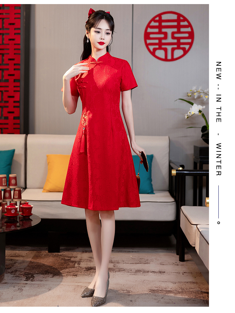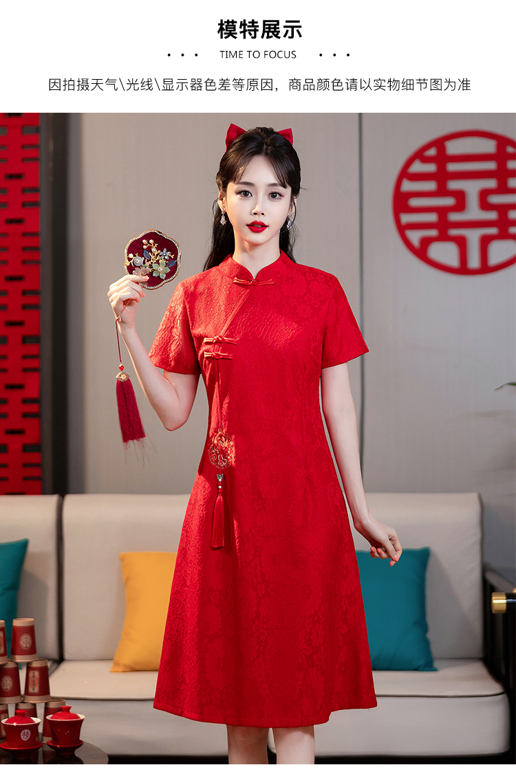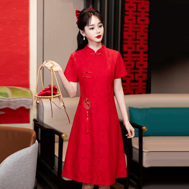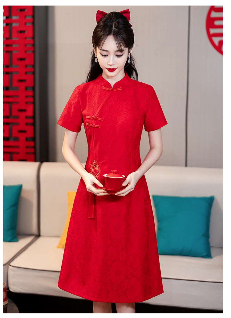 MY14353#改良旗袍新国风红色年轻款绣花礼服订婚连衣裙