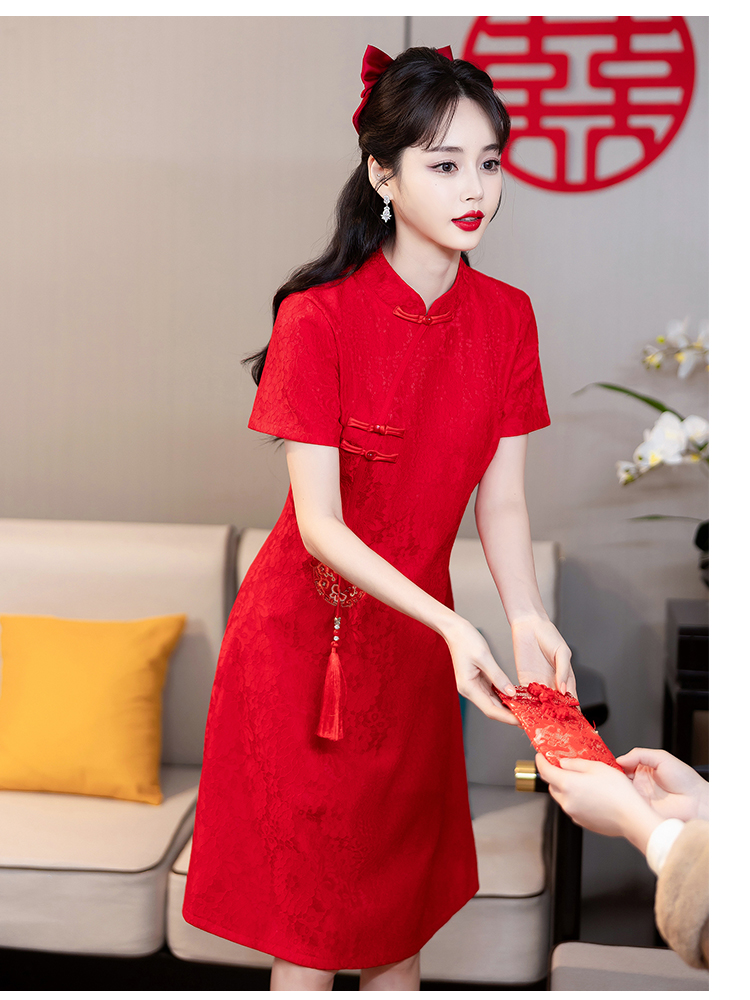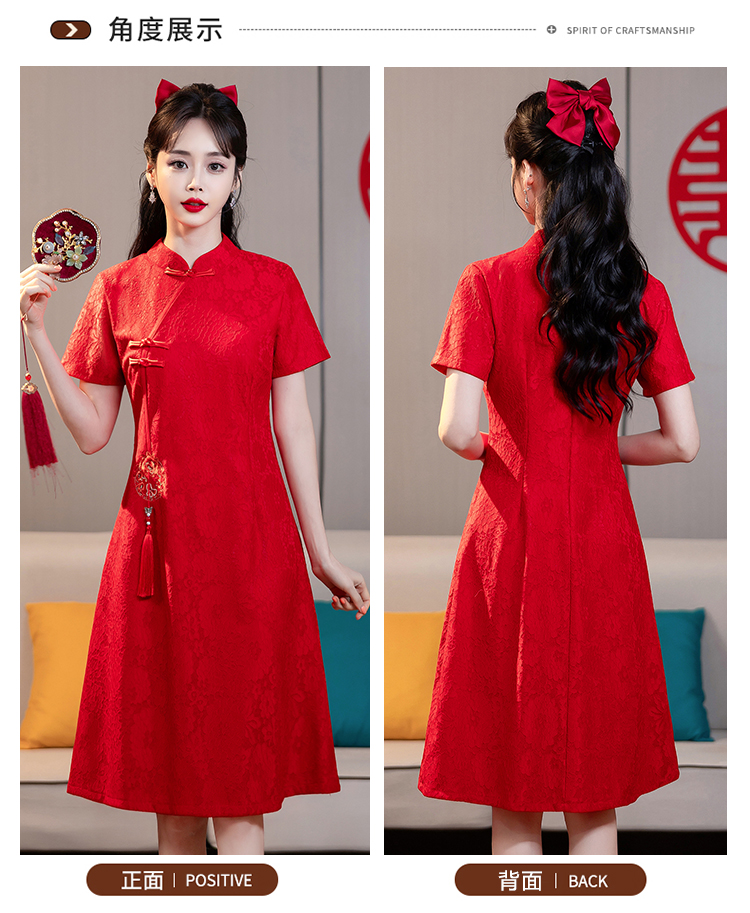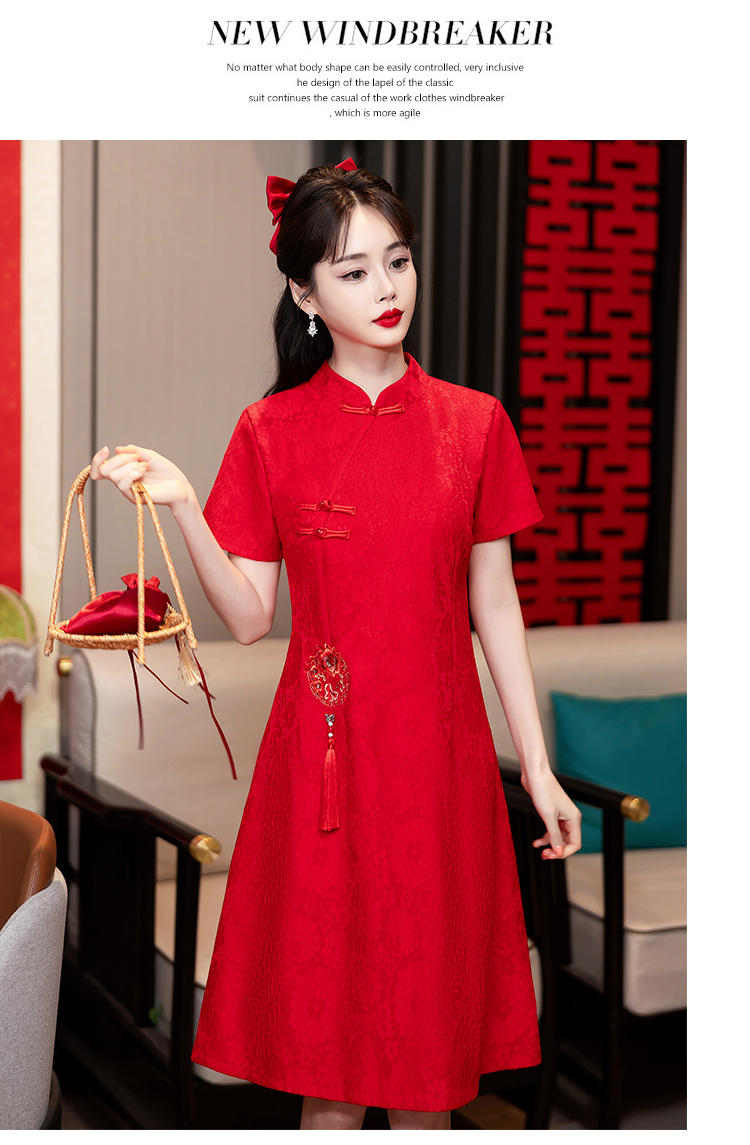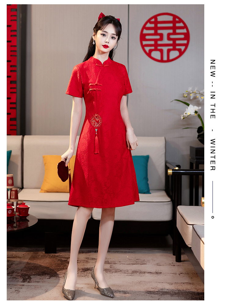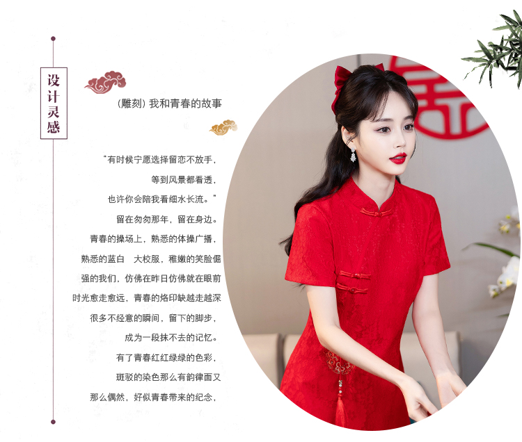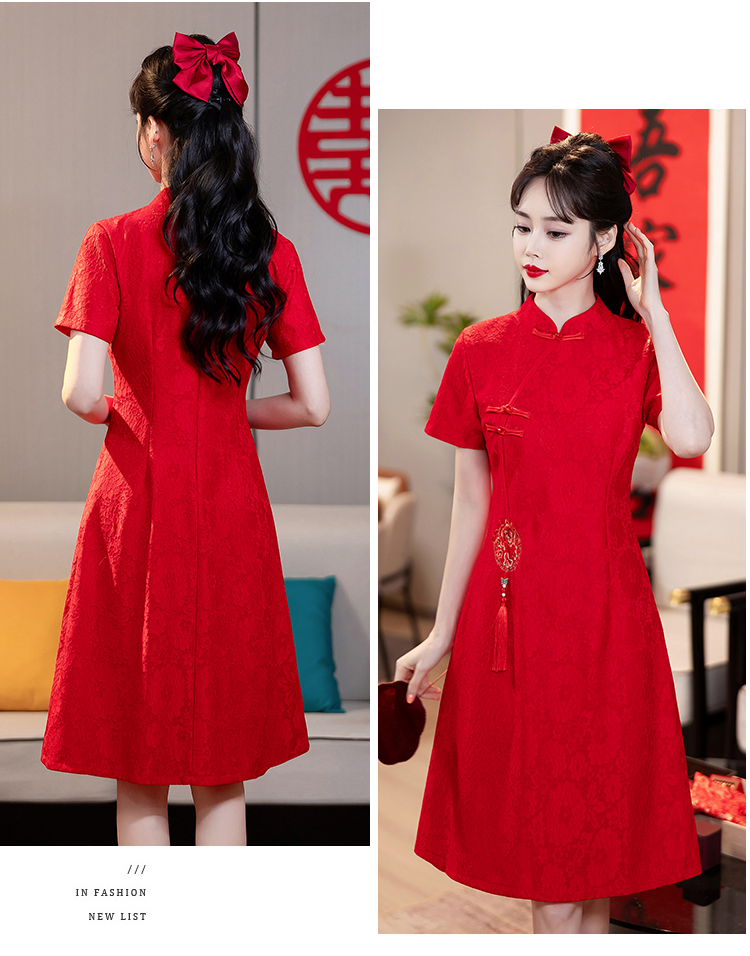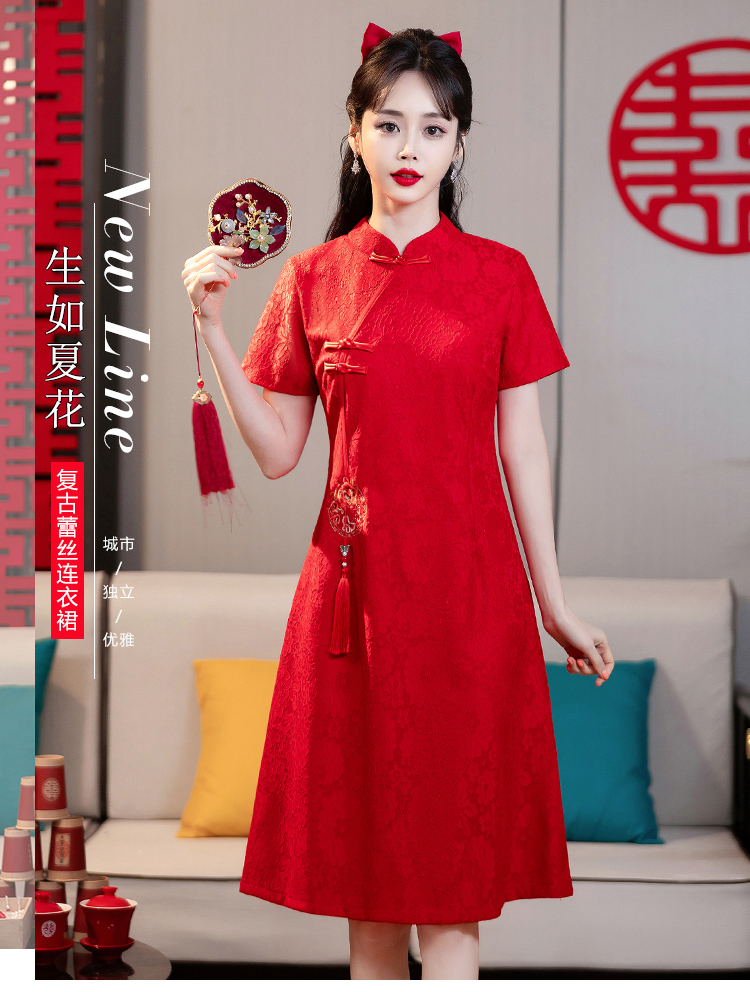 MY14353#改良旗袍新国风红色年轻款绣花礼服订婚连衣裙