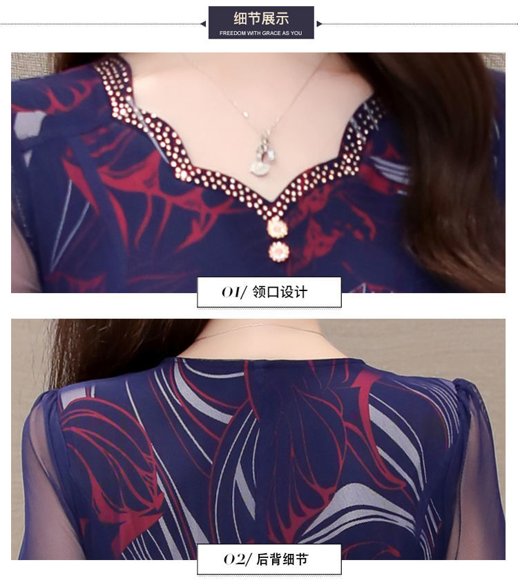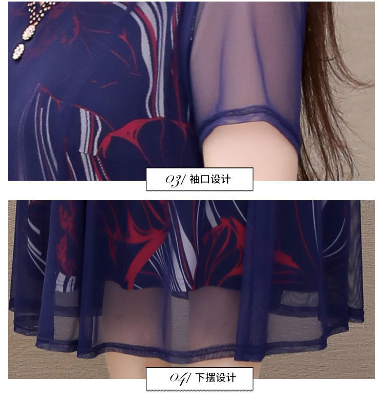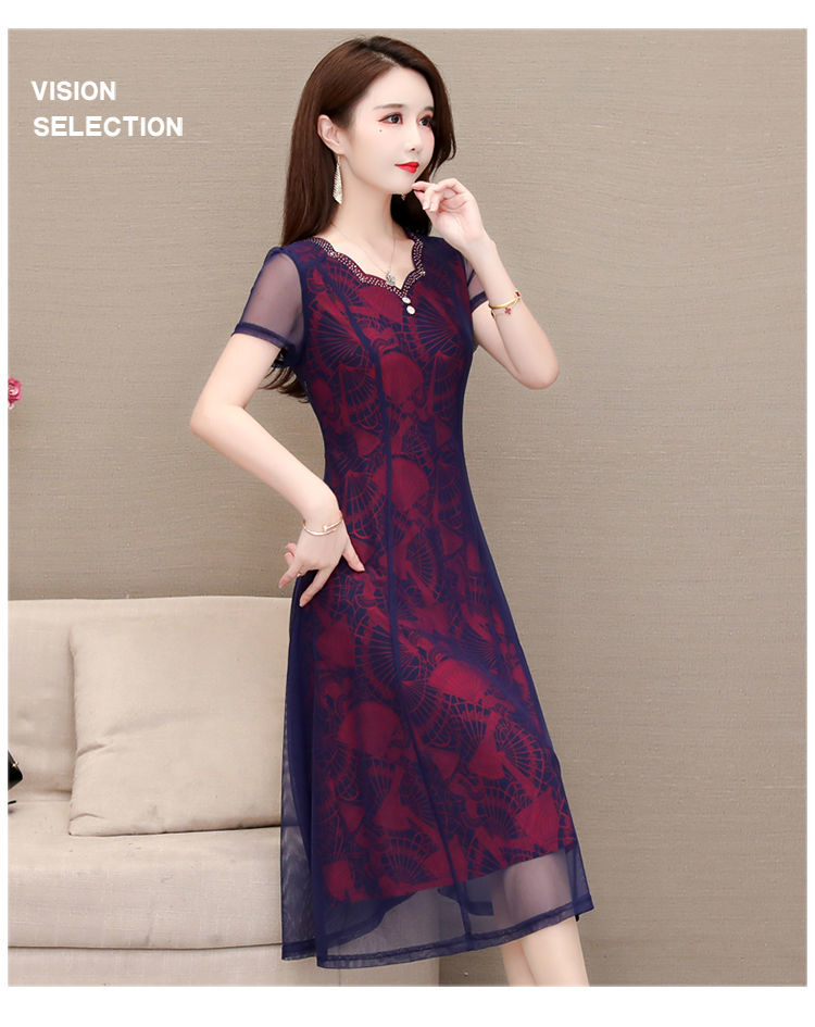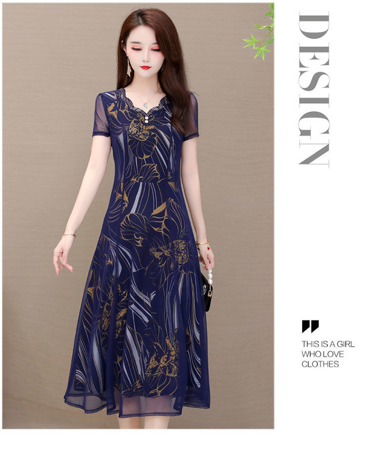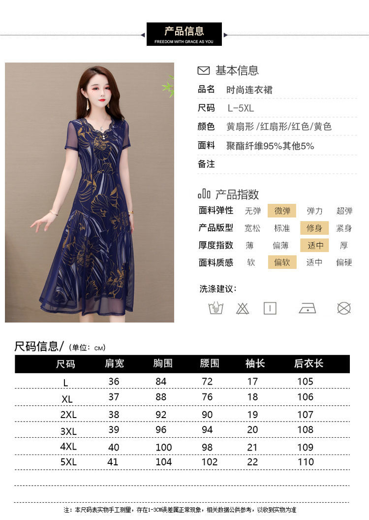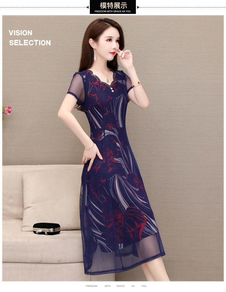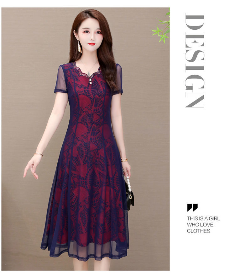 MY14368# 网纱碎花连衣裙女夏季新款洋气修身35岁时尚中长款短袖a字裙女裝貨源服裝批發
