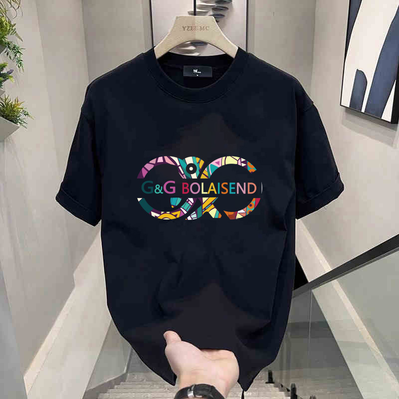 MY14745#纯棉300斤M-6XL宽松印花T恤夏新款字母落肩男女短袖