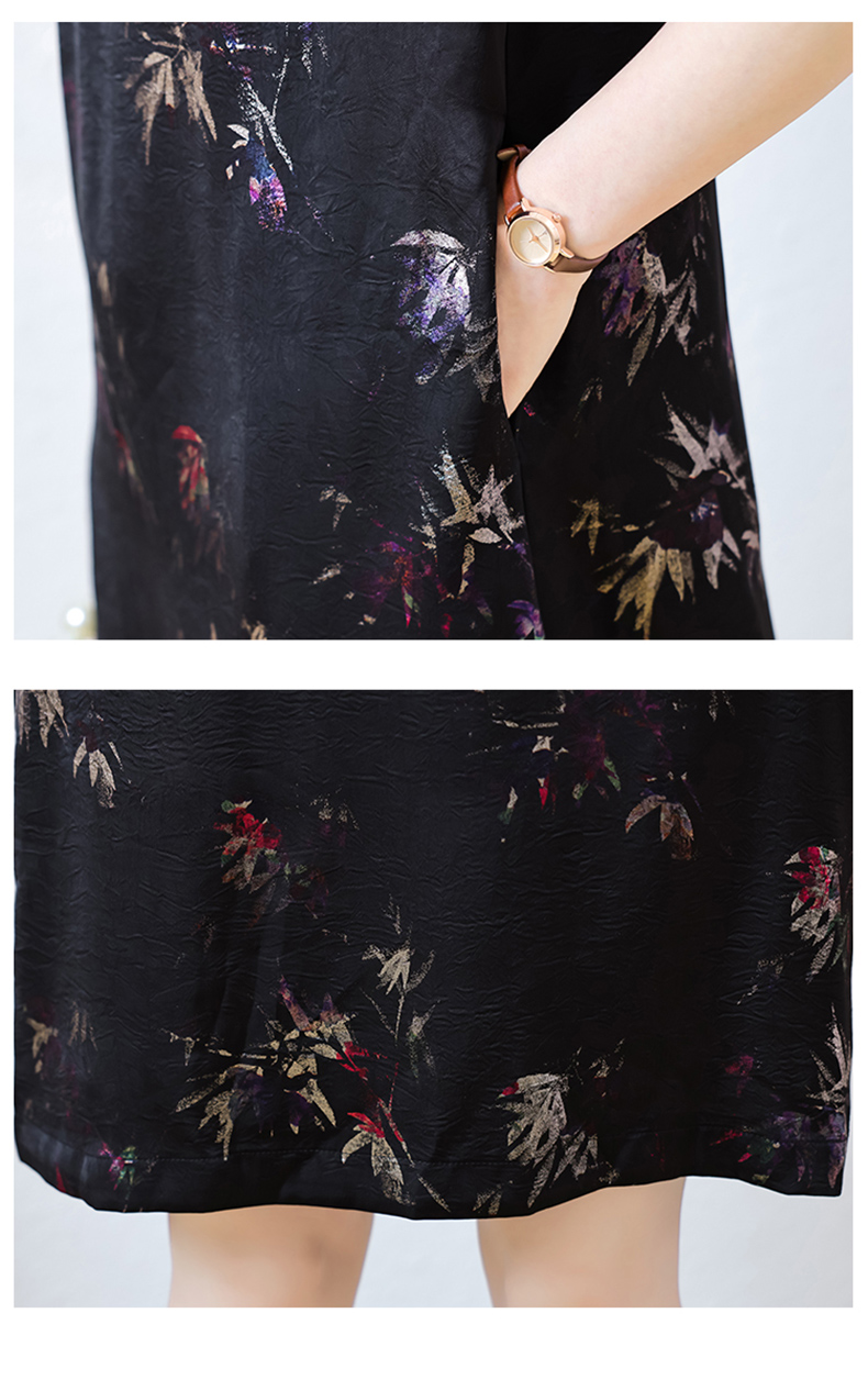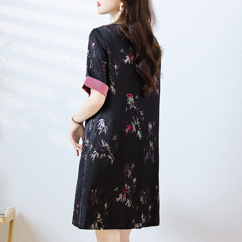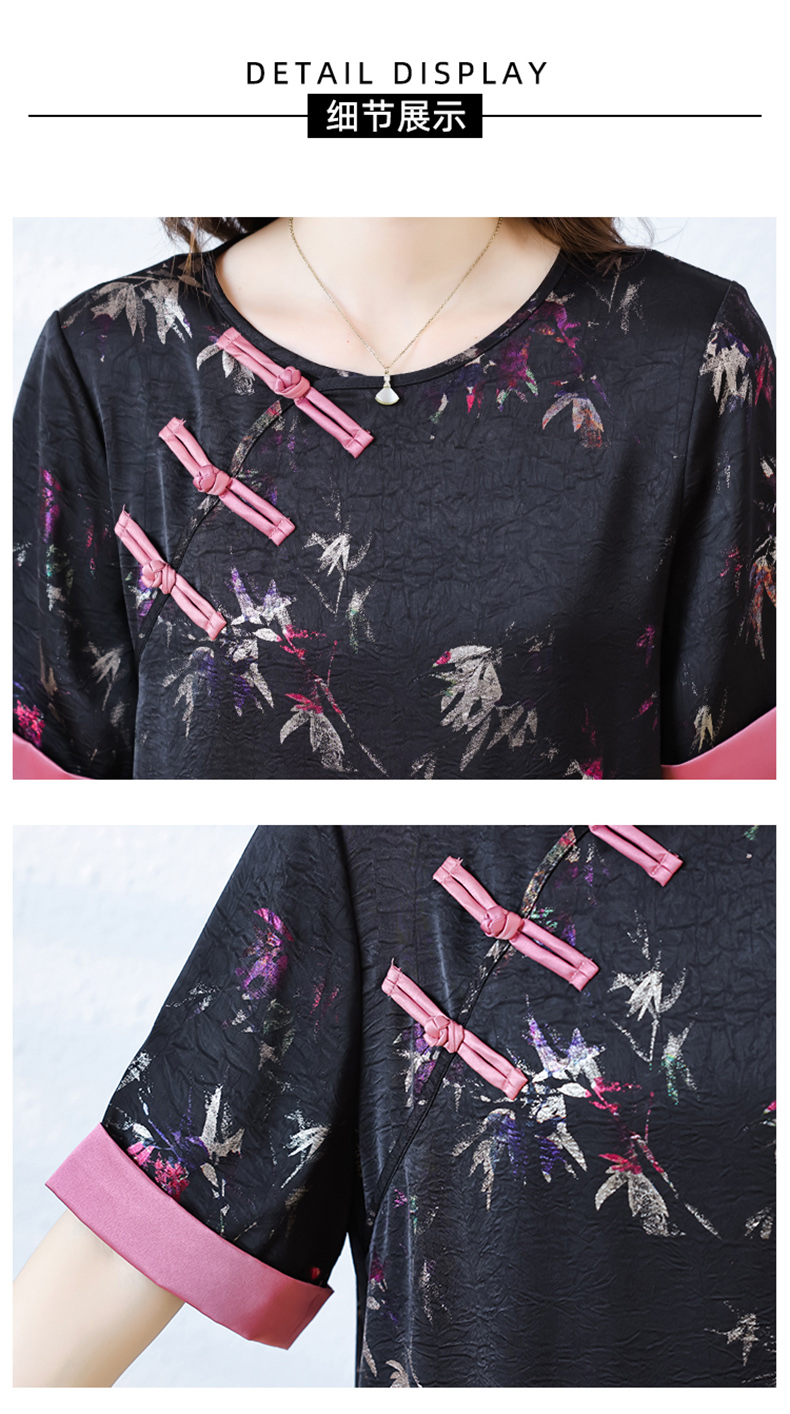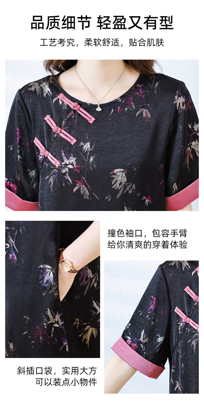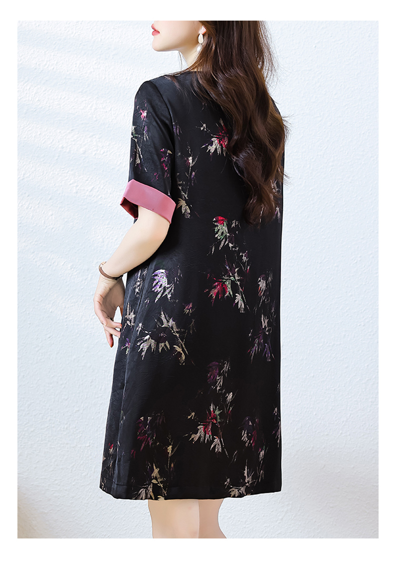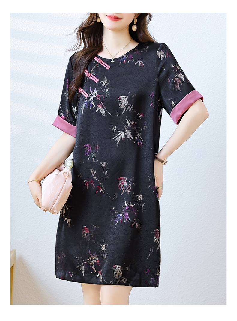 MY14860# 国风盘扣印花连衣裙气质时尚新中式高级感短袖直筒裙女女裝貨源服裝批發