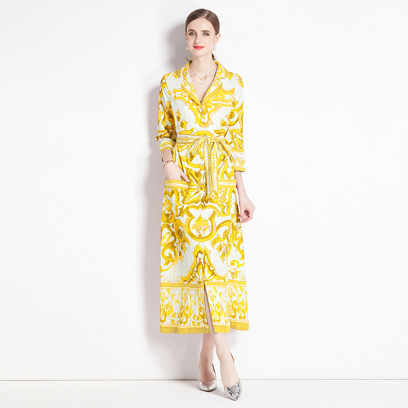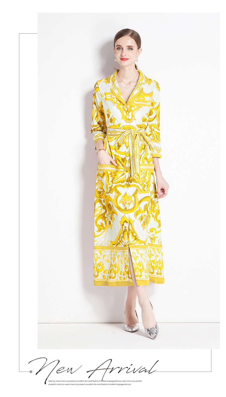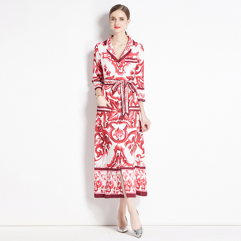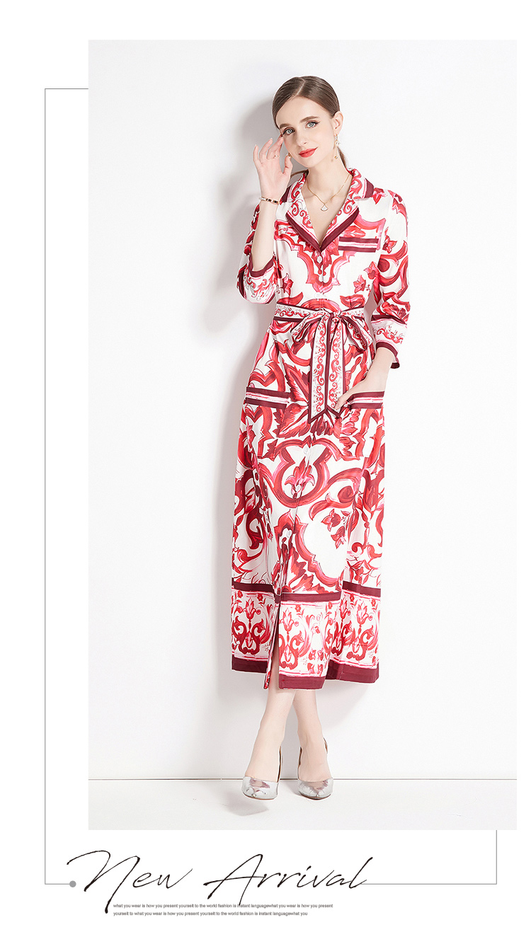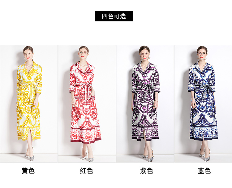 MY14904# 新增色欧美时尚印花宽松版口袋中袖西装领衬衣长裙女裝貨源服...