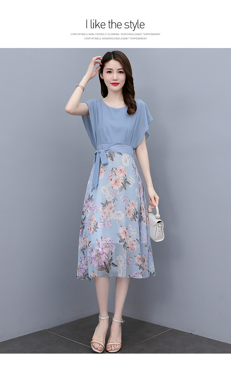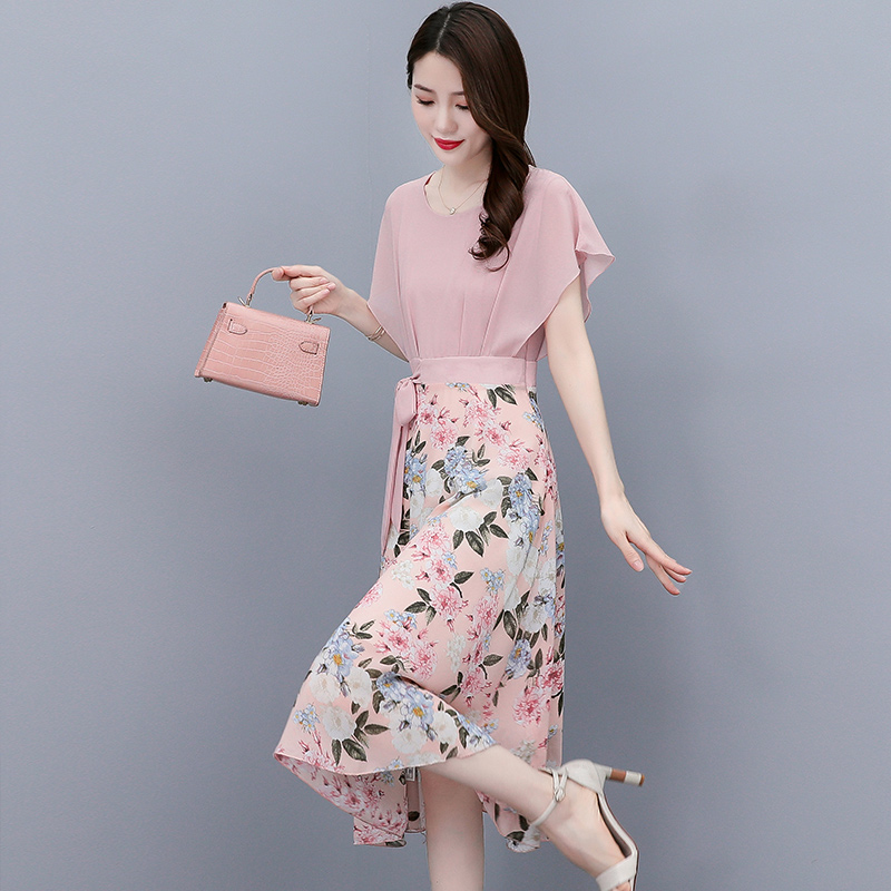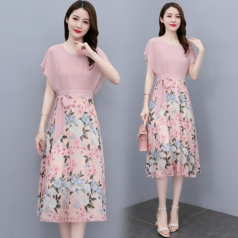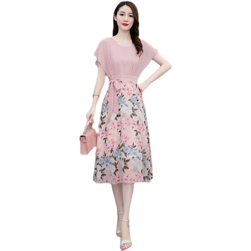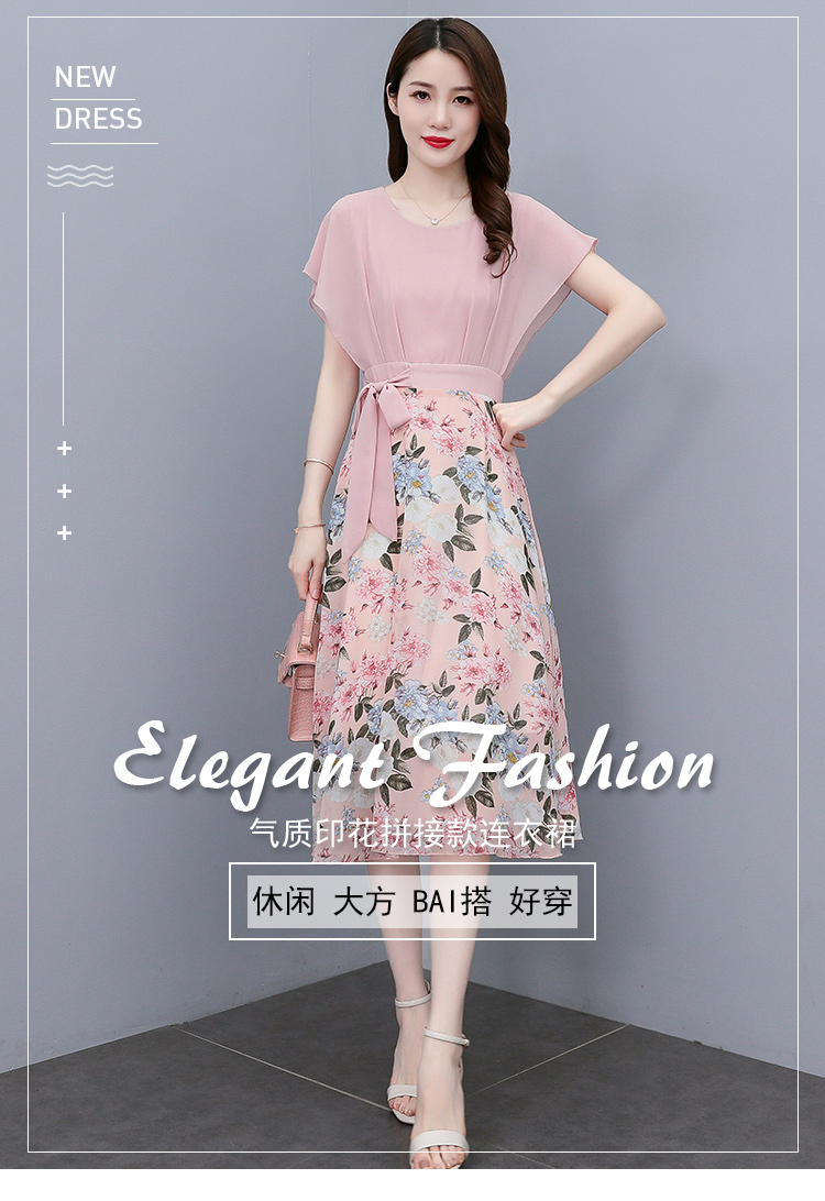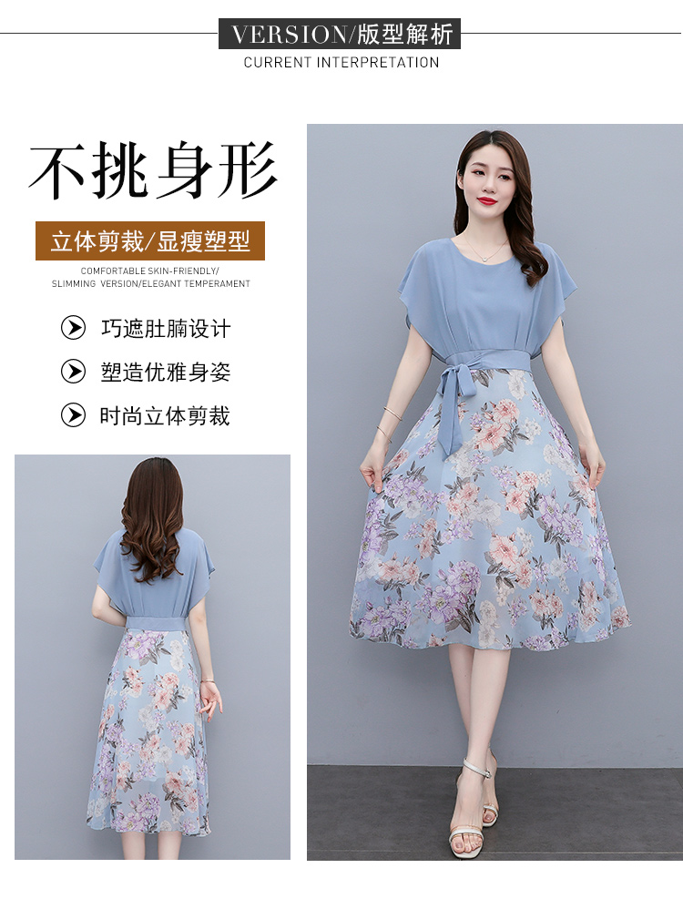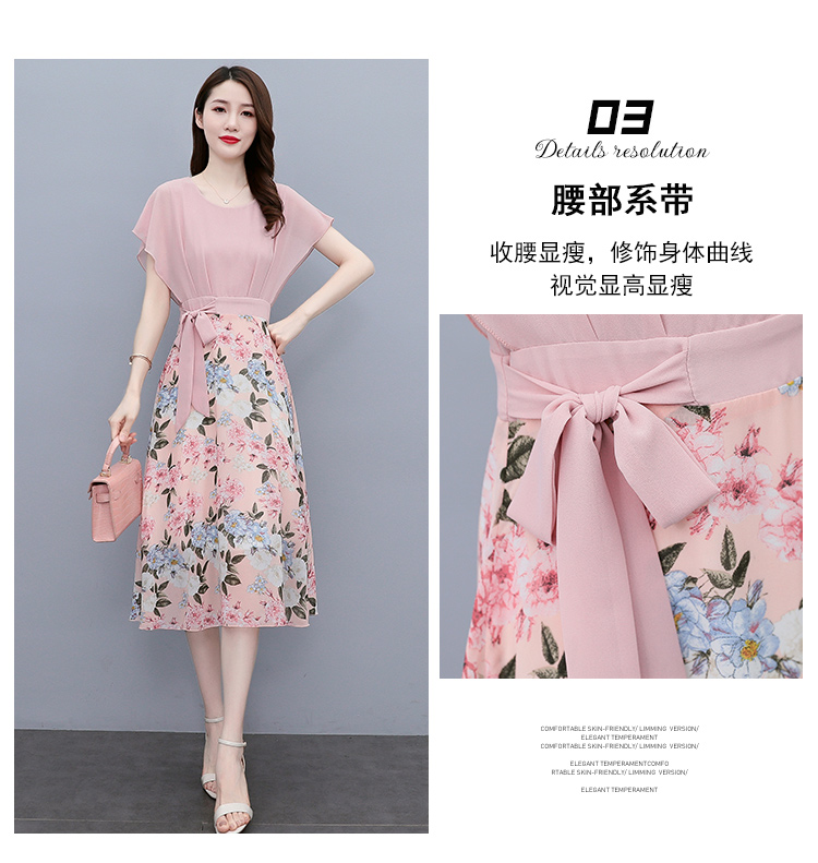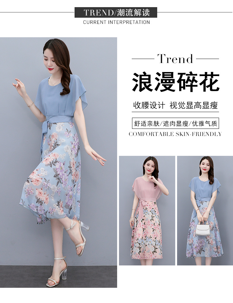 BY9174#假两件碎花连衣裙夏季女收腰显瘦高档大牌雪纺裙子