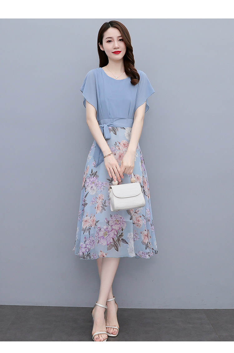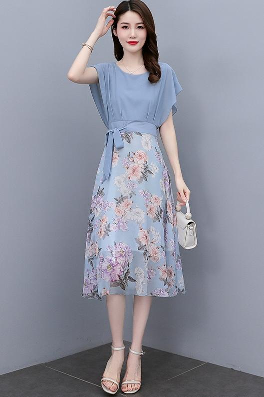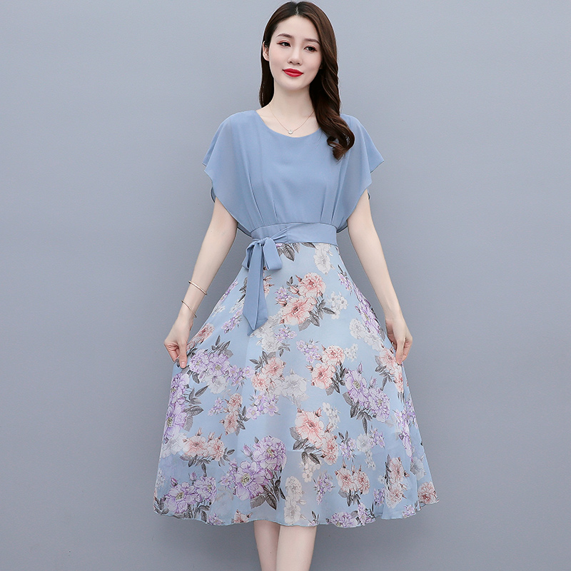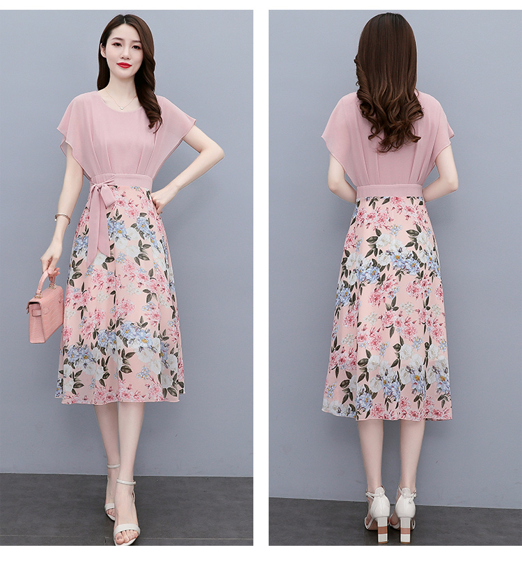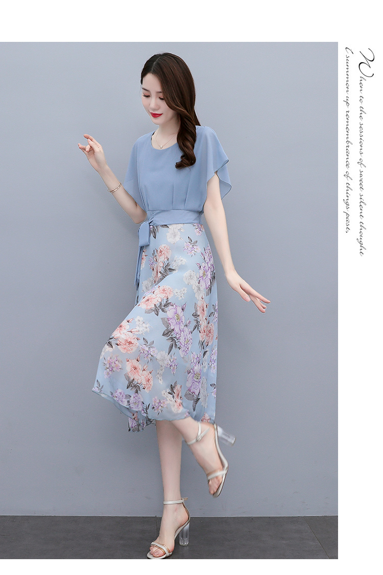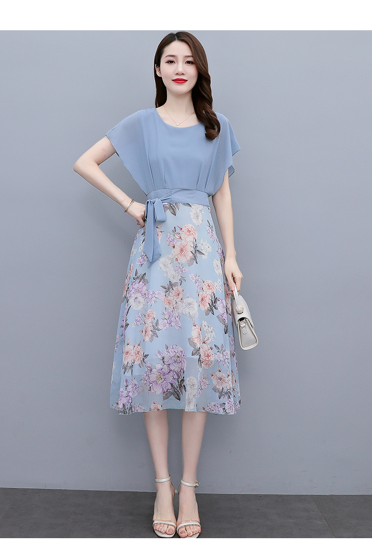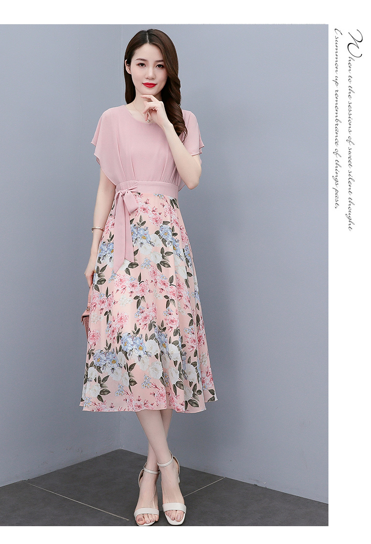 BY9174#假两件碎花连衣裙夏季女收腰显瘦高档大牌雪纺裙子