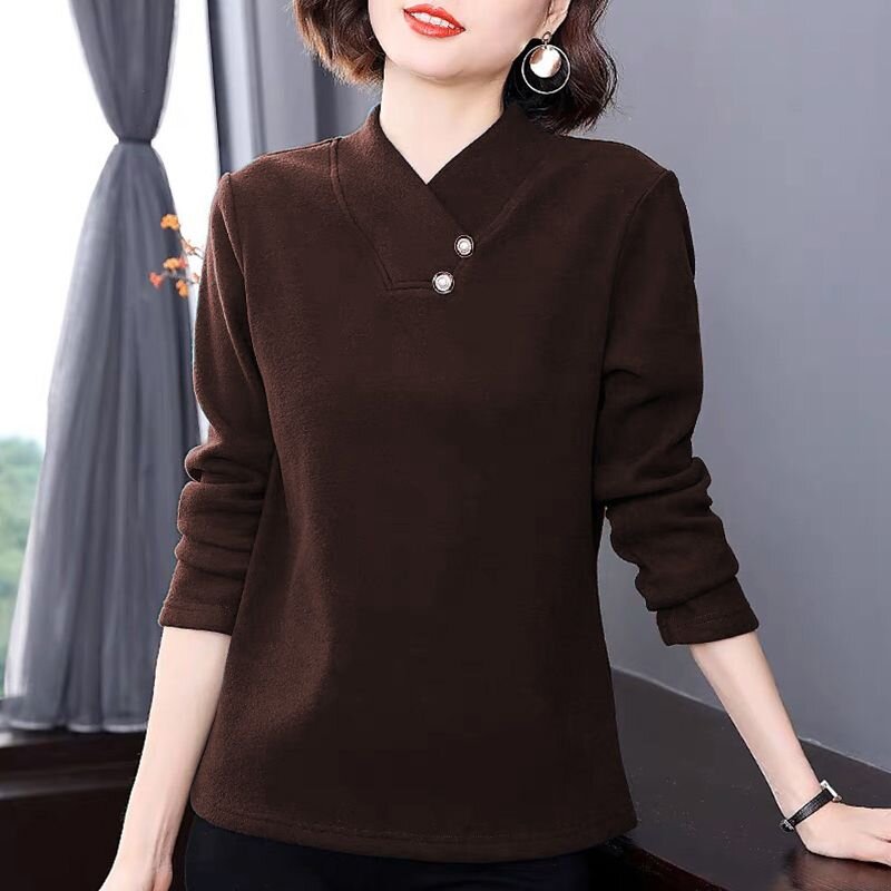 MY16712# 双面德绒中年女士时尚V领减龄穿搭上衣简约通勤长袖女裝貨源服裝批發