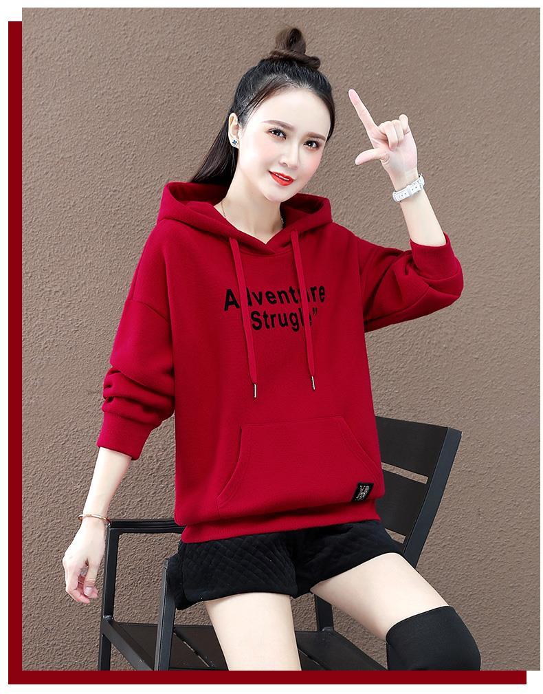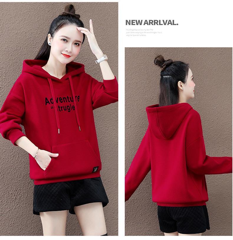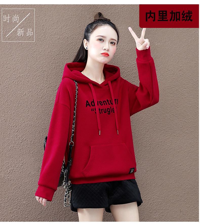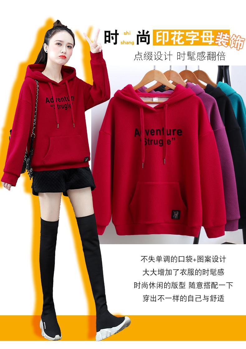 MY16716# 红色短款连帽卫衣女新款爆款时尚洋气宽松上衣休闲服女裝貨源服裝批發