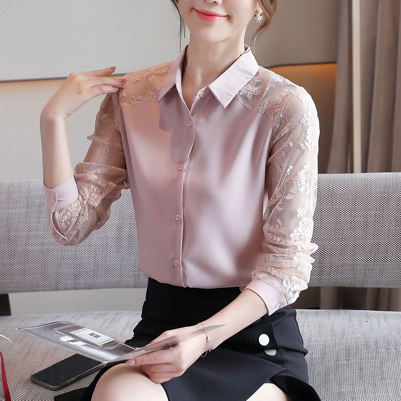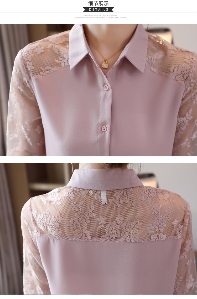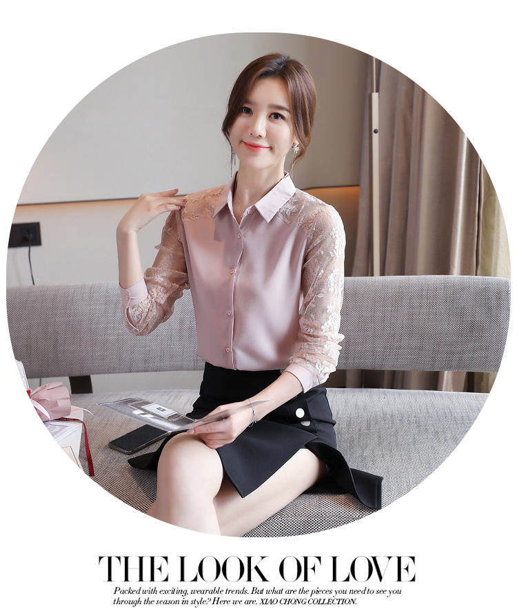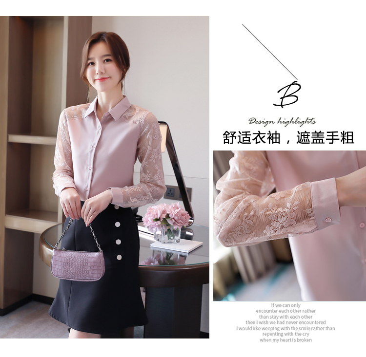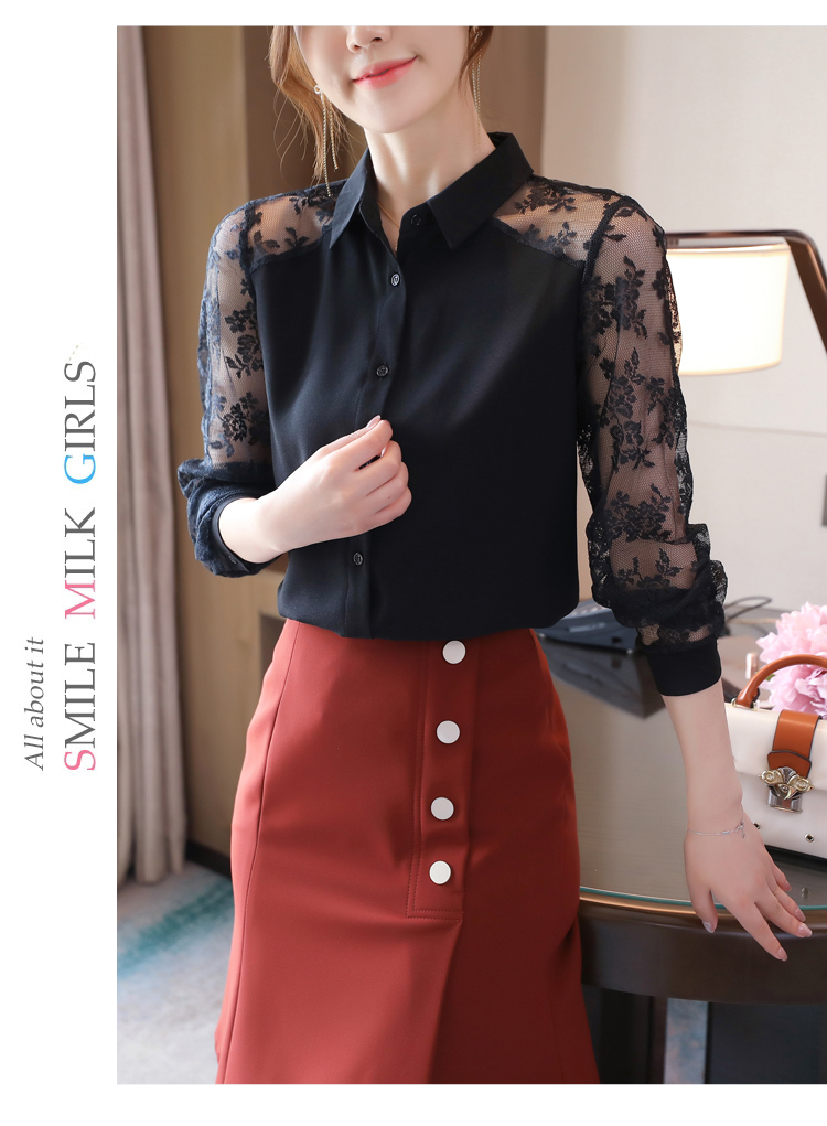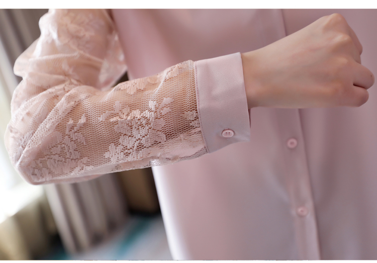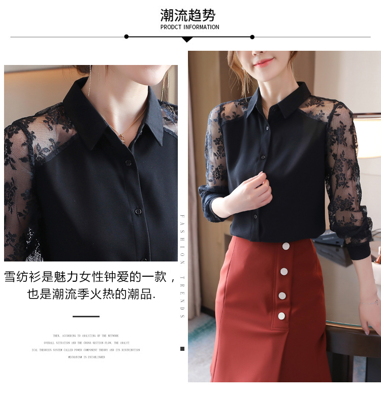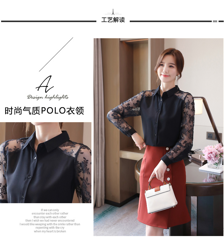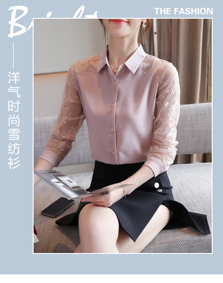 MY16745# 洋气新款女装翻领蕾丝拼接雪纺衫上衣开衫衬衫打底衫衬衣女裝貨源服裝批發
