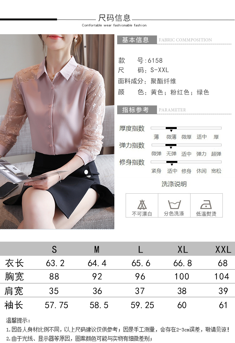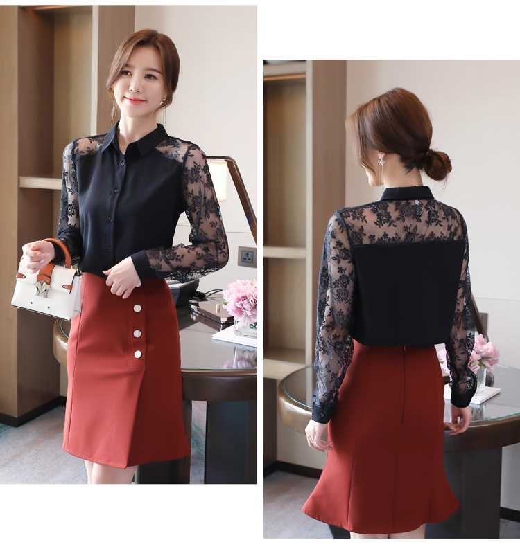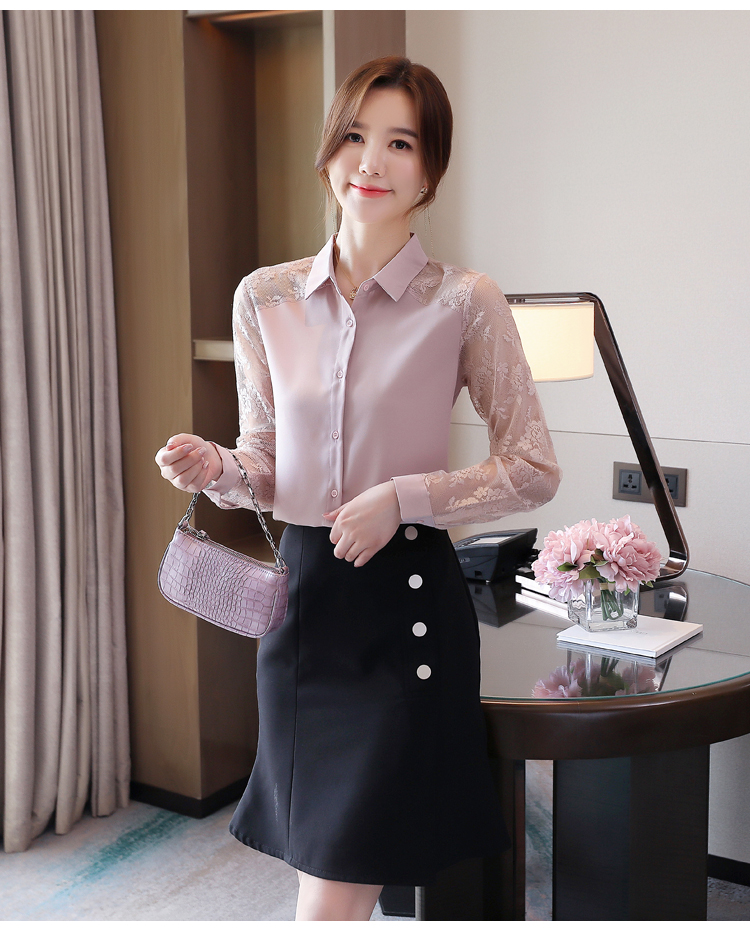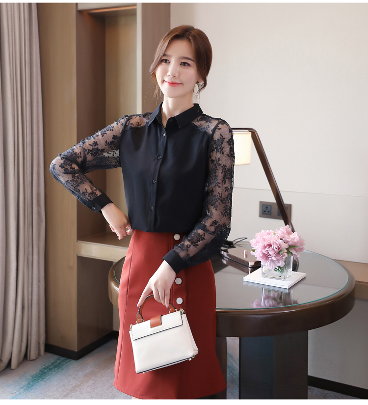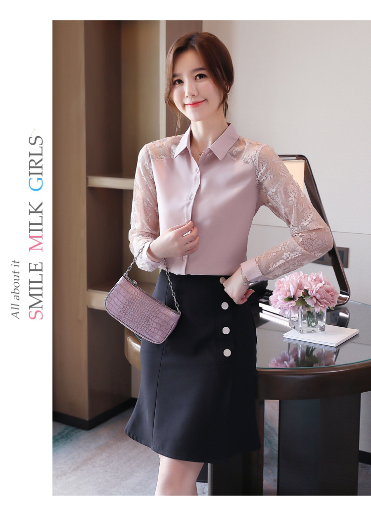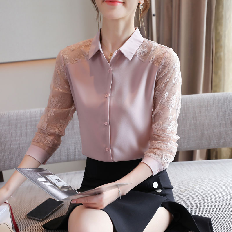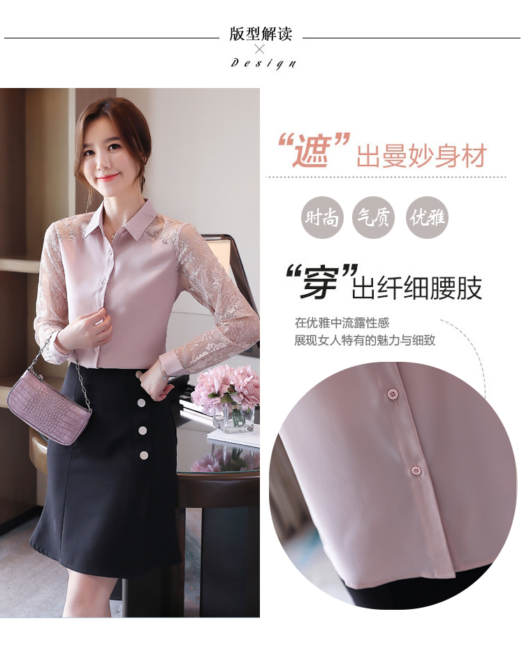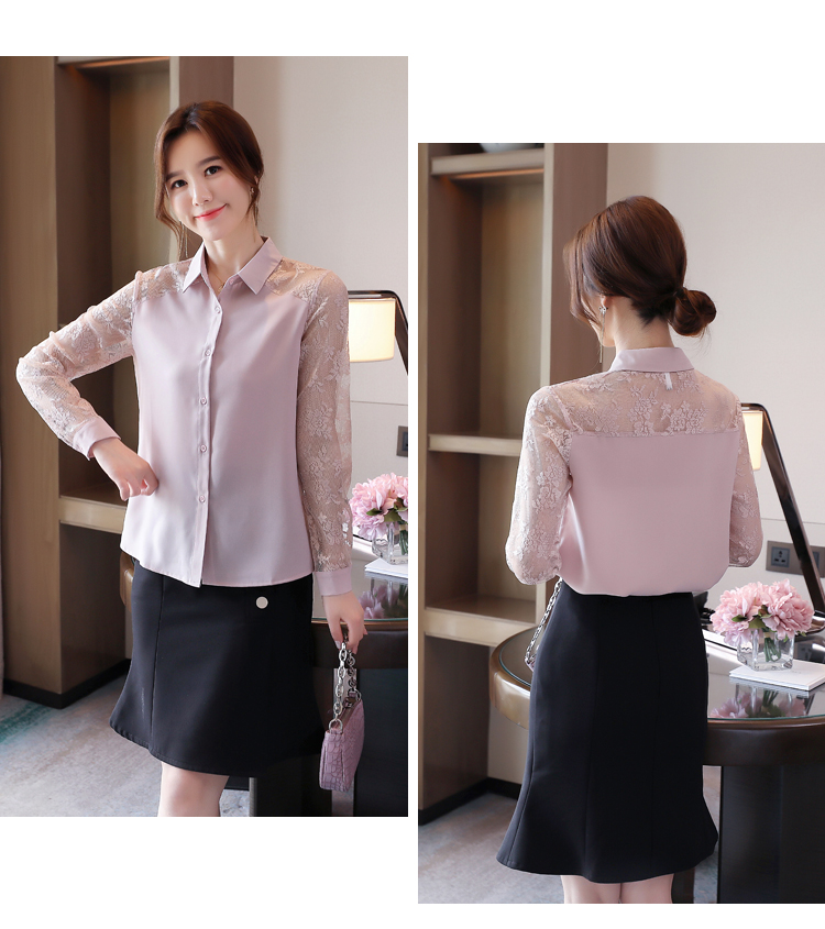 MY16745# 洋气新款女装翻领蕾丝拼接雪纺衫上衣开衫衬衫打底衫衬衣女裝貨源服裝批發