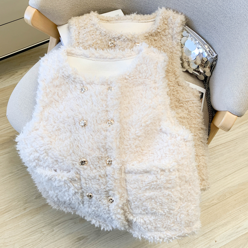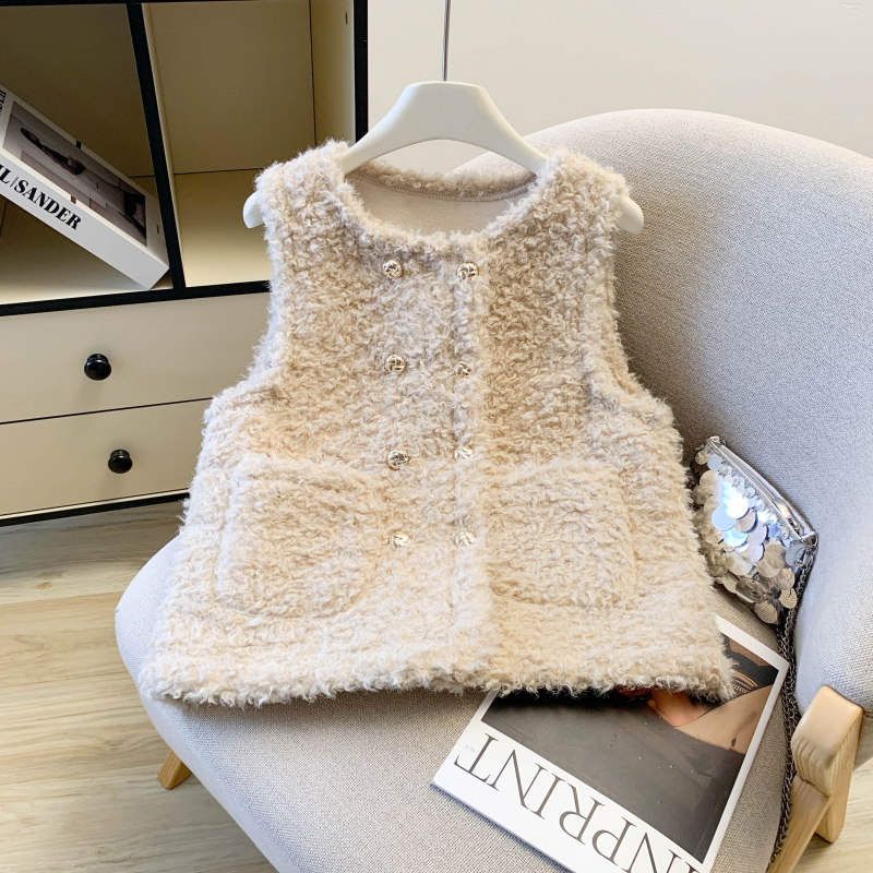 MY16764# 加厚羊羔毛保暖双排扣马甲棉服上衣女女裝貨源服裝批發