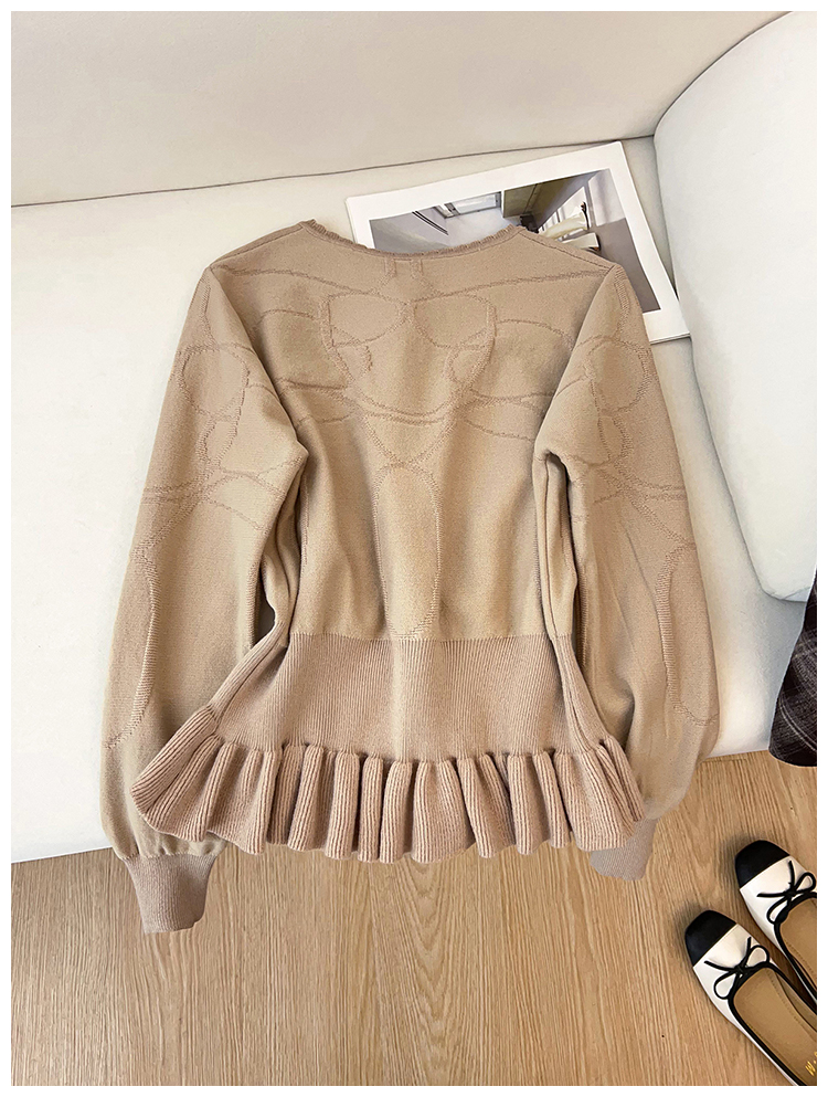MY16822#收腰荷叶边毛衣针织上衣女女裝貨源服裝批發