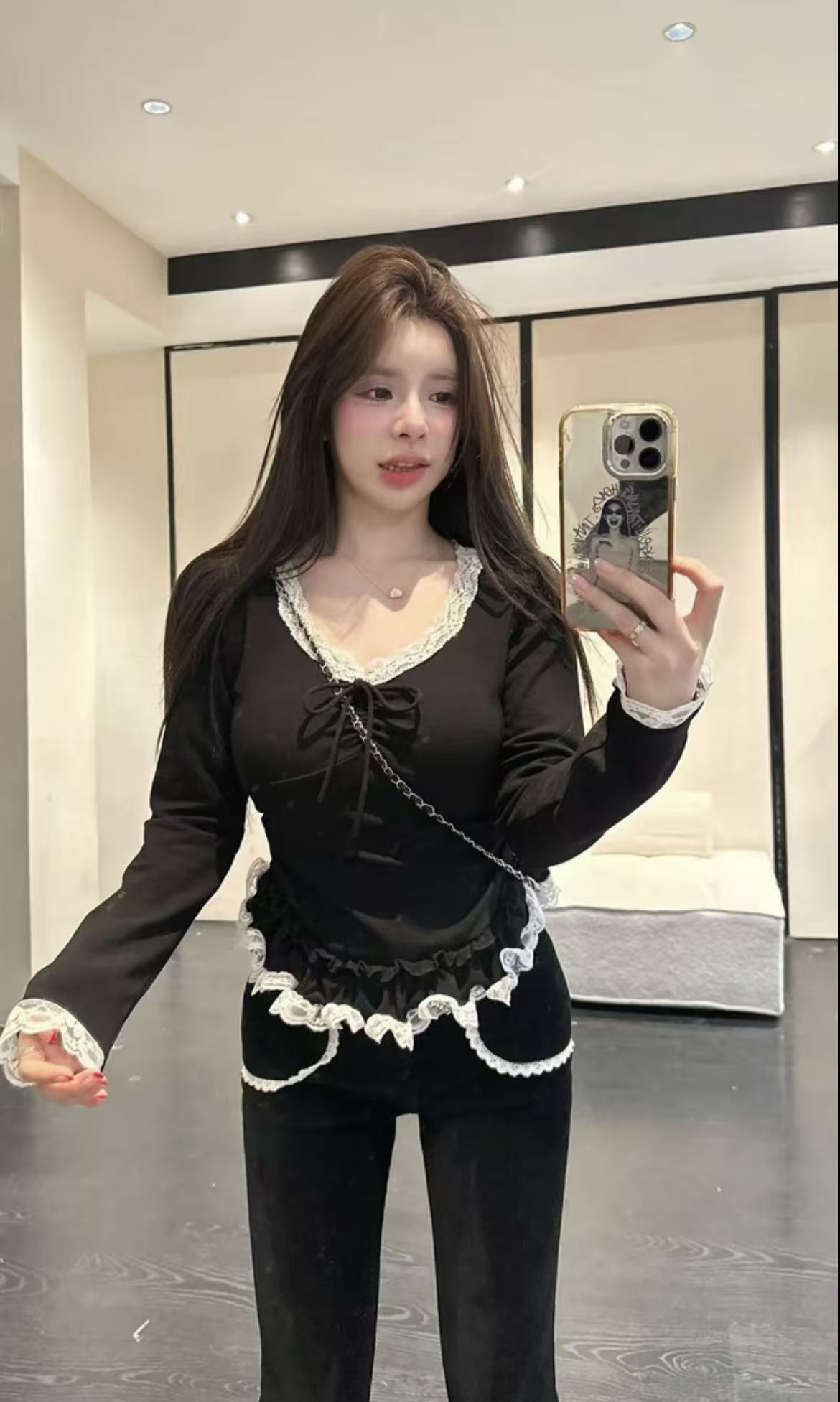 MY16826# 韩系显瘦百搭蕾丝拼接长袖打底衫加厚加磨毛上衣女裝貨源服裝批發