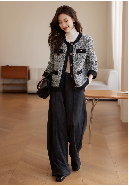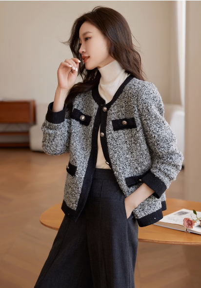 MY16827# 复古气质名媛风粗花呢外套新款小香风外套女士女裝貨源服裝批發