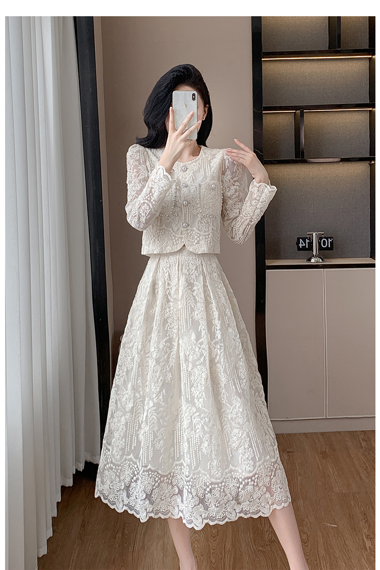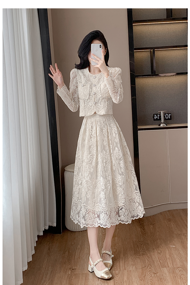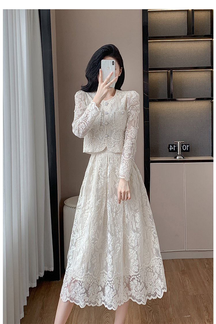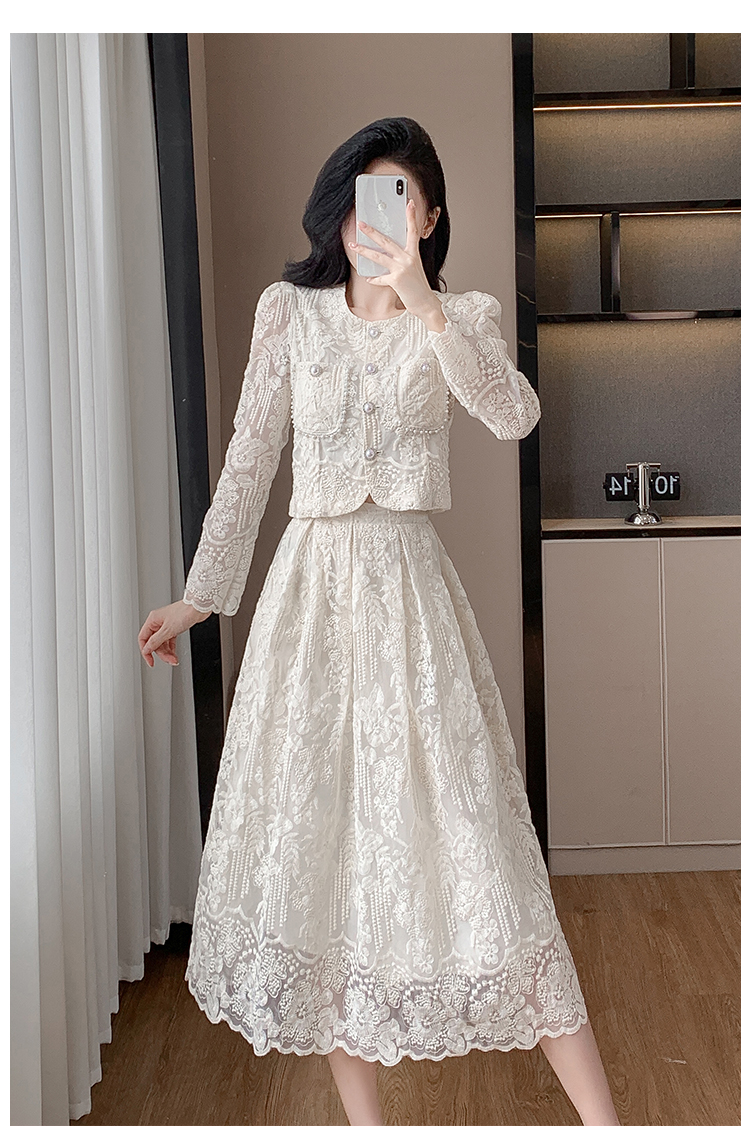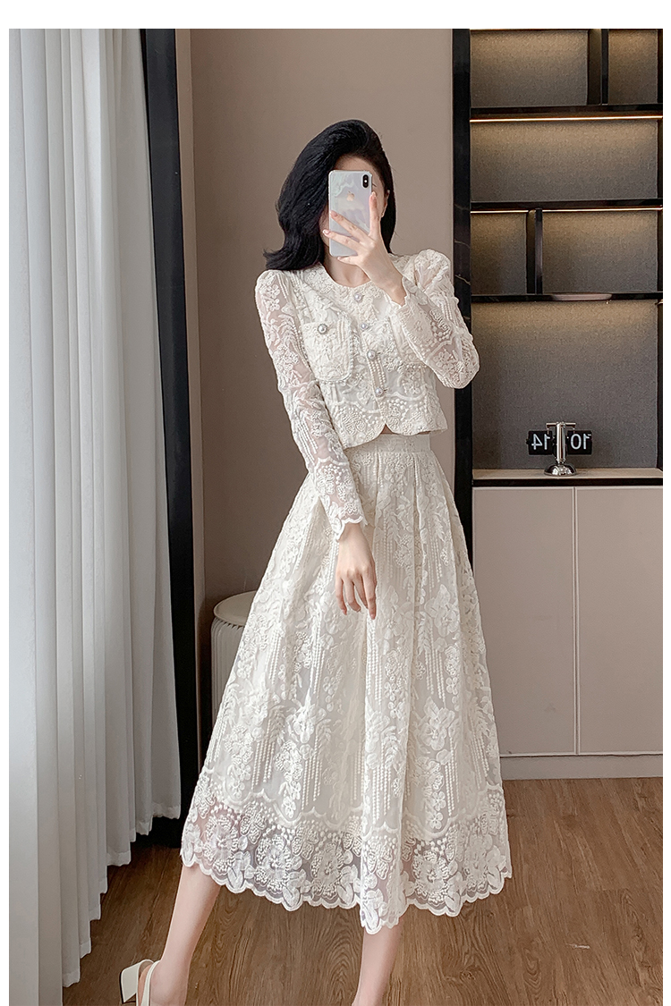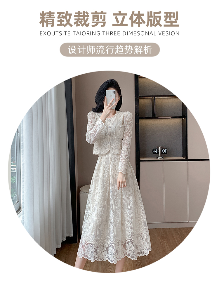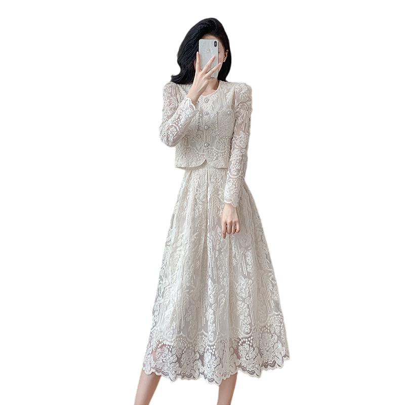 MY16854# 刺绣套装名媛轻奢水溶蕾丝半身裙两件套女裝貨源服裝批發