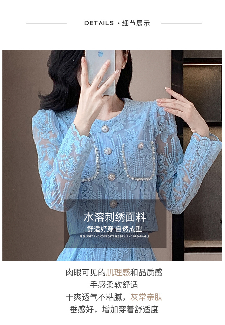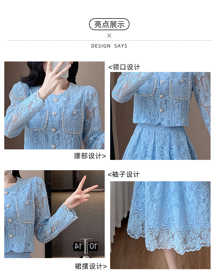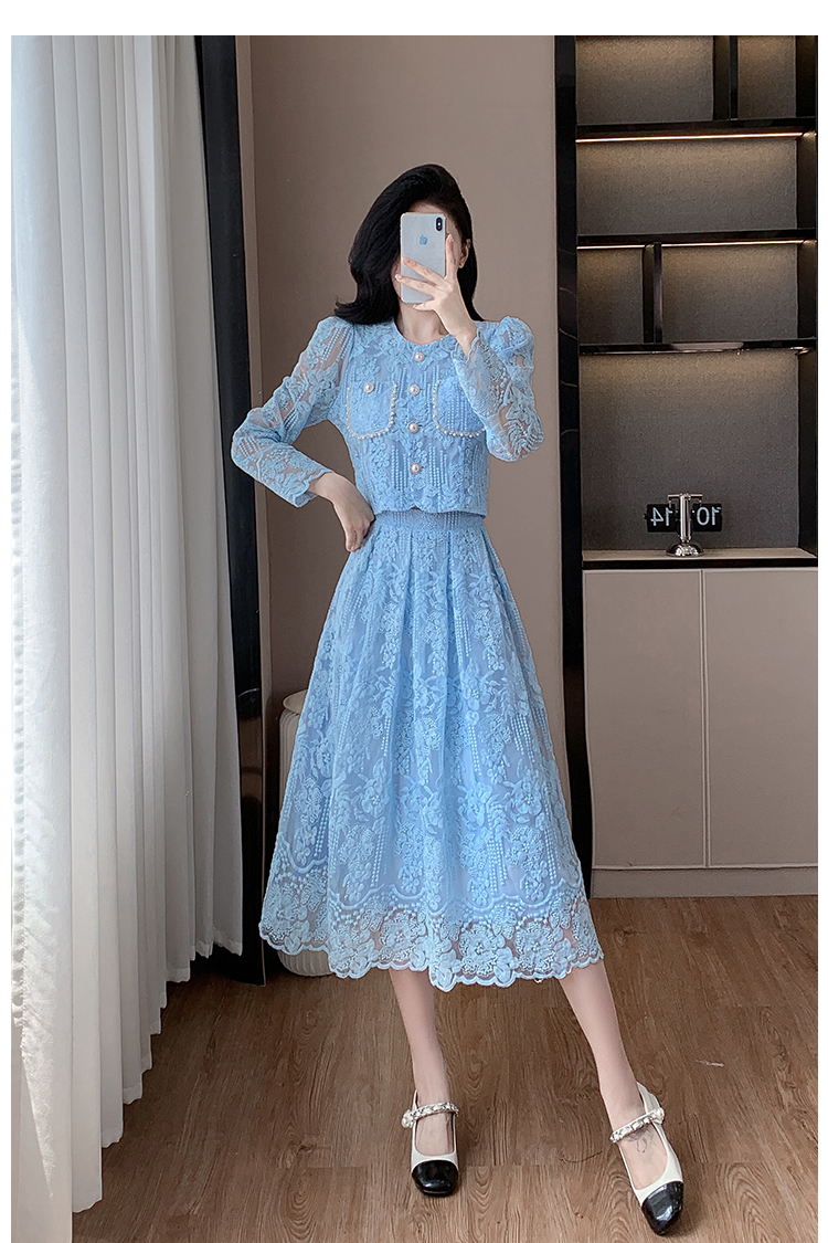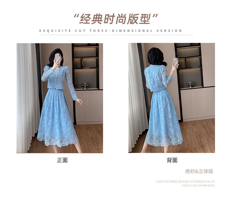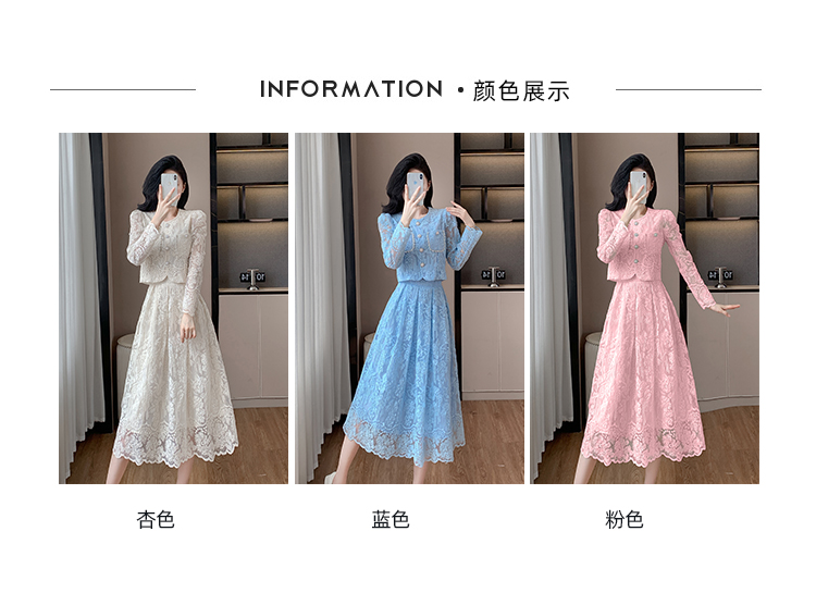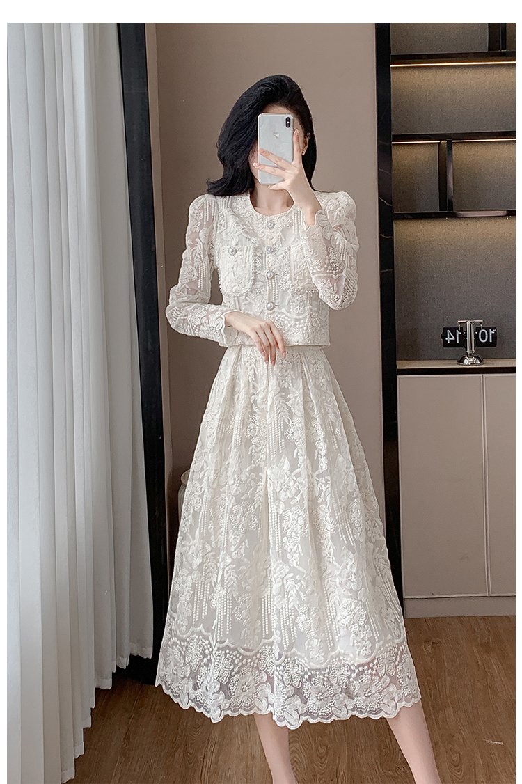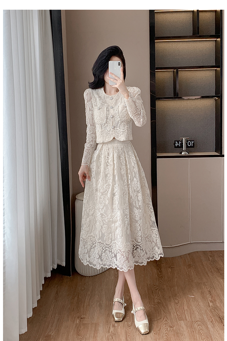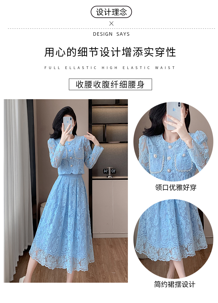 MY16854# 刺绣套装名媛轻奢水溶蕾丝半身裙两件套女裝貨源服裝批發