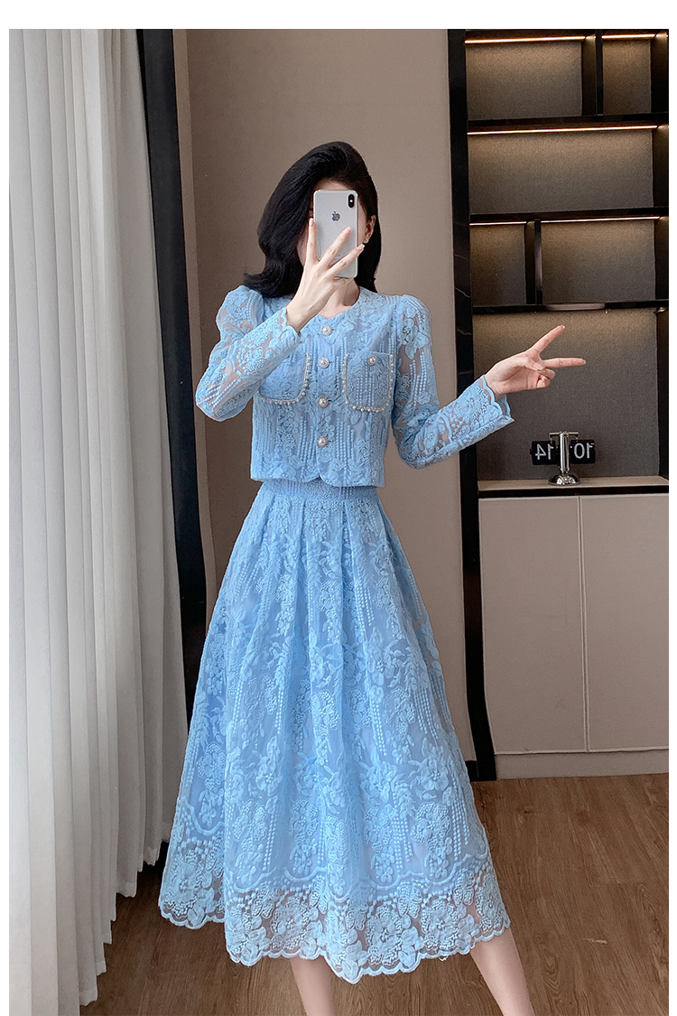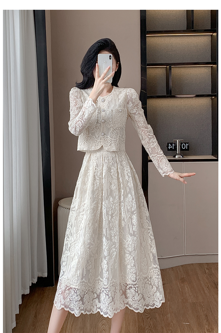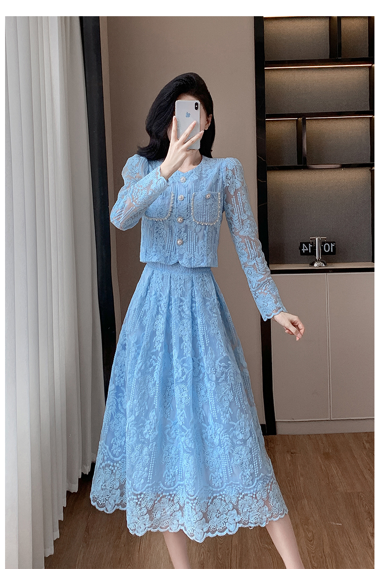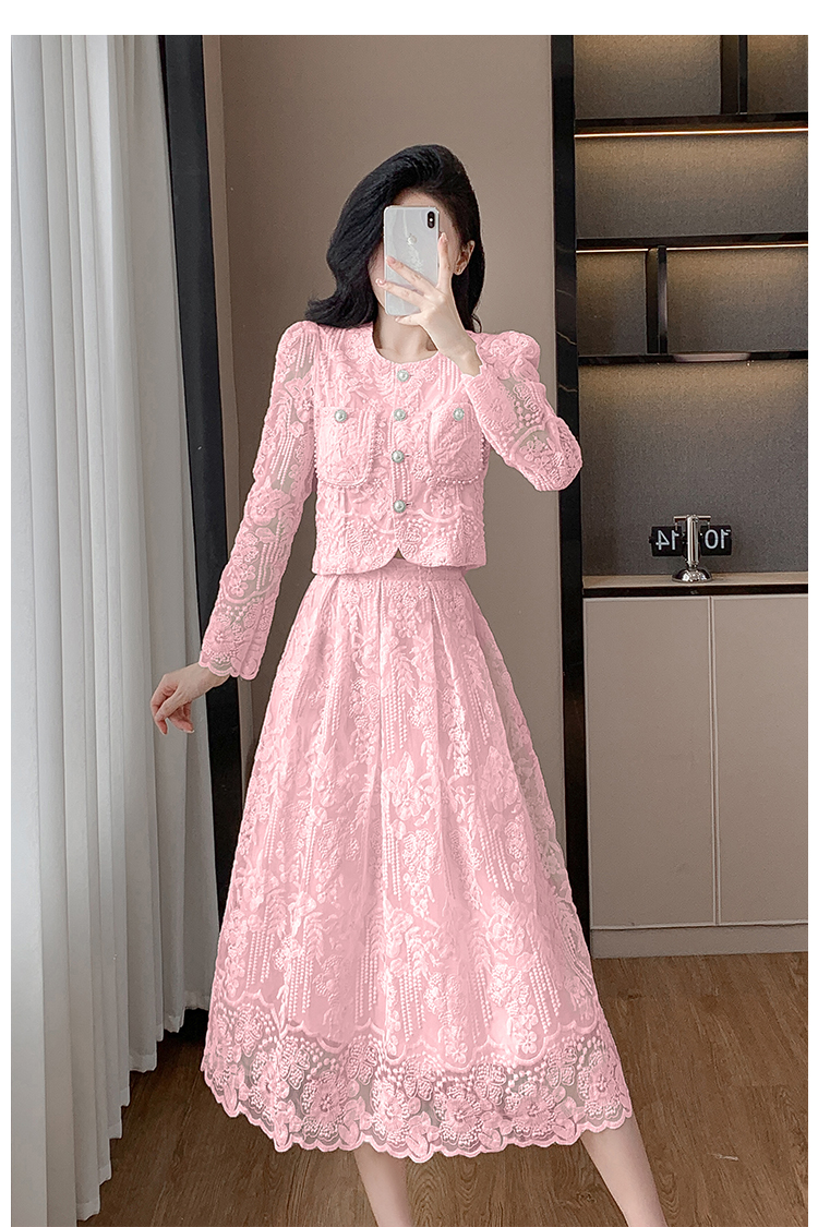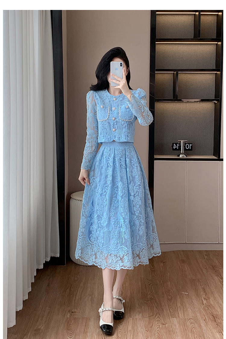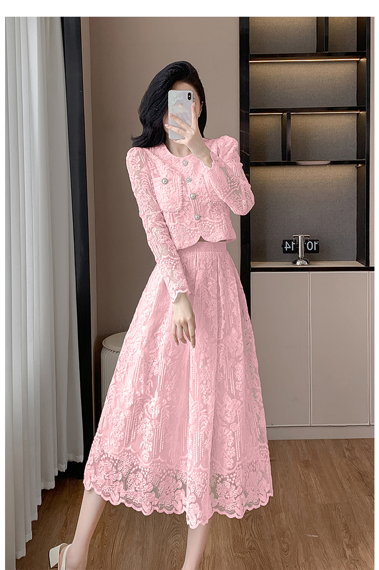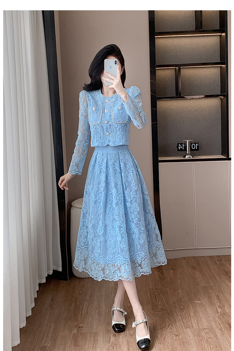 MY16854# 刺绣套装名媛轻奢水溶蕾丝半身裙两件套女裝貨源服裝批發