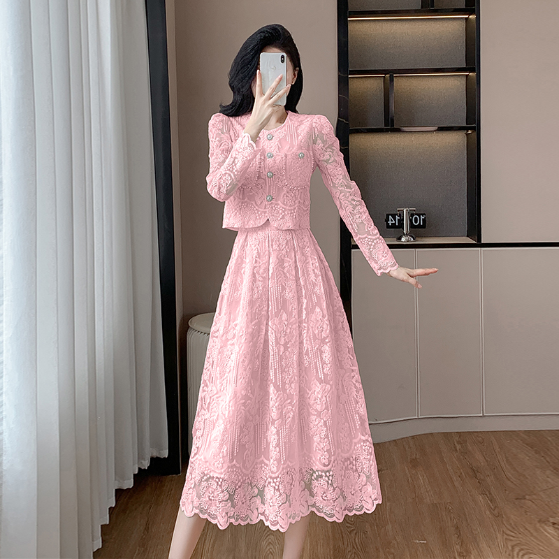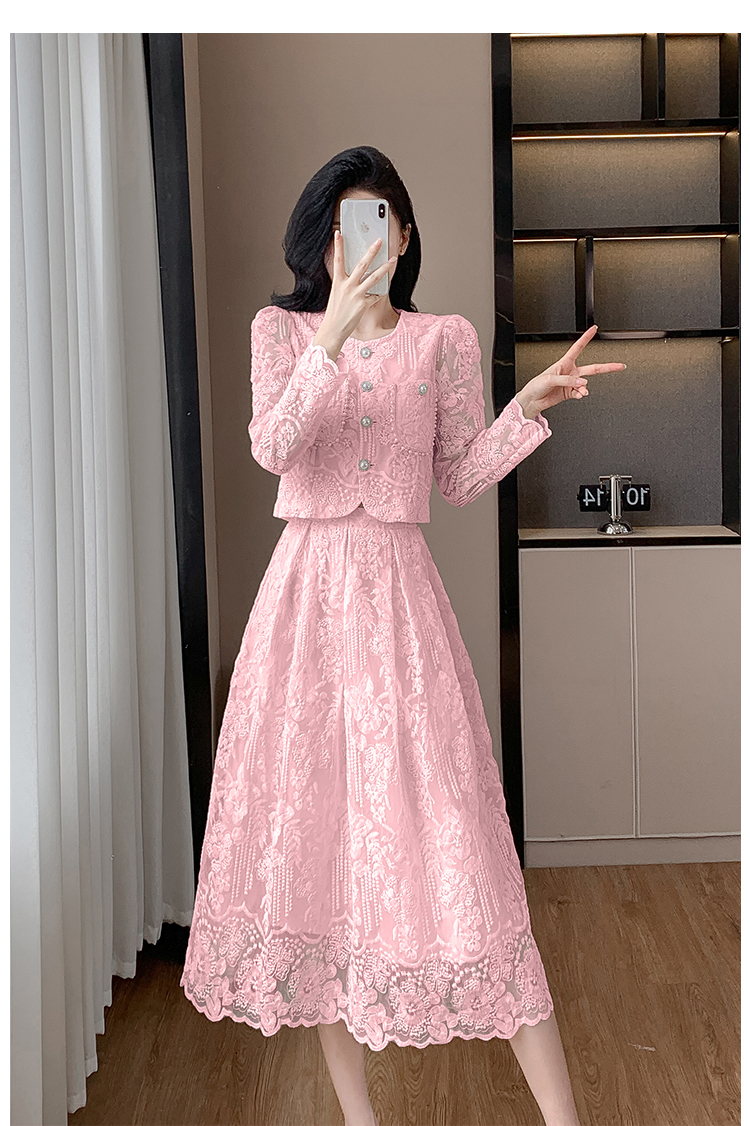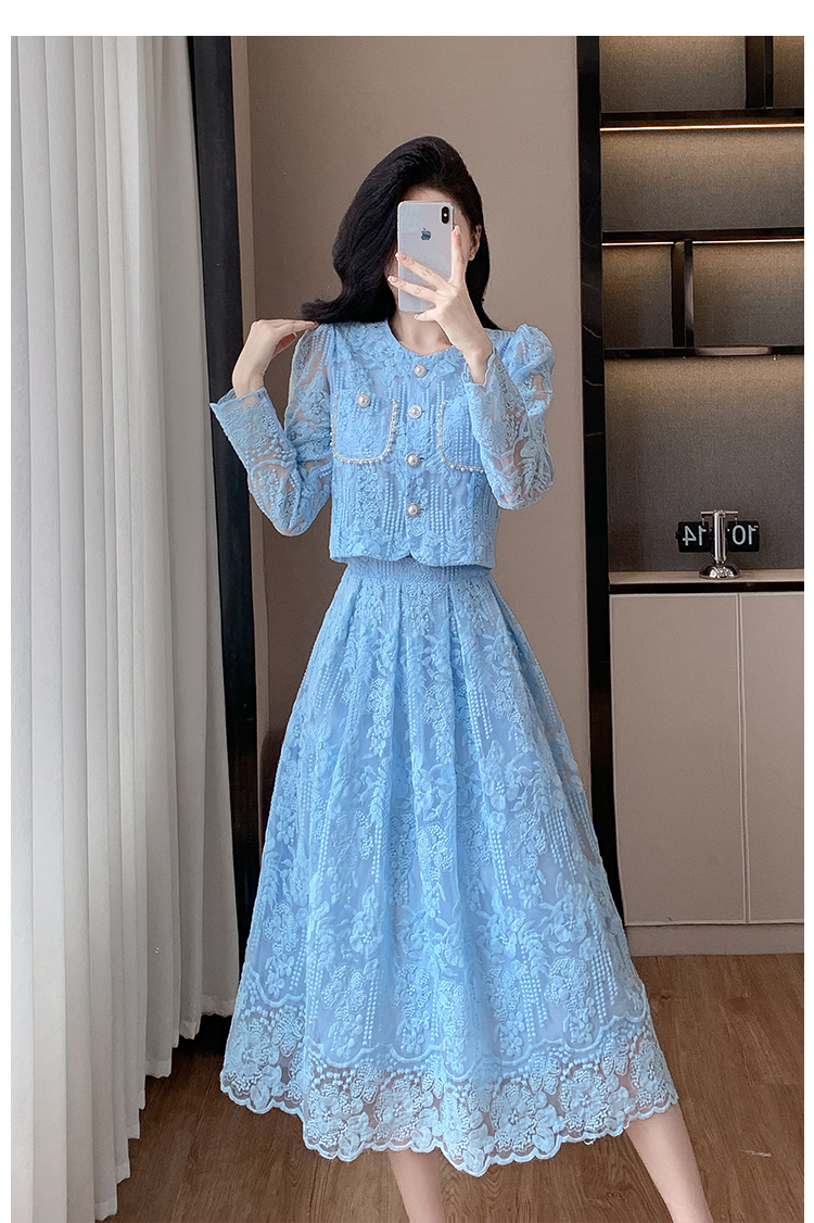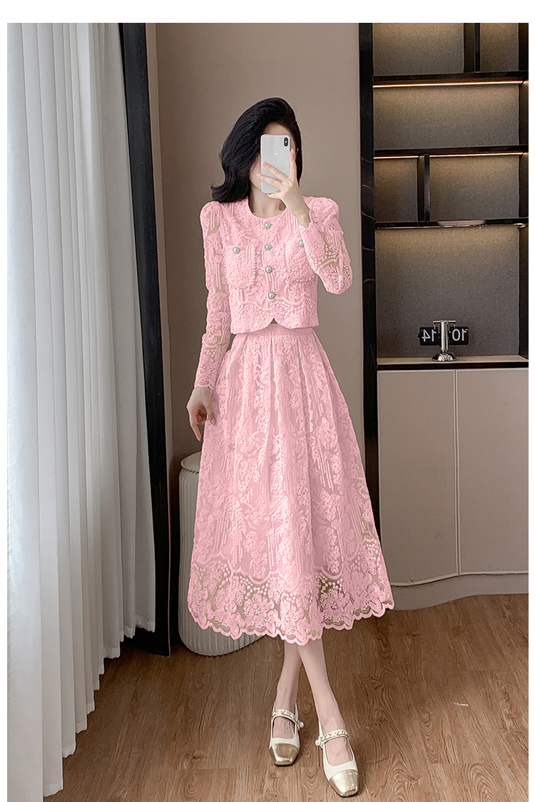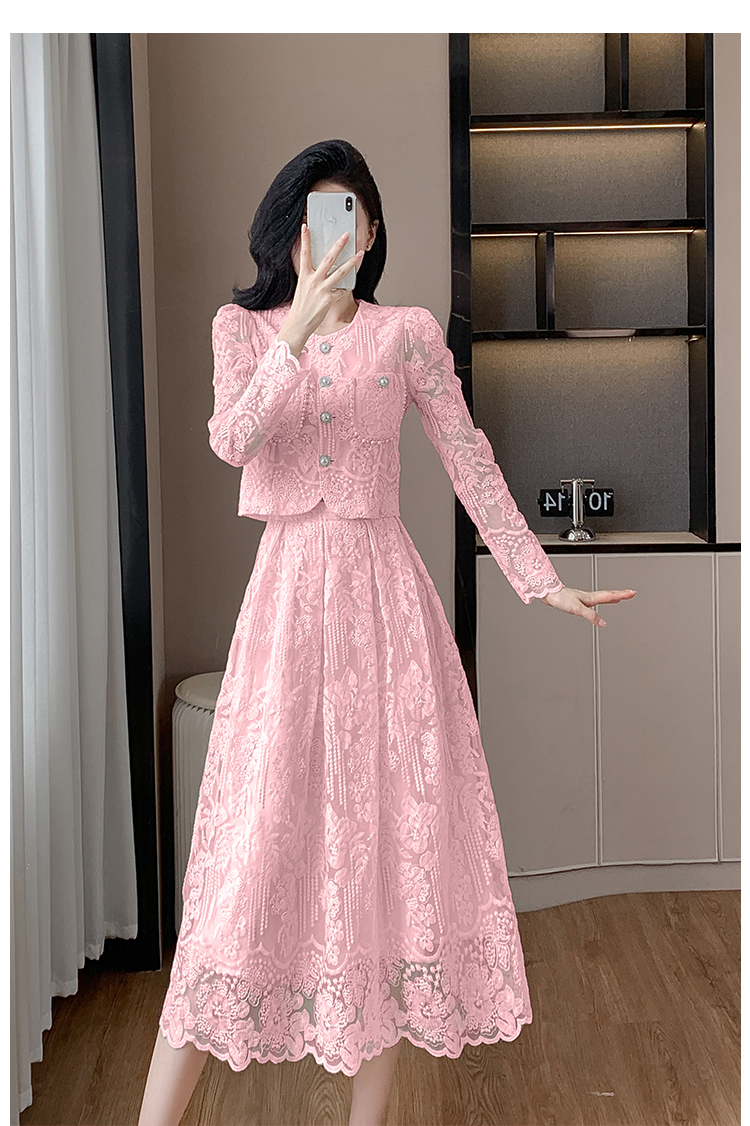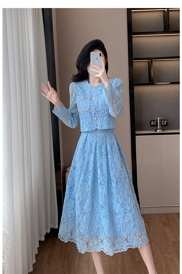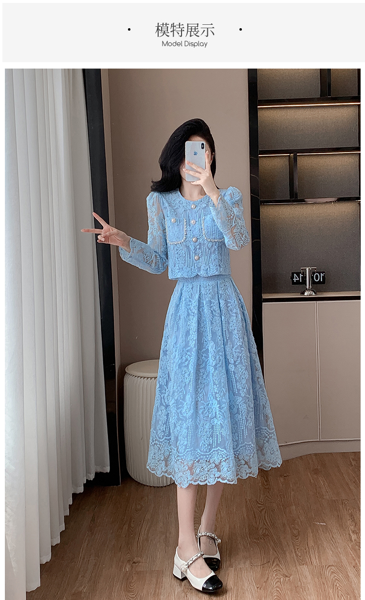 MY16854# 刺绣套装名媛轻奢水溶蕾丝半身裙两件套女裝貨源服裝批發