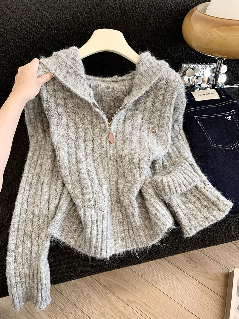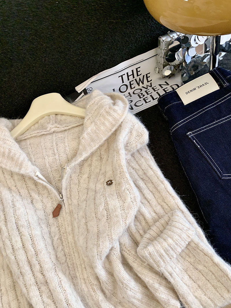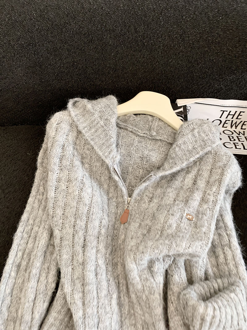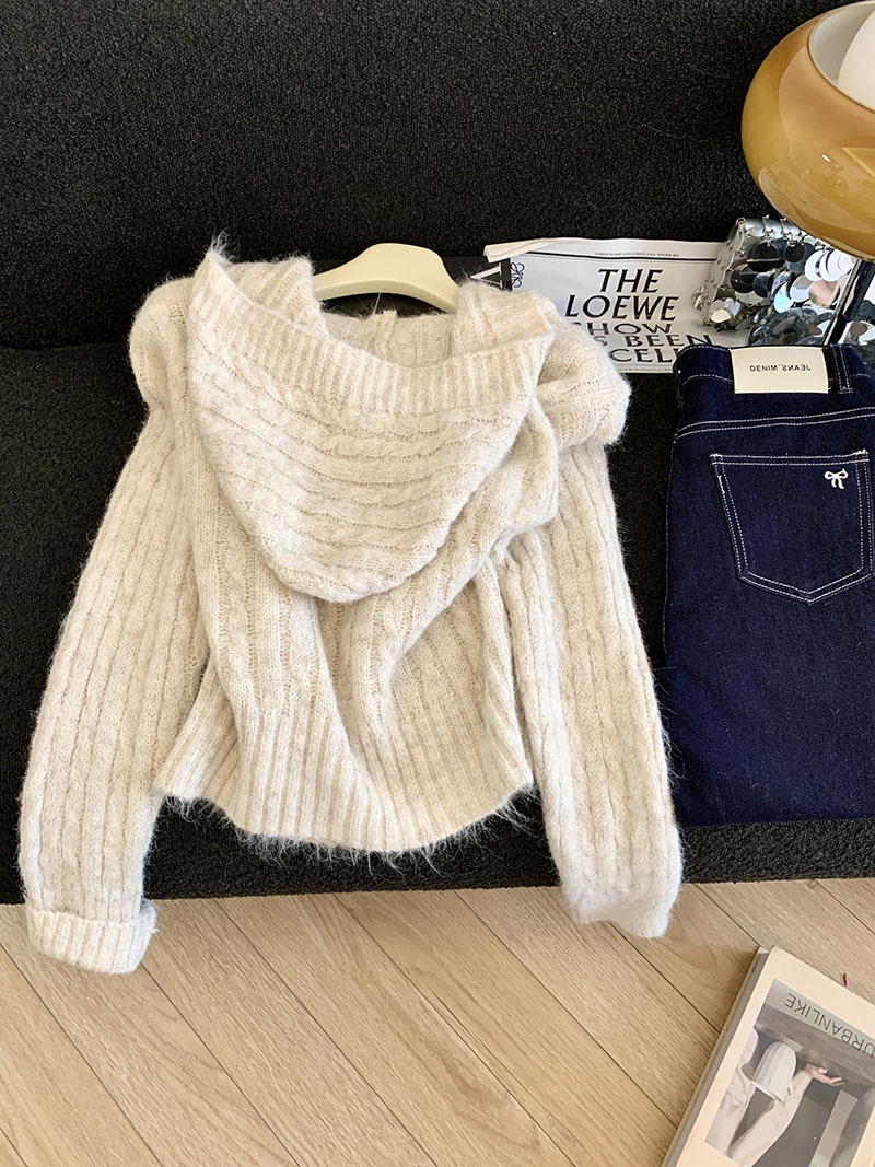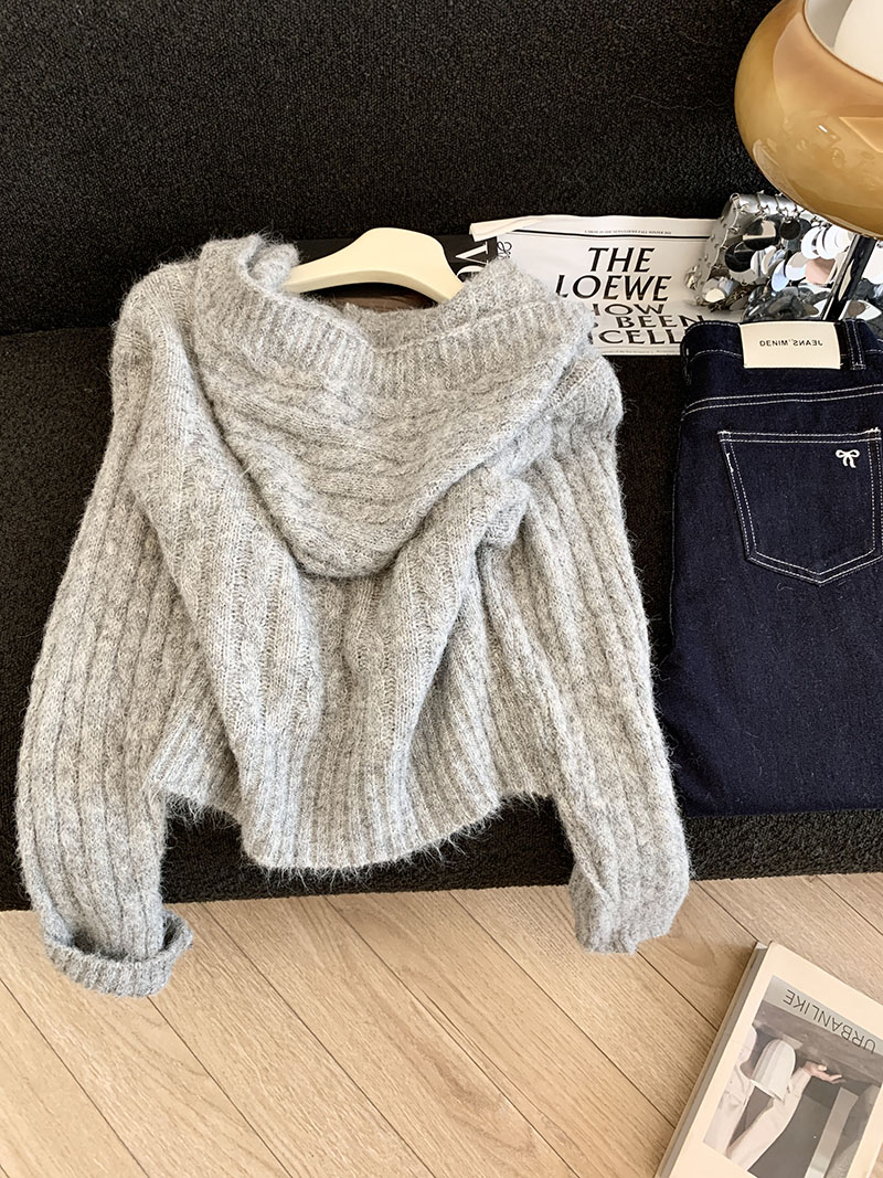 MY16869# 慵懒风连帽毛衣外套女秋季新款宽松休闲百搭简约针织开衫上衣女裝貨源服裝批發