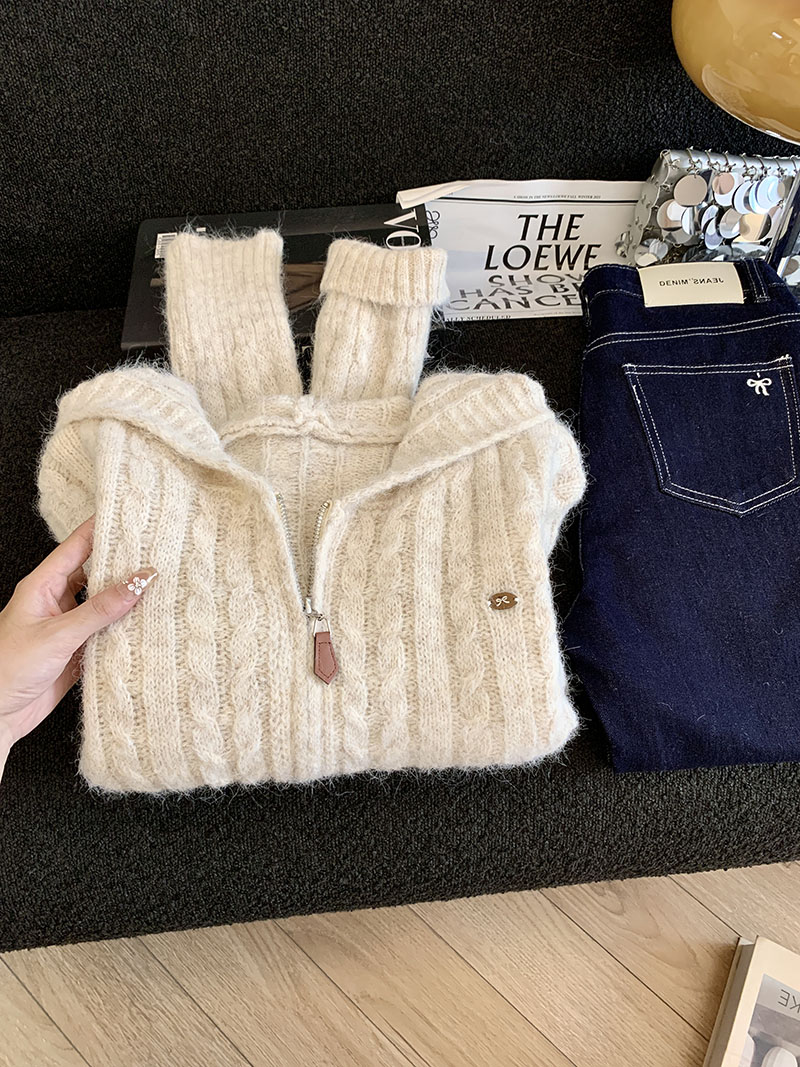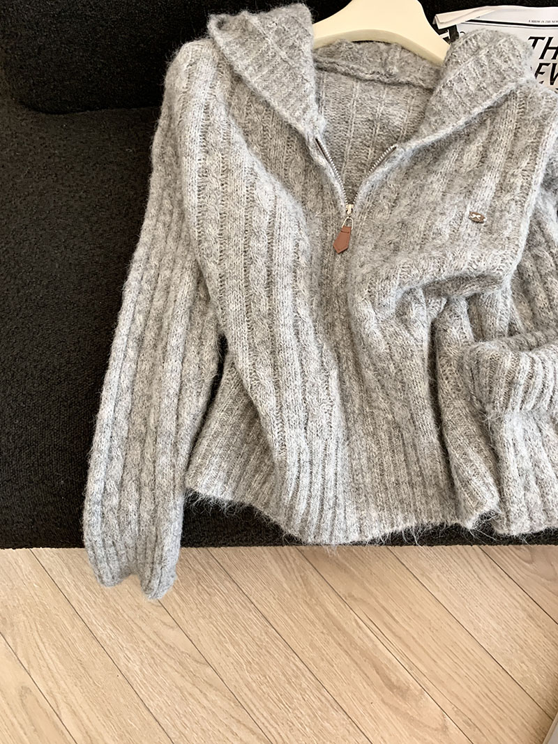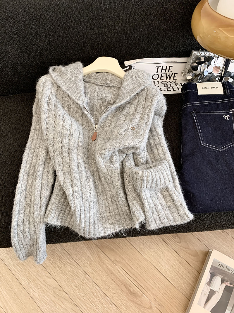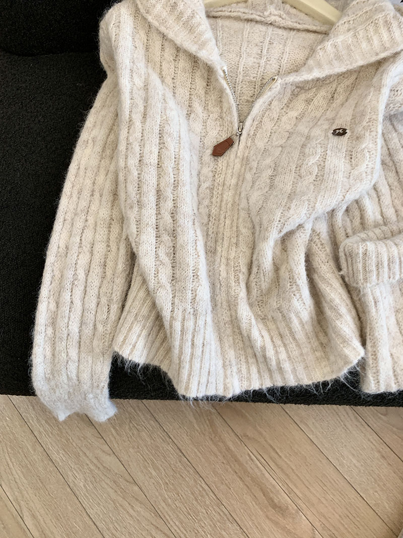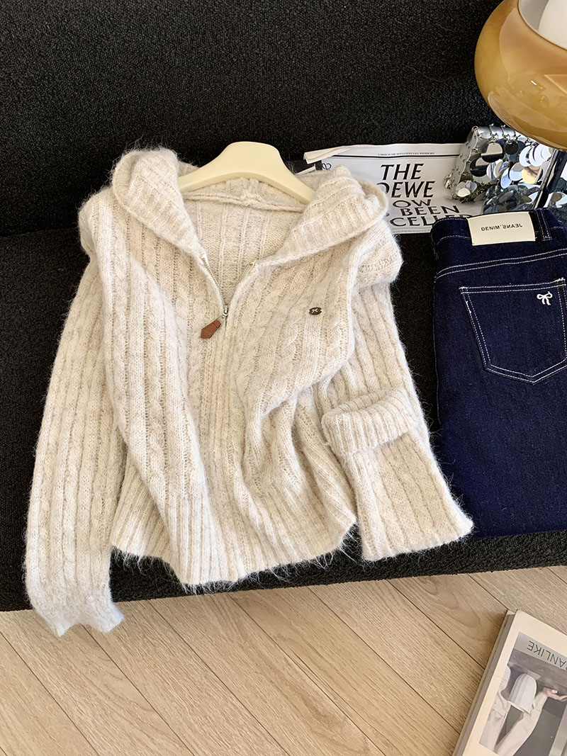 MY16869# 慵懒风连帽毛衣外套女秋季新款宽松休闲百搭简约针织开衫上衣女裝貨源服裝批發