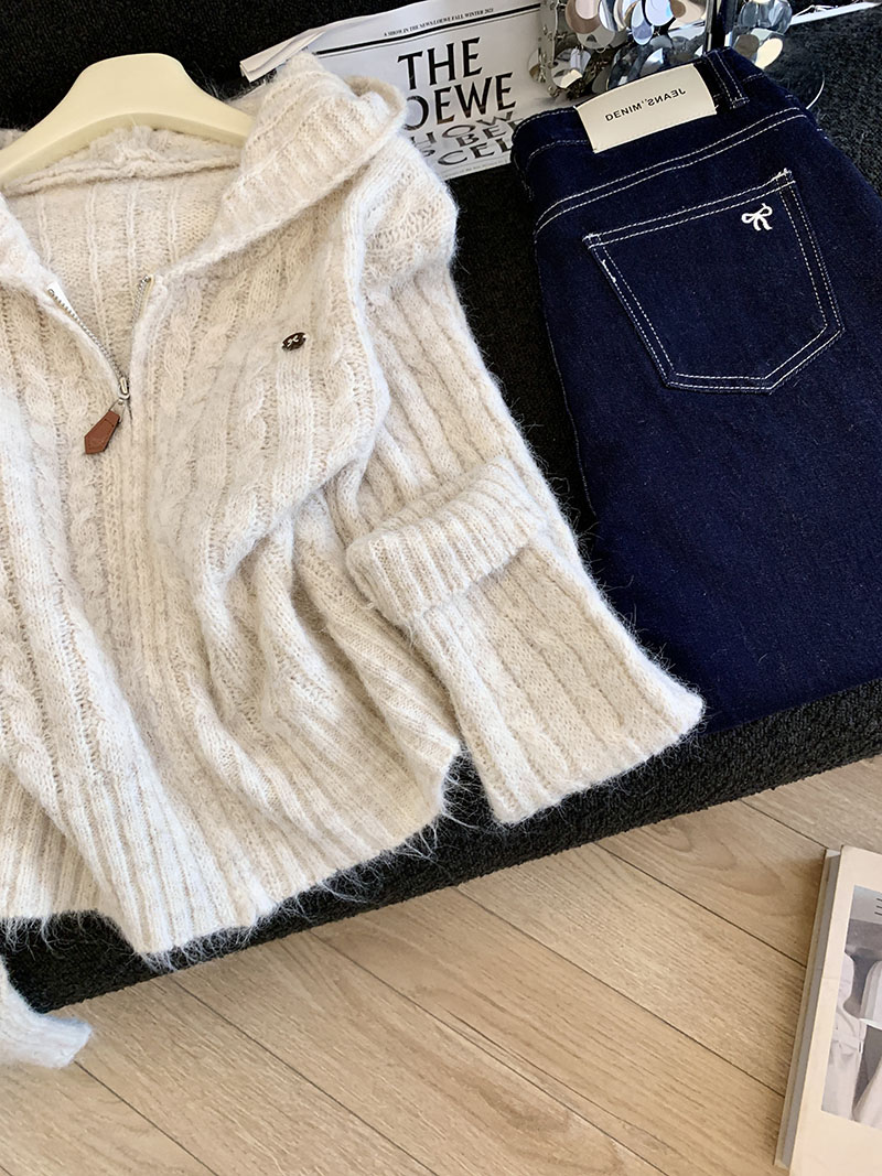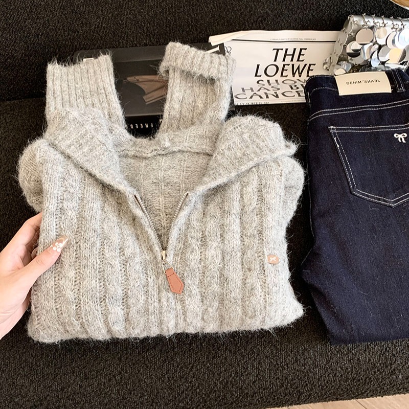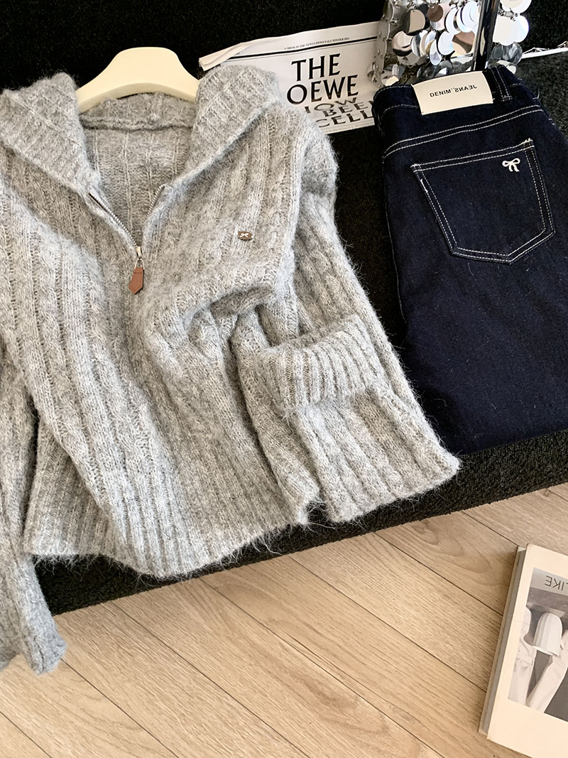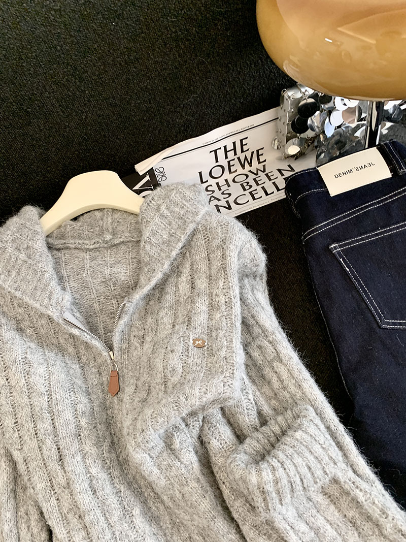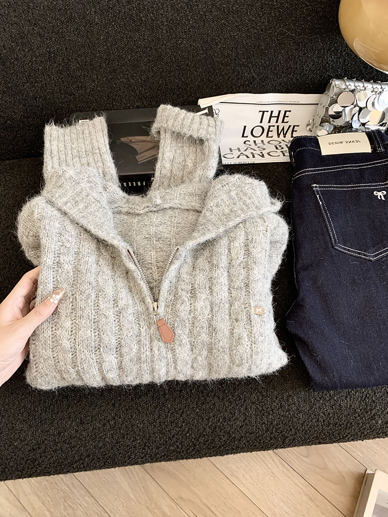 MY16869# 慵懒风连帽毛衣外套女秋季新款宽松休闲百搭简约针织开衫上衣女裝貨源服裝批發