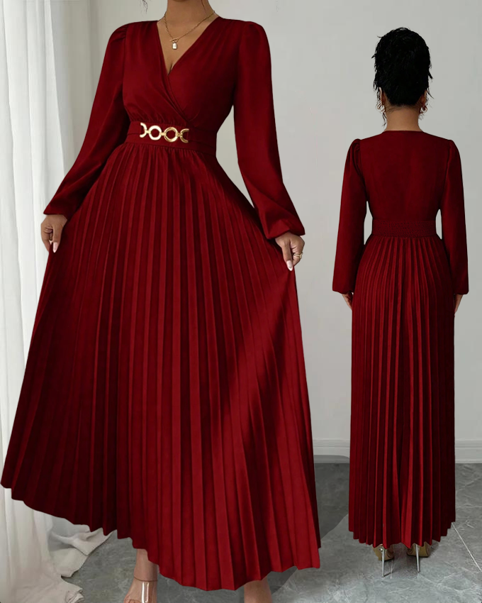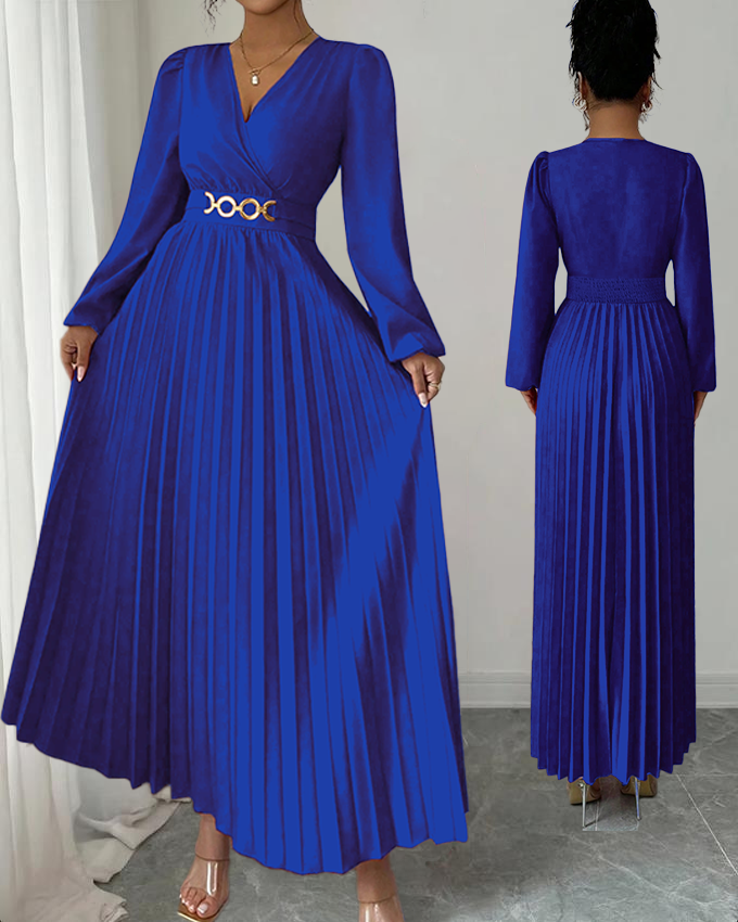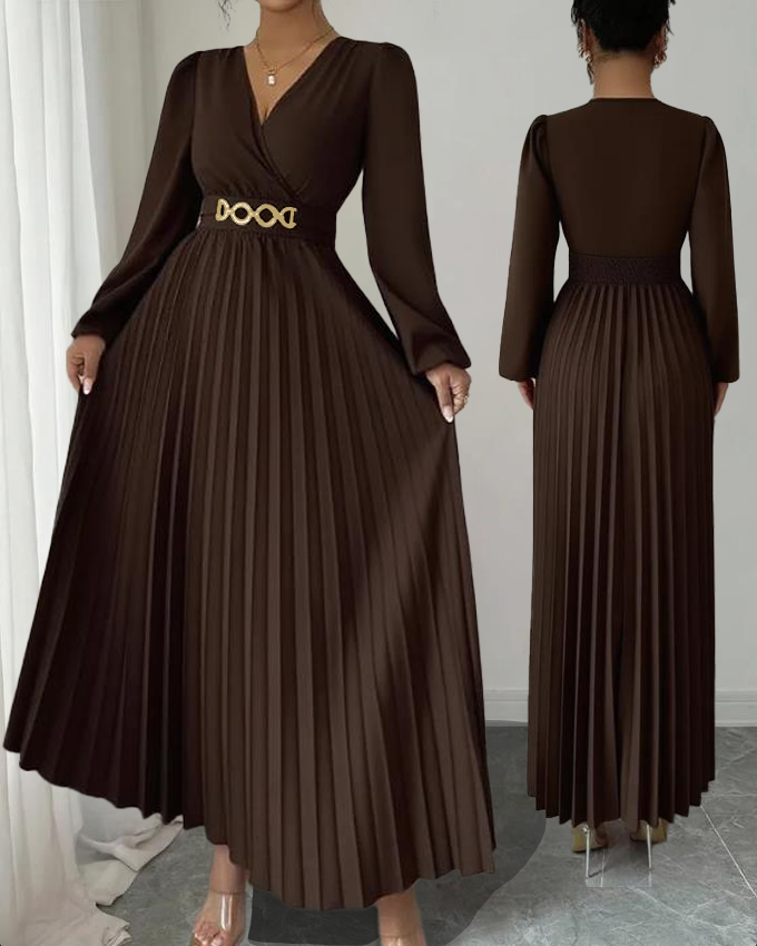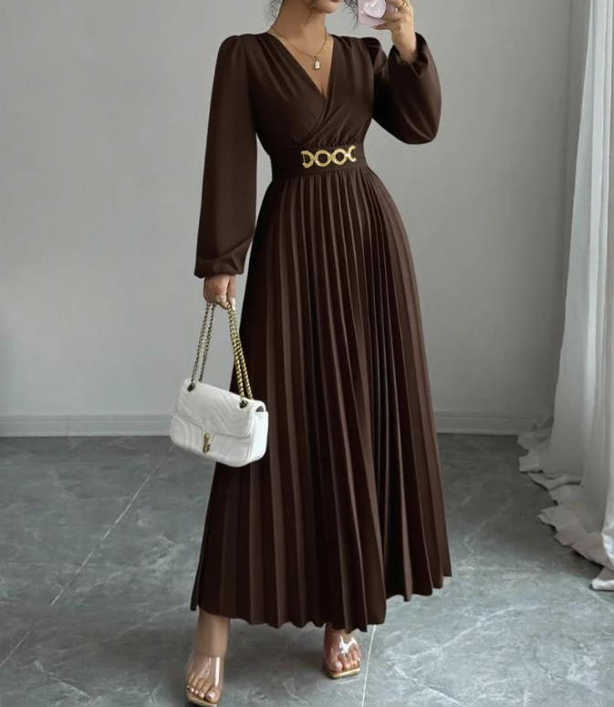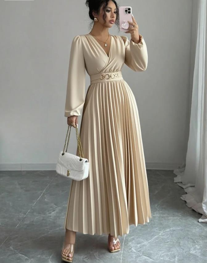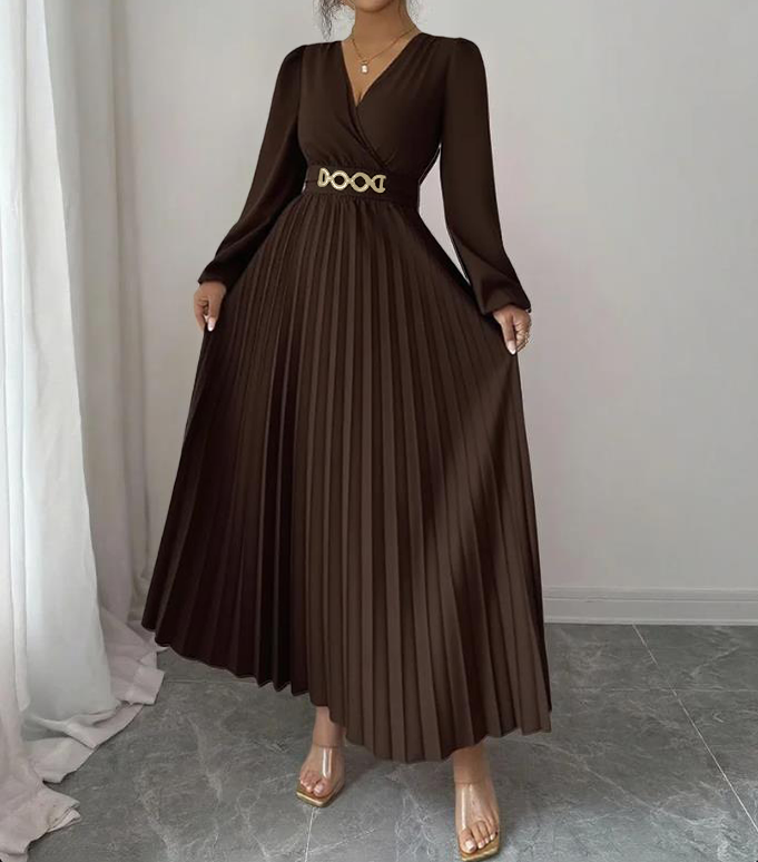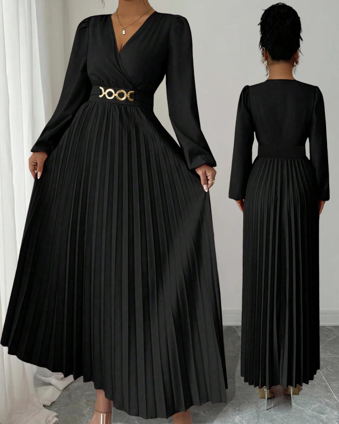 MY16872# 大码女装连衣裙优雅压褶下摆,金属配饰,侧边拉链后背打揽设计,女裝貨源服裝批發
