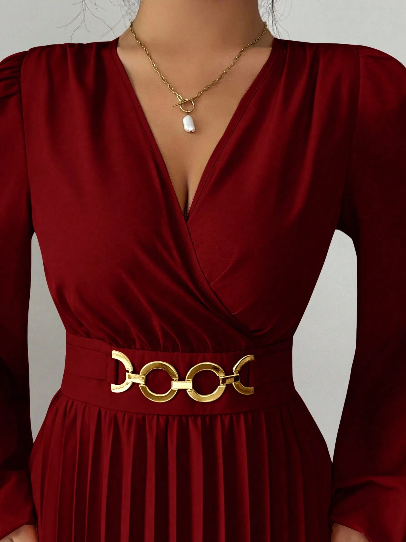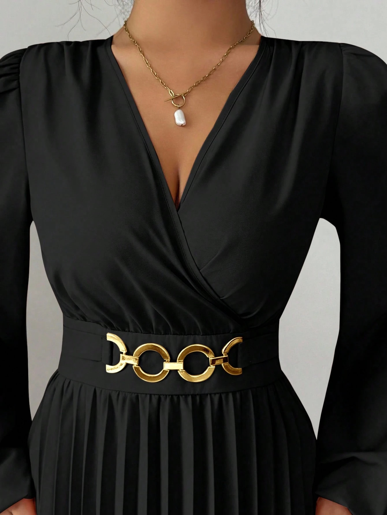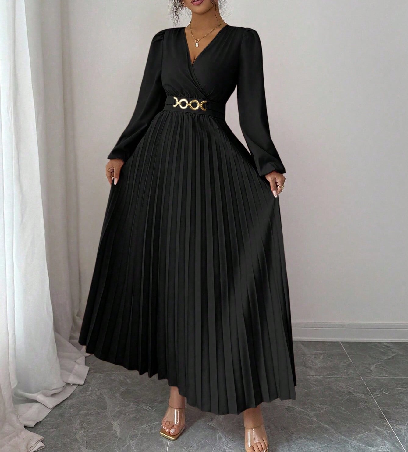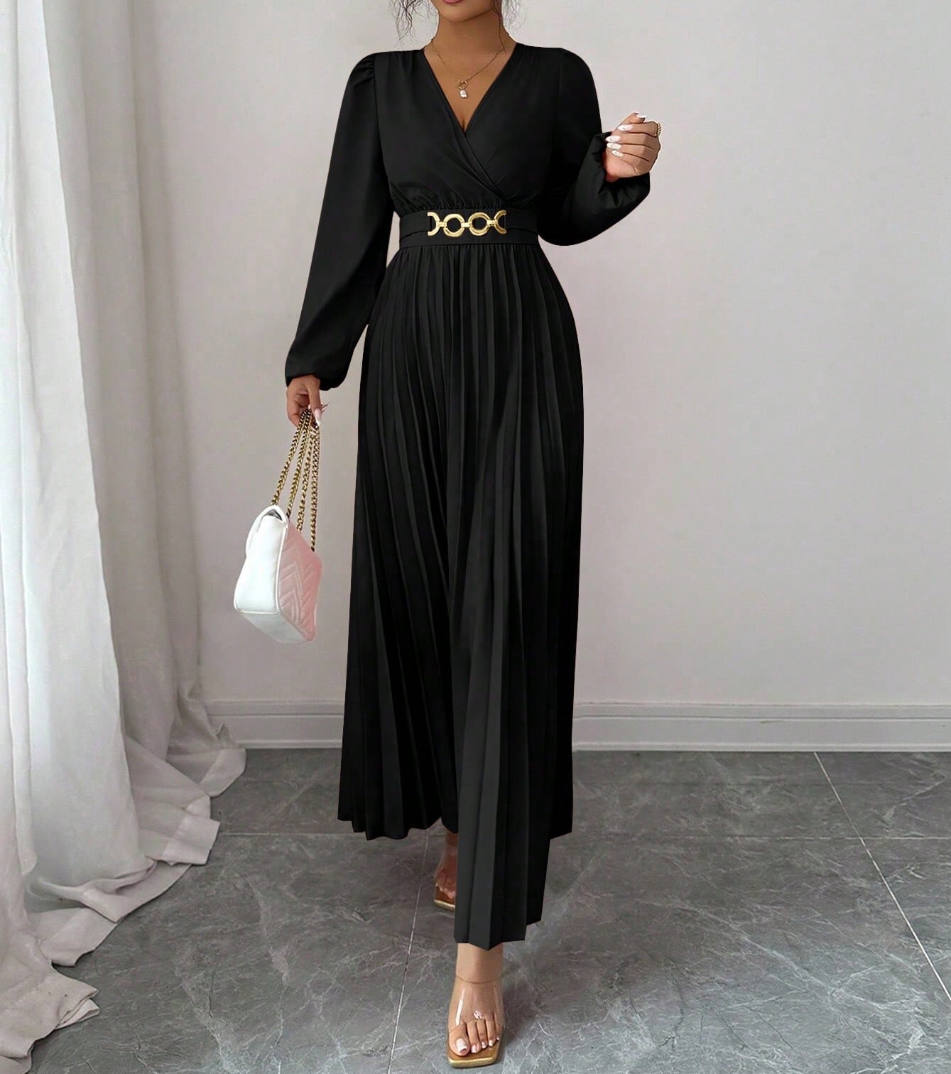 MY16872# 大码女装连衣裙优雅压褶下摆,金属配饰,侧边拉链后背打揽设计,女裝貨源服裝批發