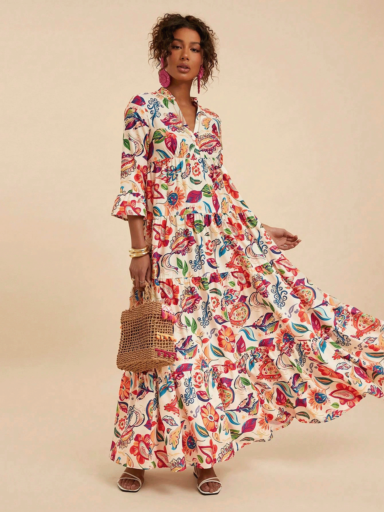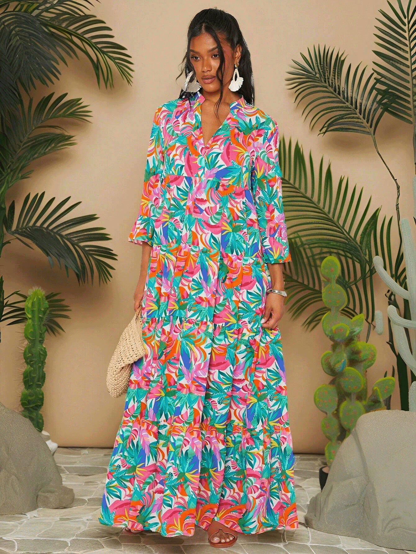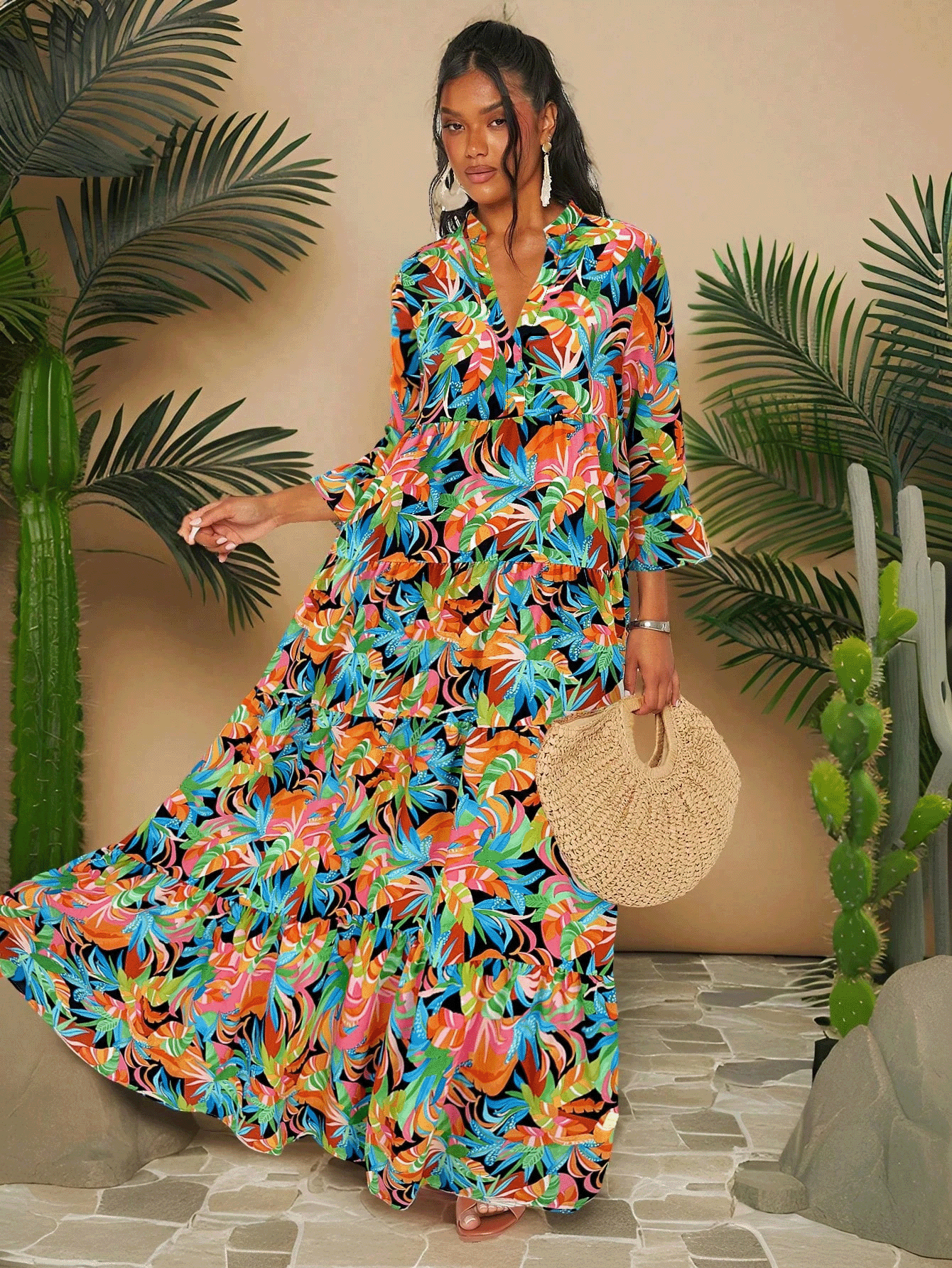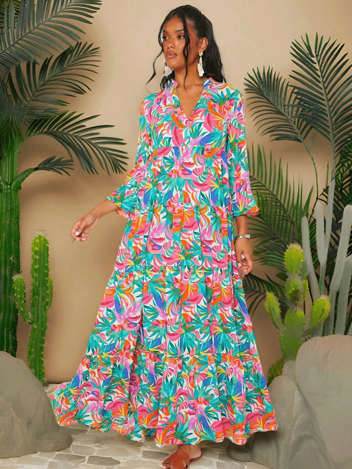 MY16876# 时尚优雅波西米亚热带印花长裙A摆,宽松舒适时尚女装,户外休闲女裝貨源服裝批發