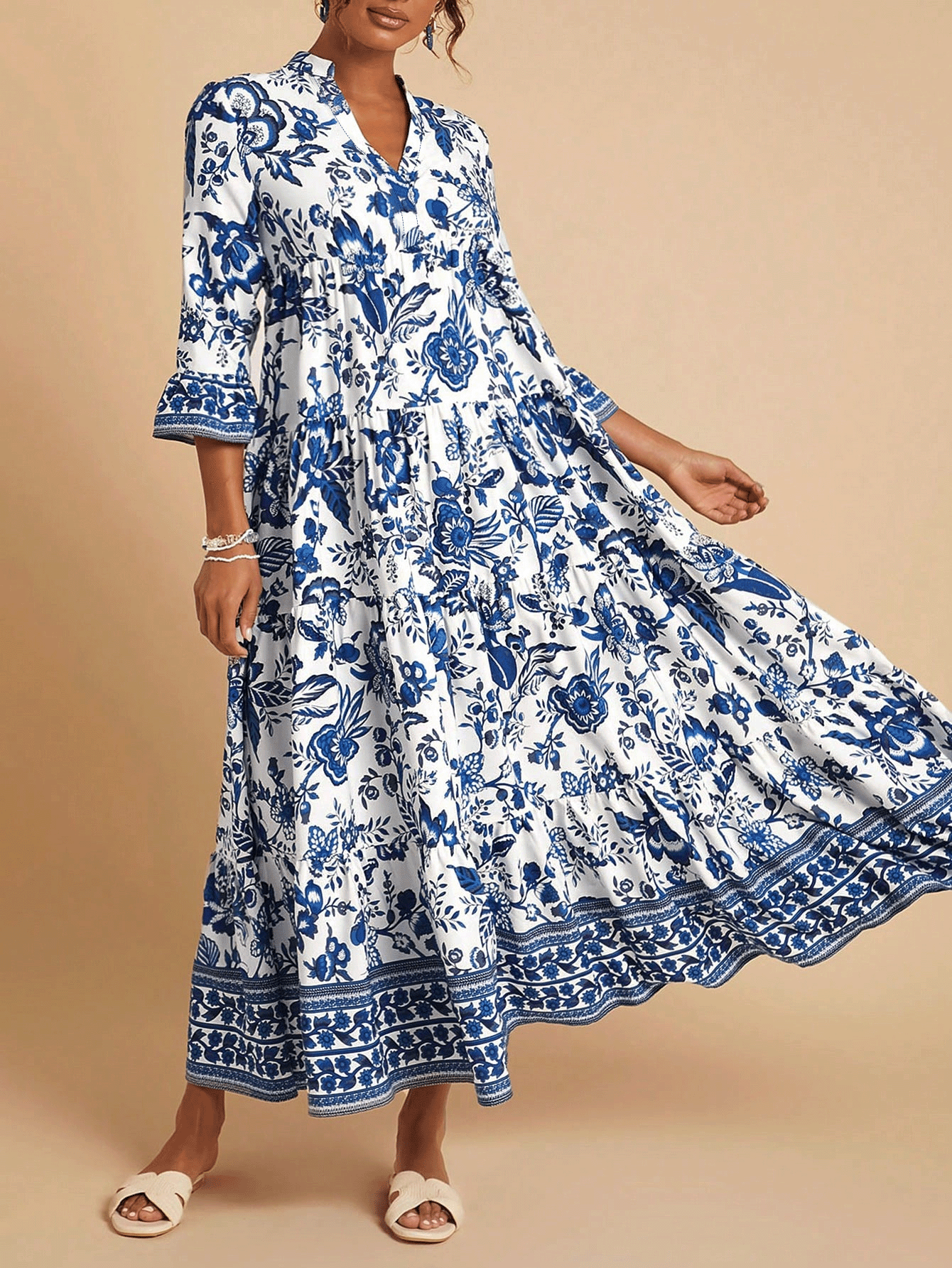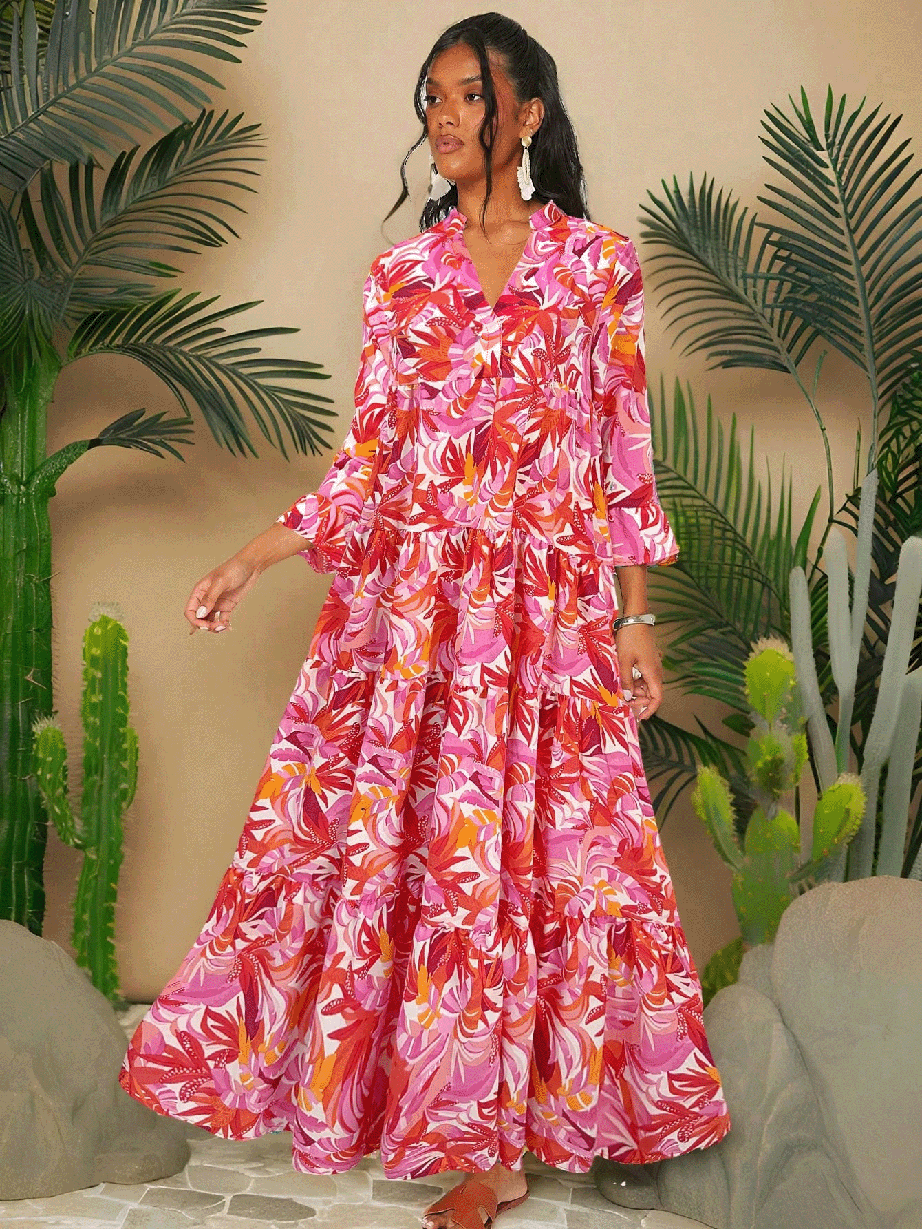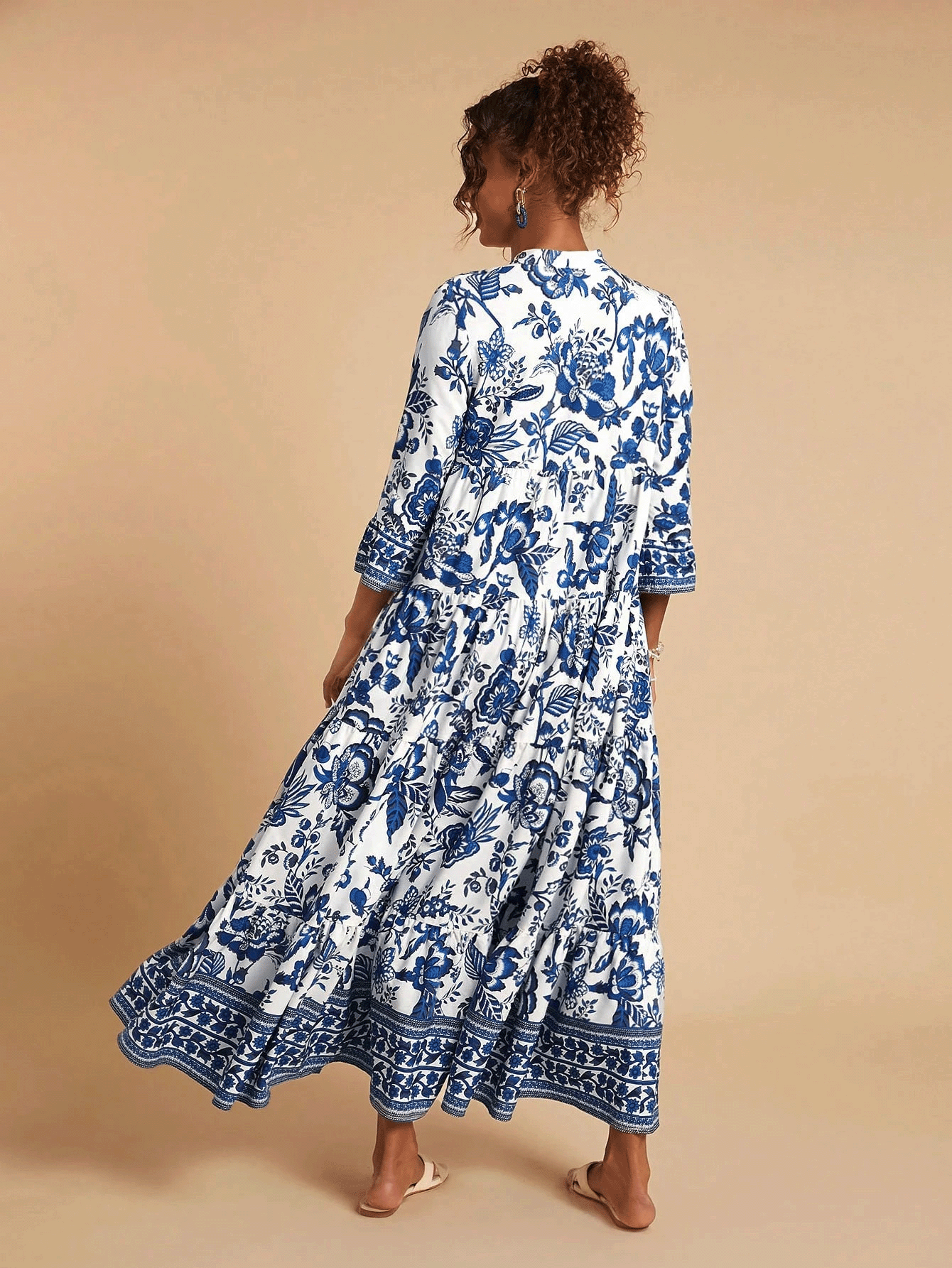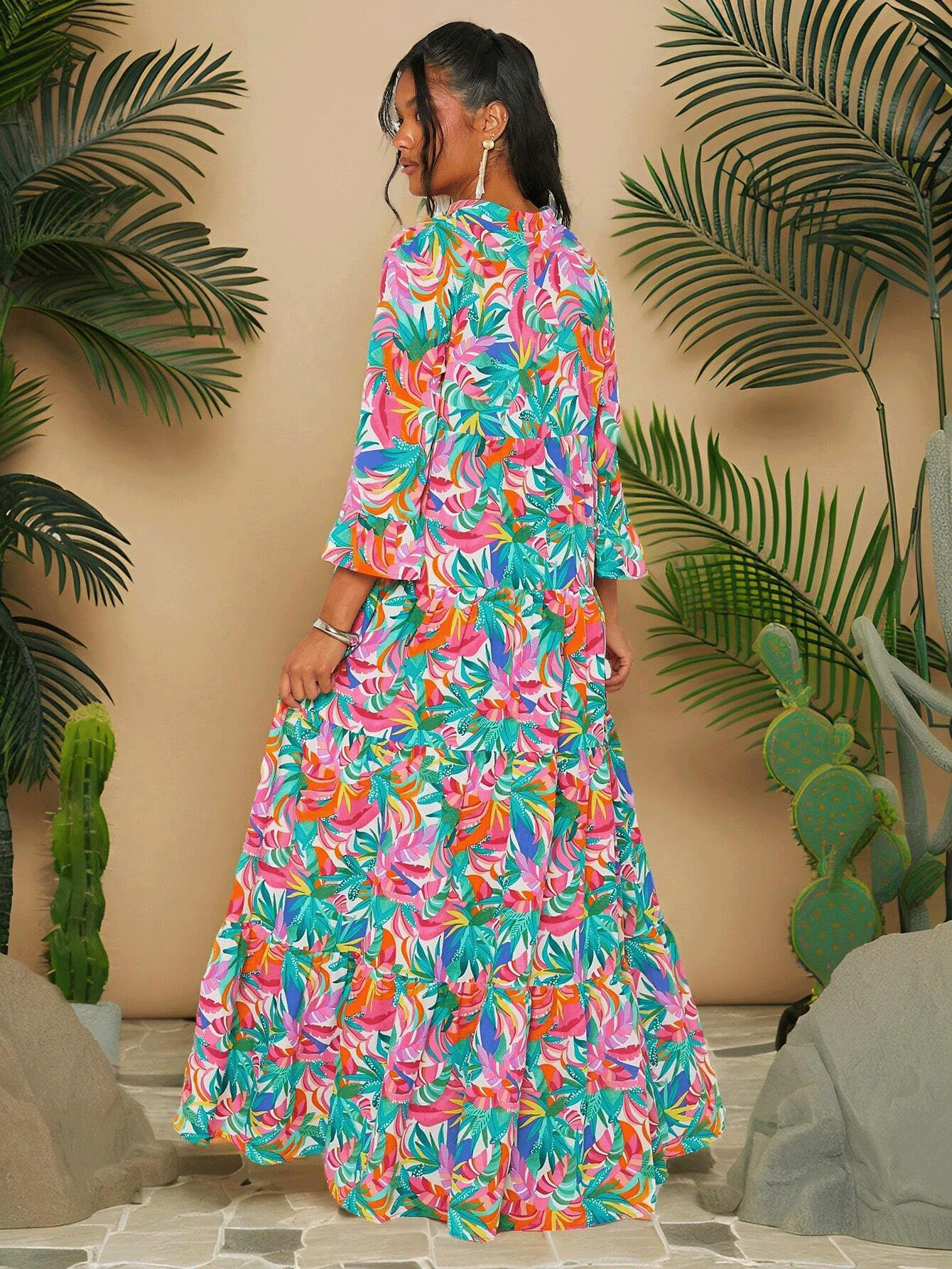 MY16876# 时尚优雅波西米亚热带印花长裙A摆,宽松舒适时尚女装,户外休闲女裝貨源服裝批發