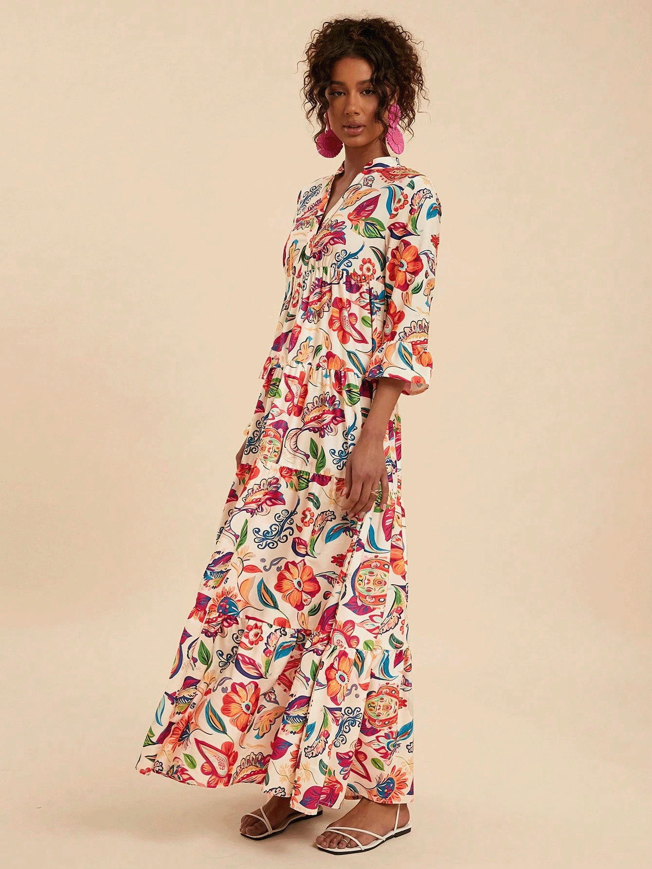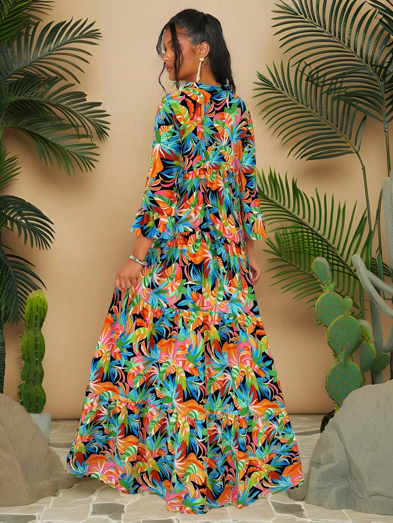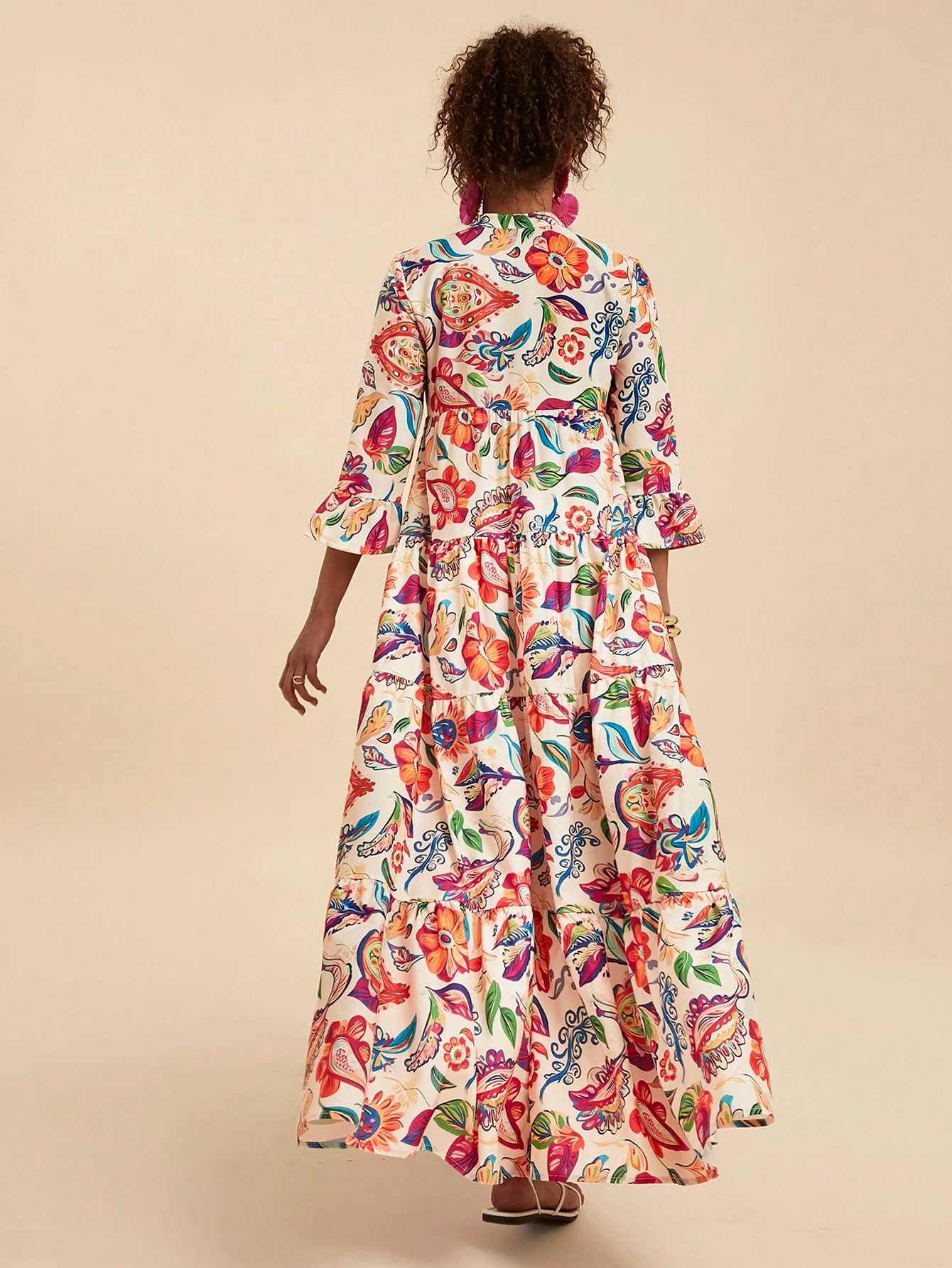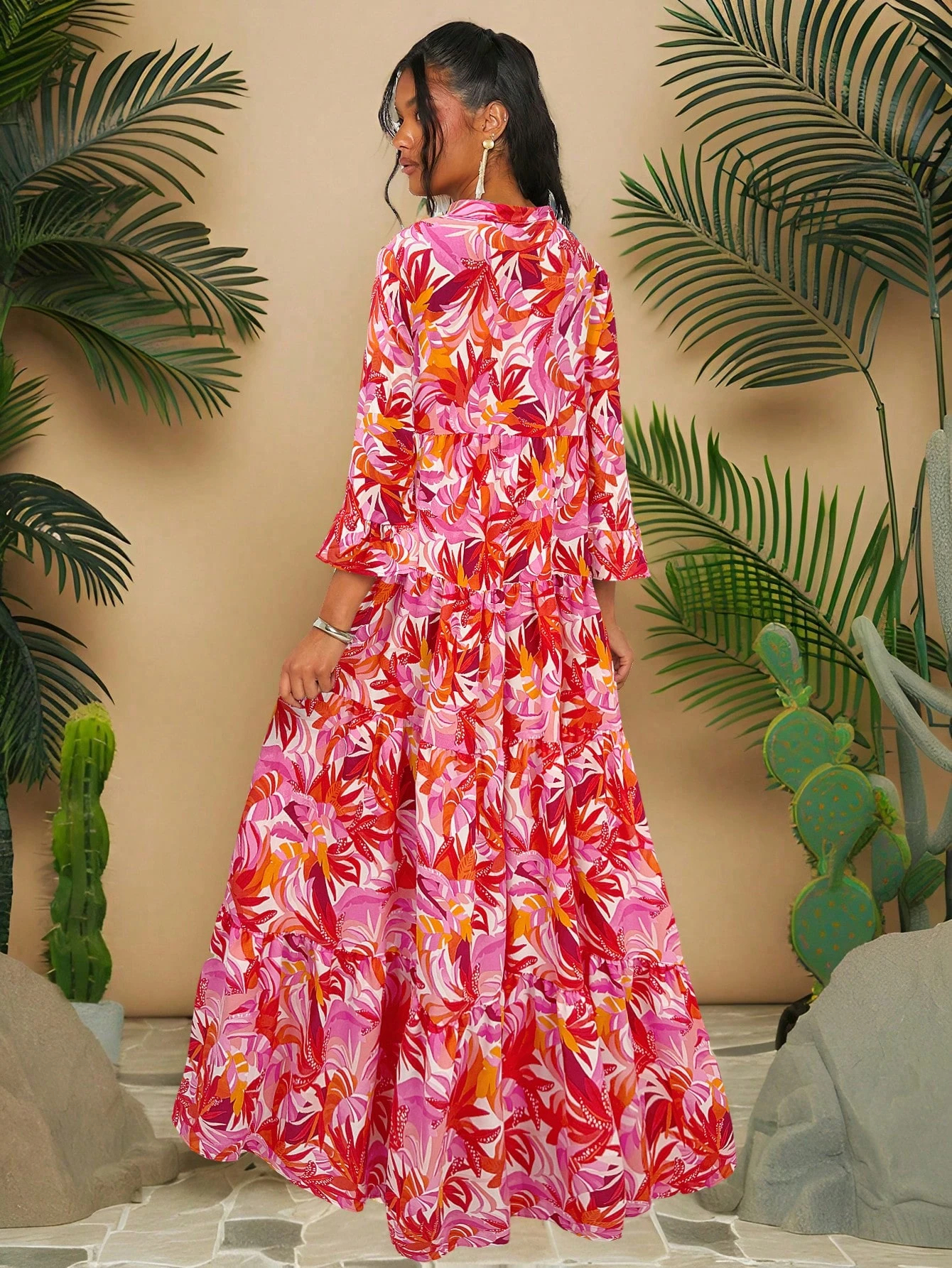 MY16876# 时尚优雅波西米亚热带印花长裙A摆,宽松舒适时尚女装,户外休闲女裝貨源服裝批發