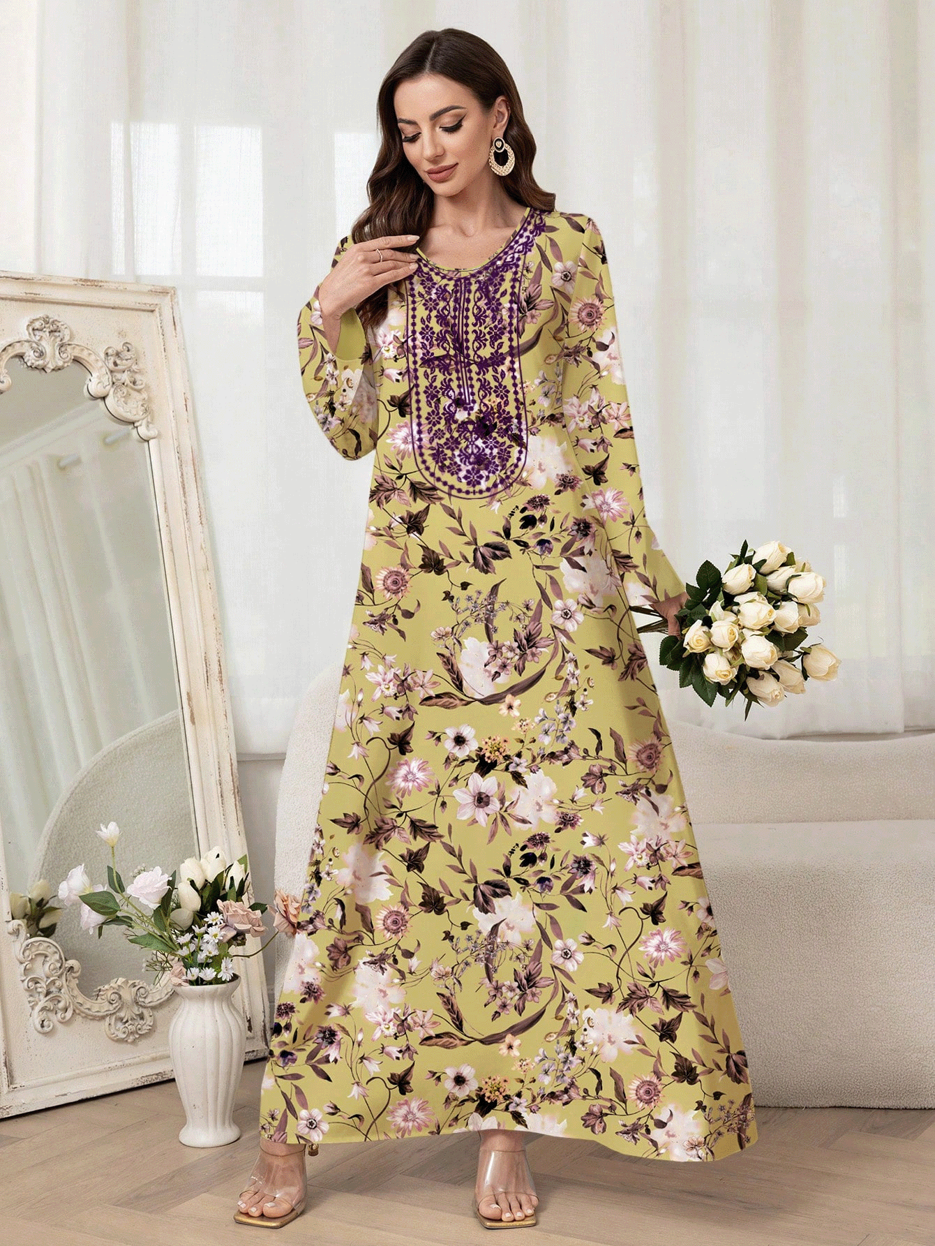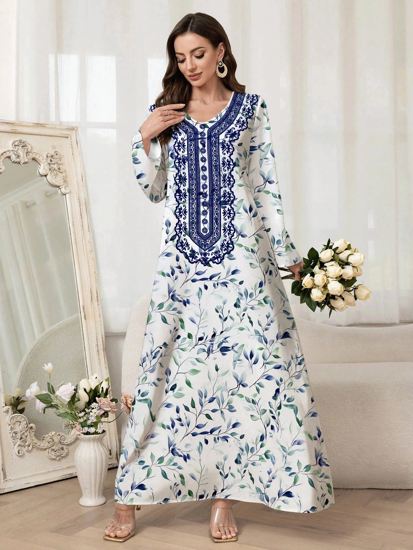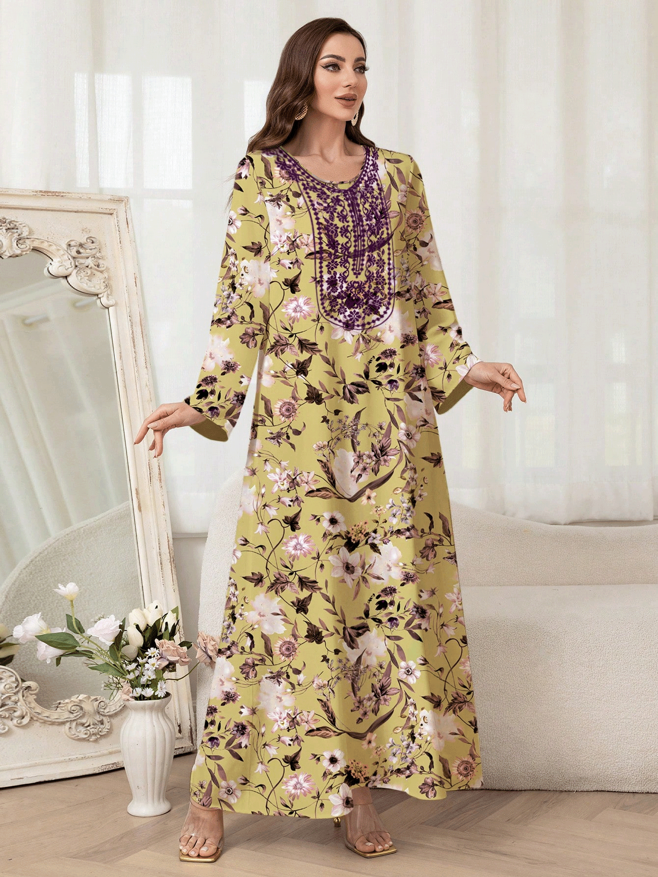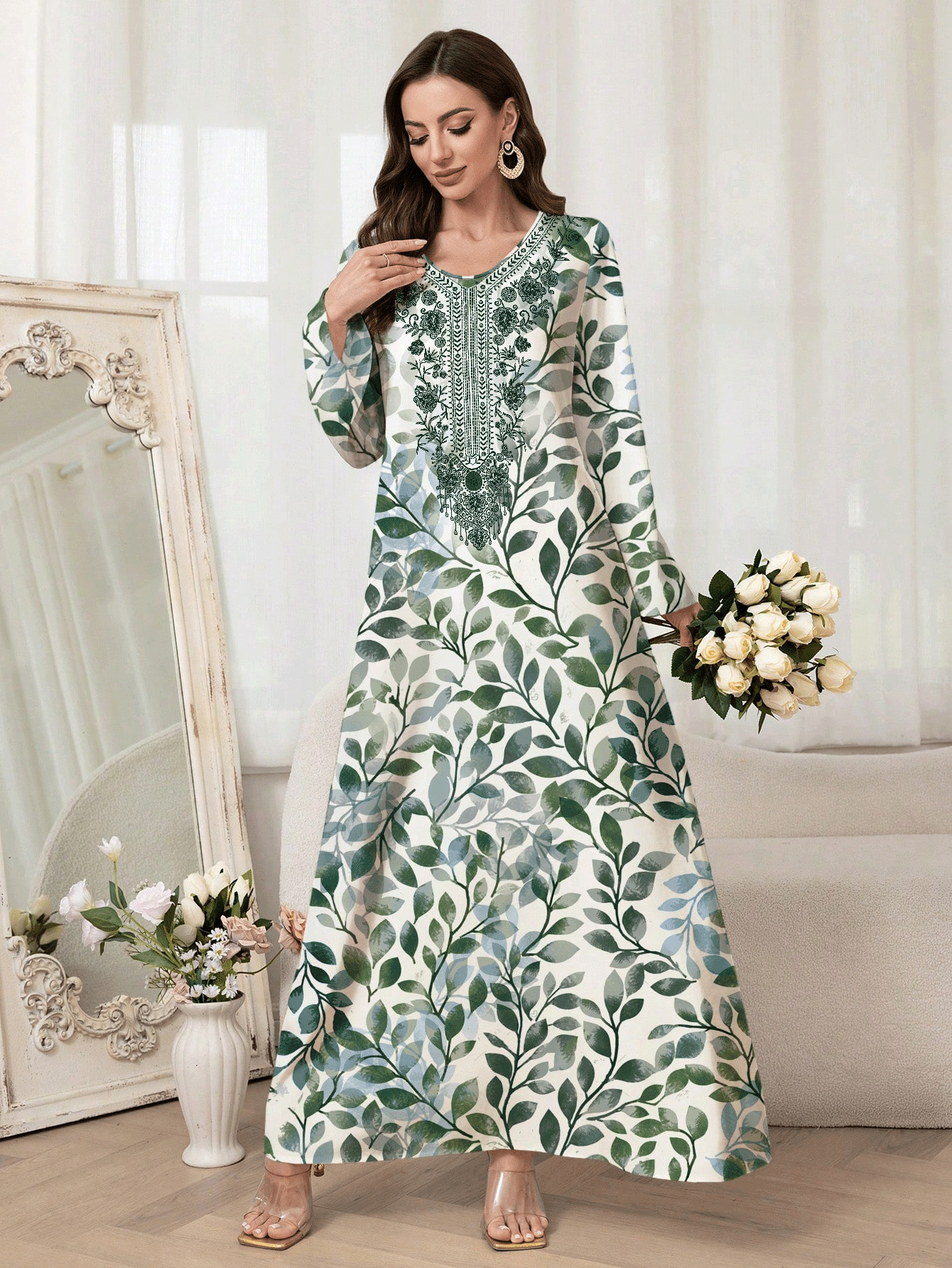 MY16879# 女士优雅印花长袖中东阿拉伯风格连衣裙时尚印花,休闲春夏女装女裝貨源服裝批發