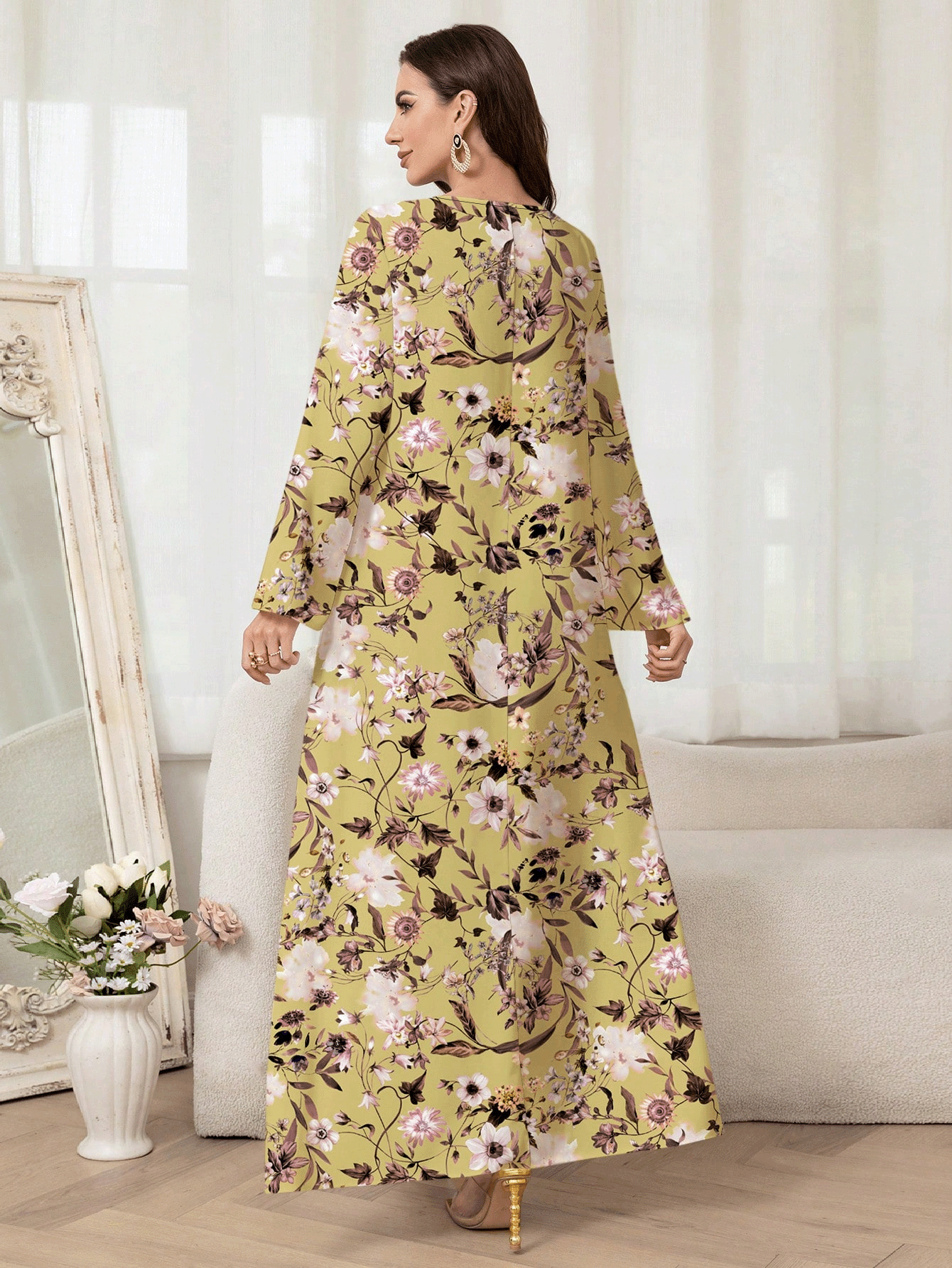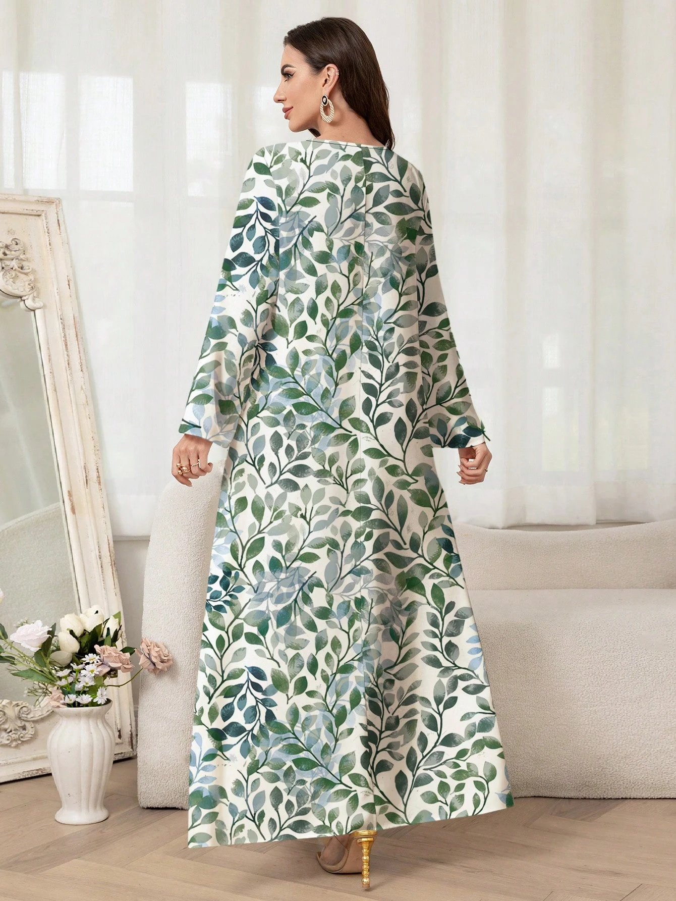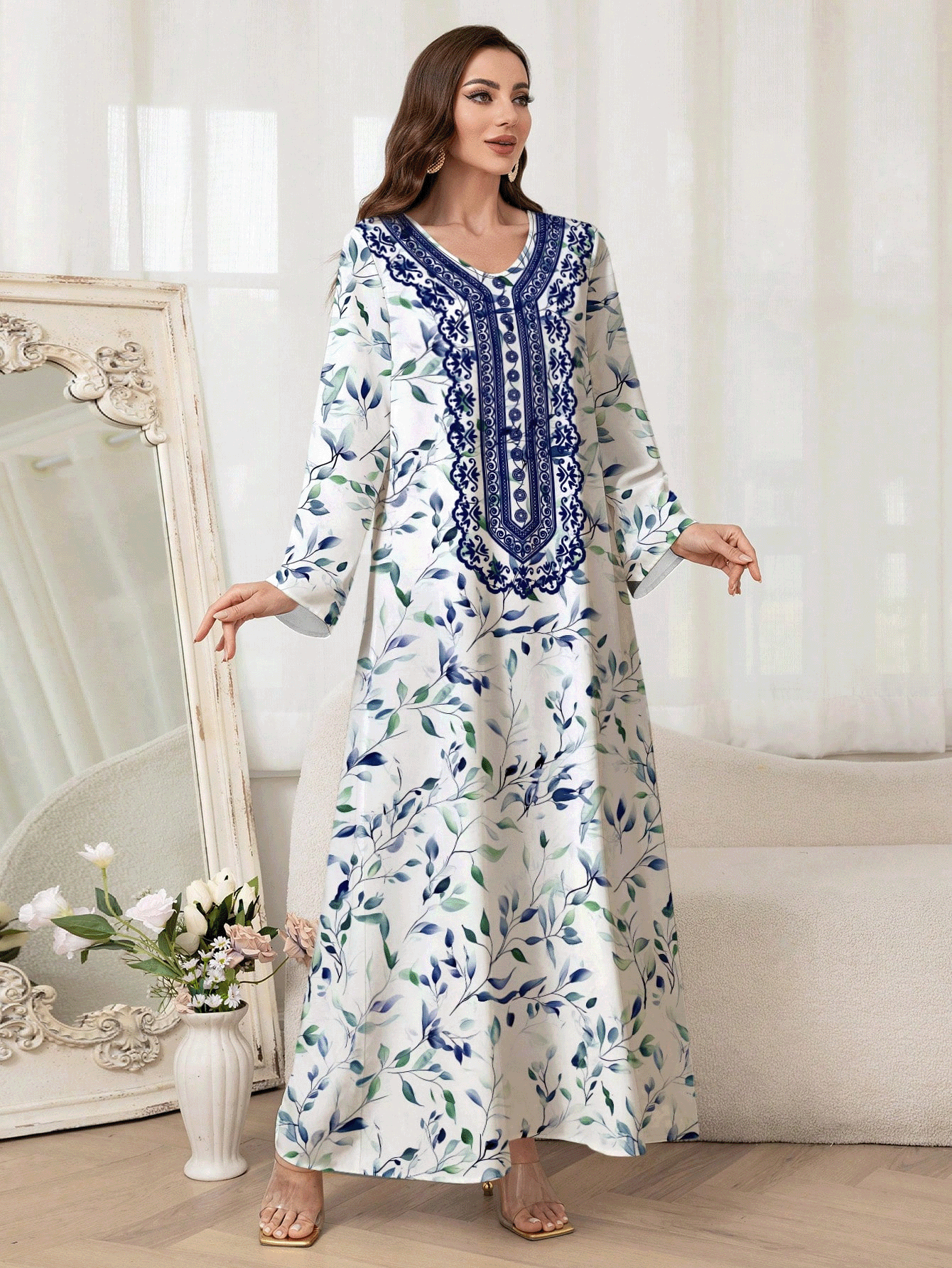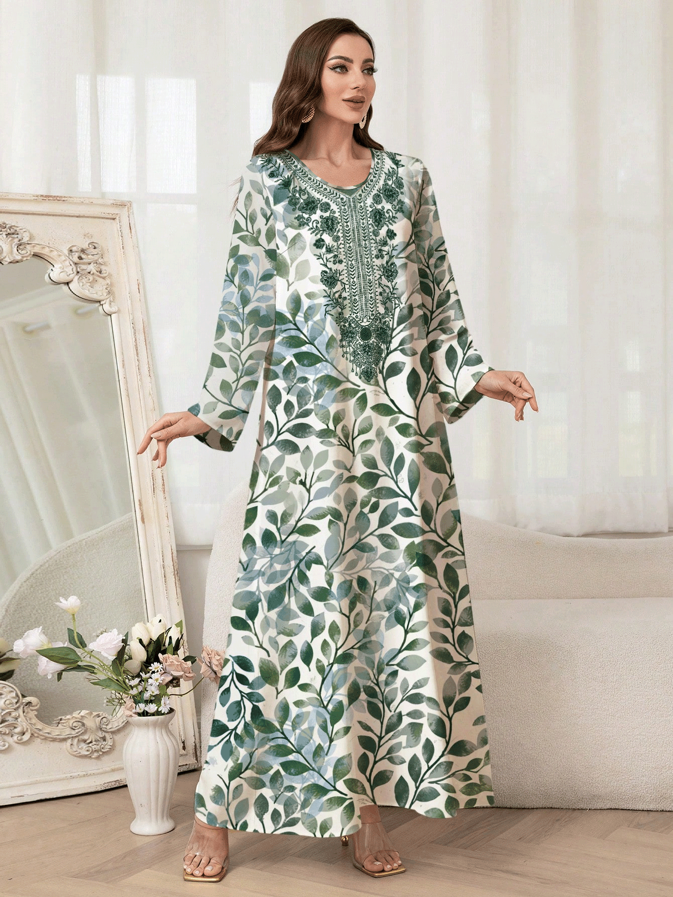 MY16879# 女士优雅印花长袖中东阿拉伯风格连衣裙时尚印花,休闲春夏女装女裝貨源服裝批發