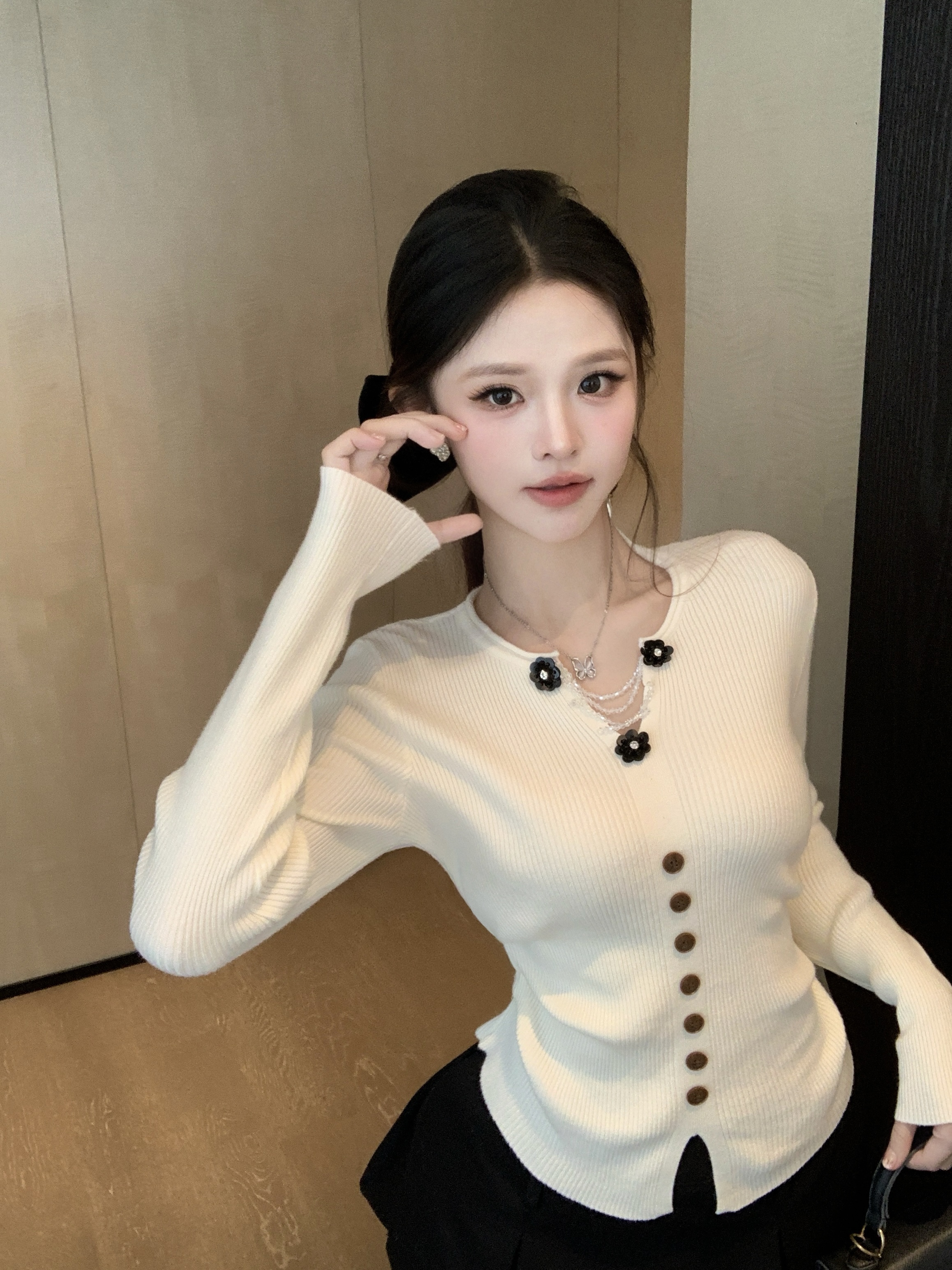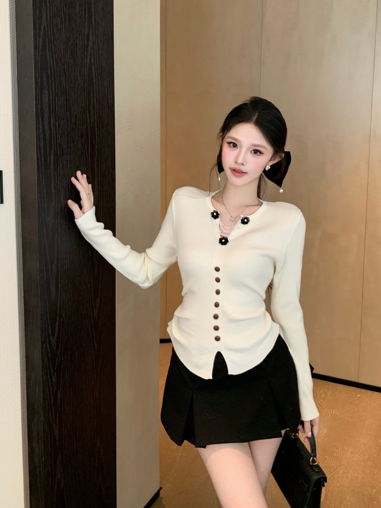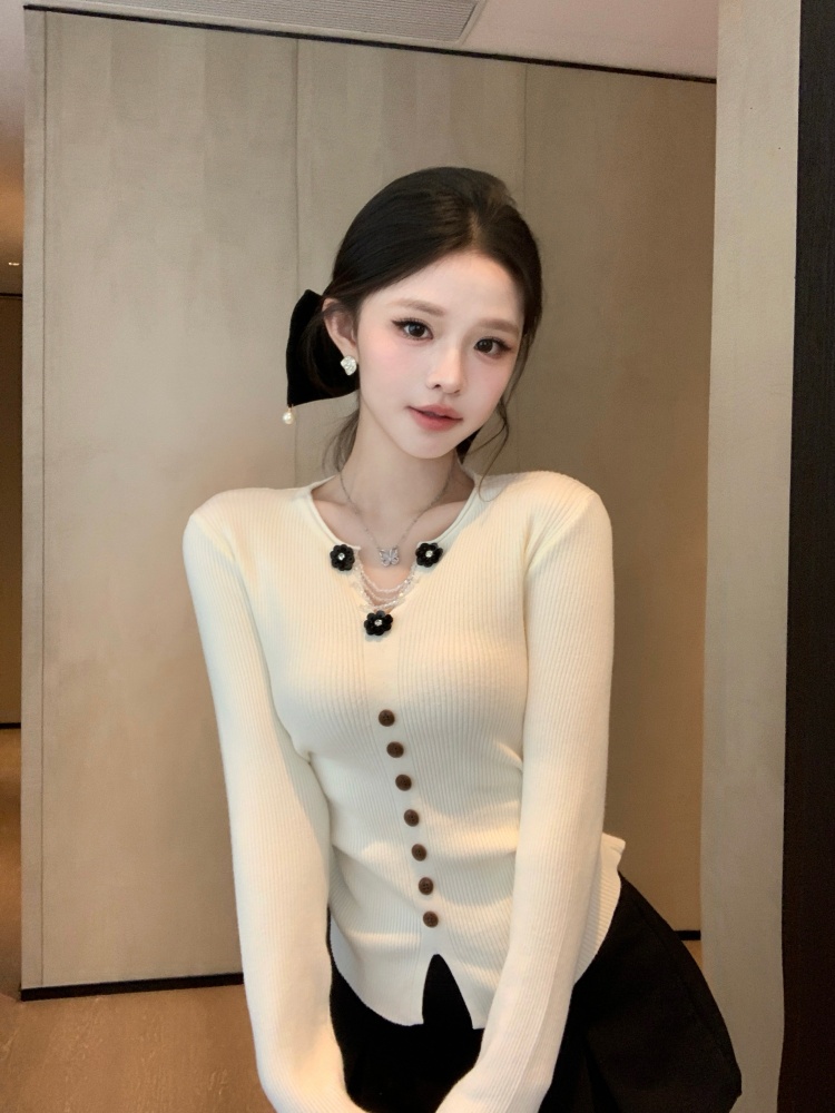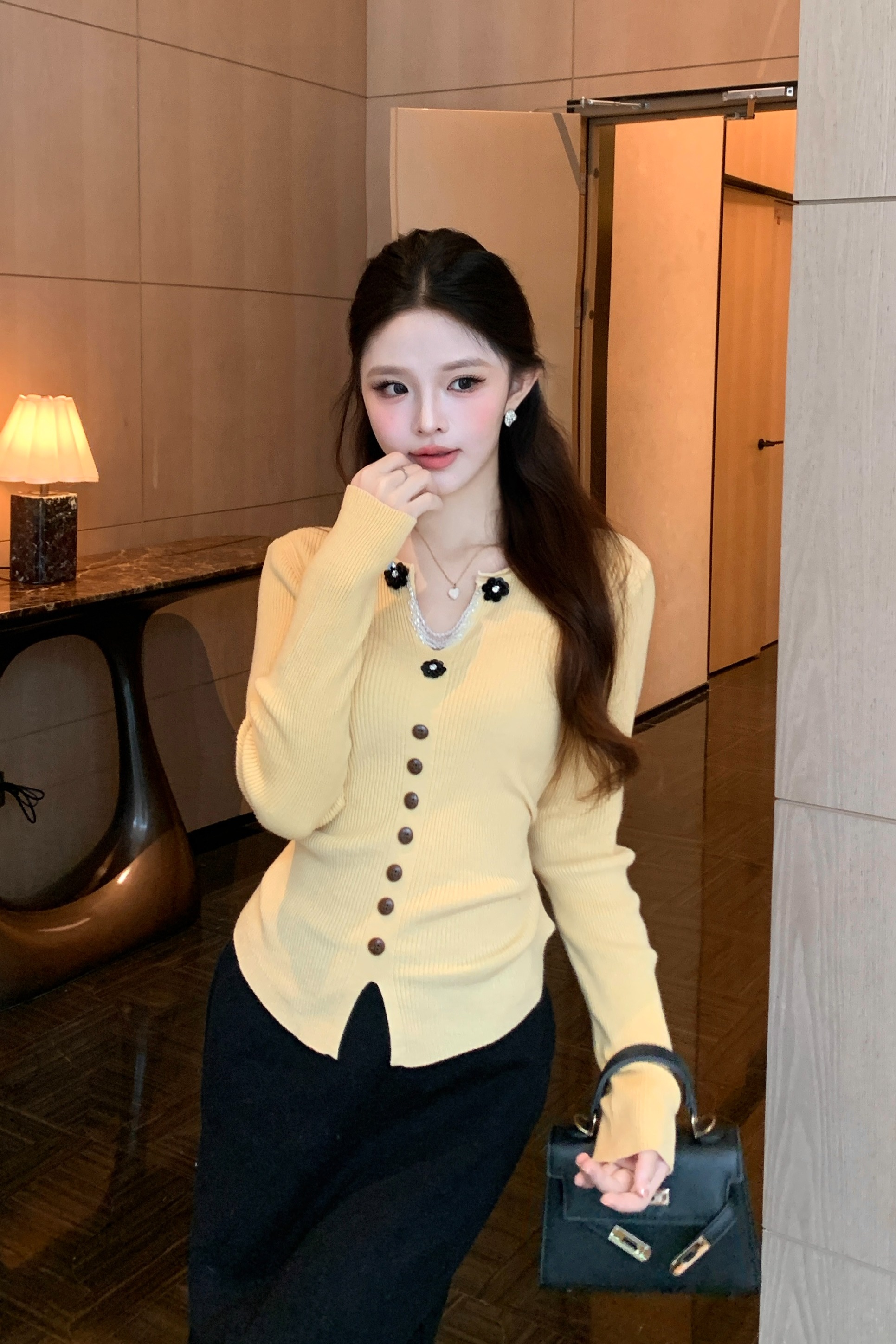 MY16894# 新款韩系黄色针织开衫女 华夫格V领收腰显瘦气质内搭上衣女裝貨源服裝批發
