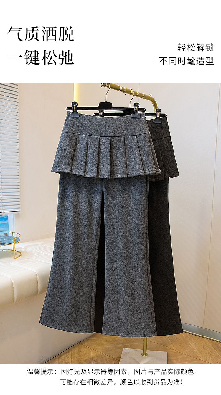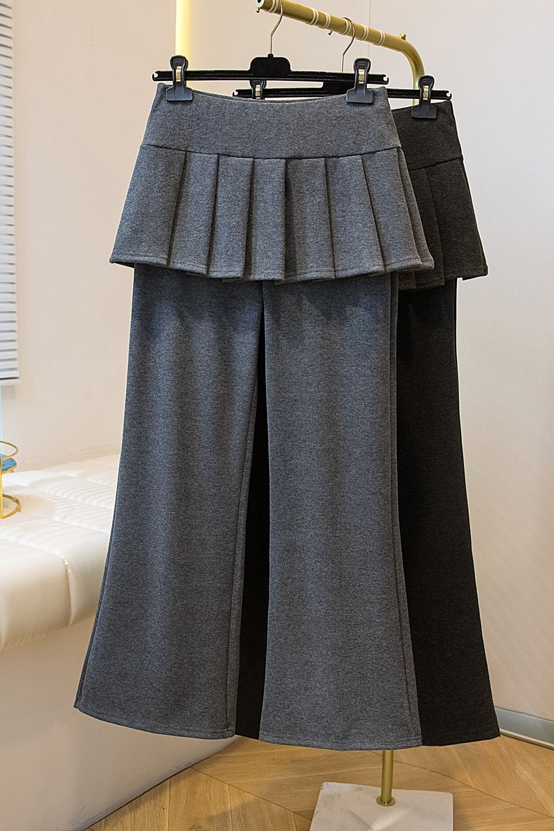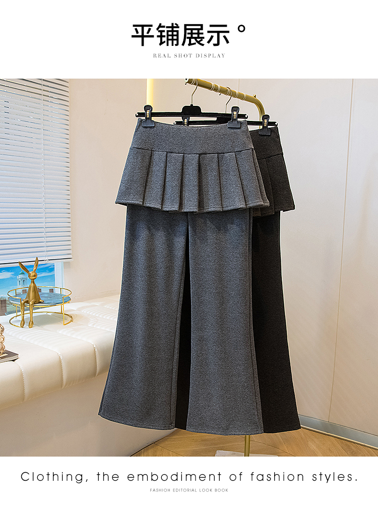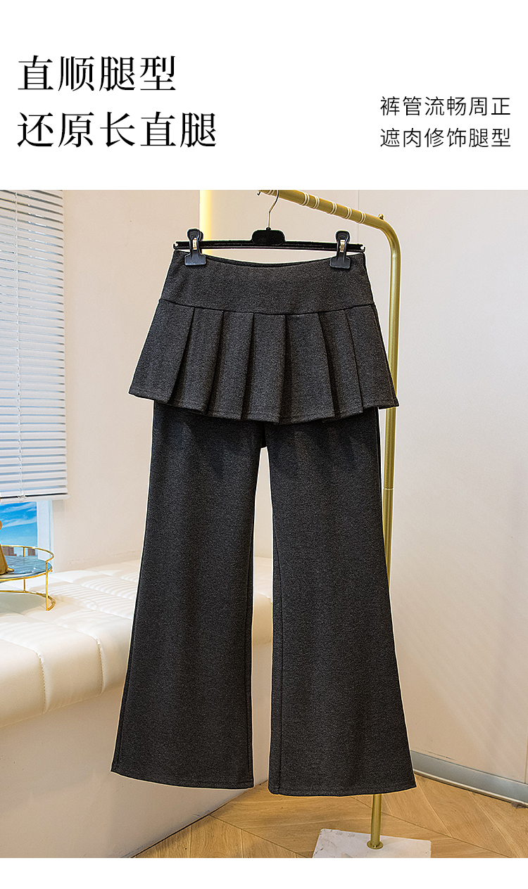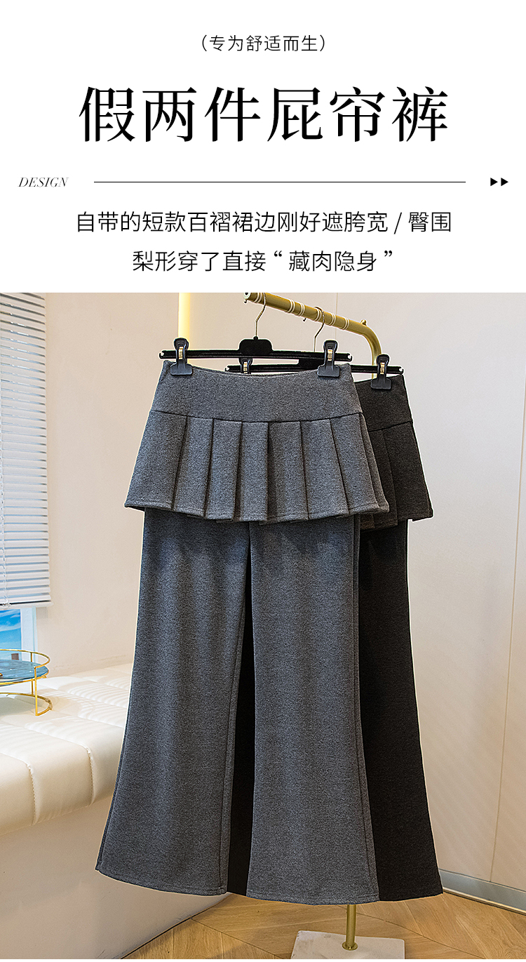 MY16915# 新款韩系叠穿假两件休闲微喇叭百褶屁帘裙修身显瘦长裤女女裝貨源服裝批發