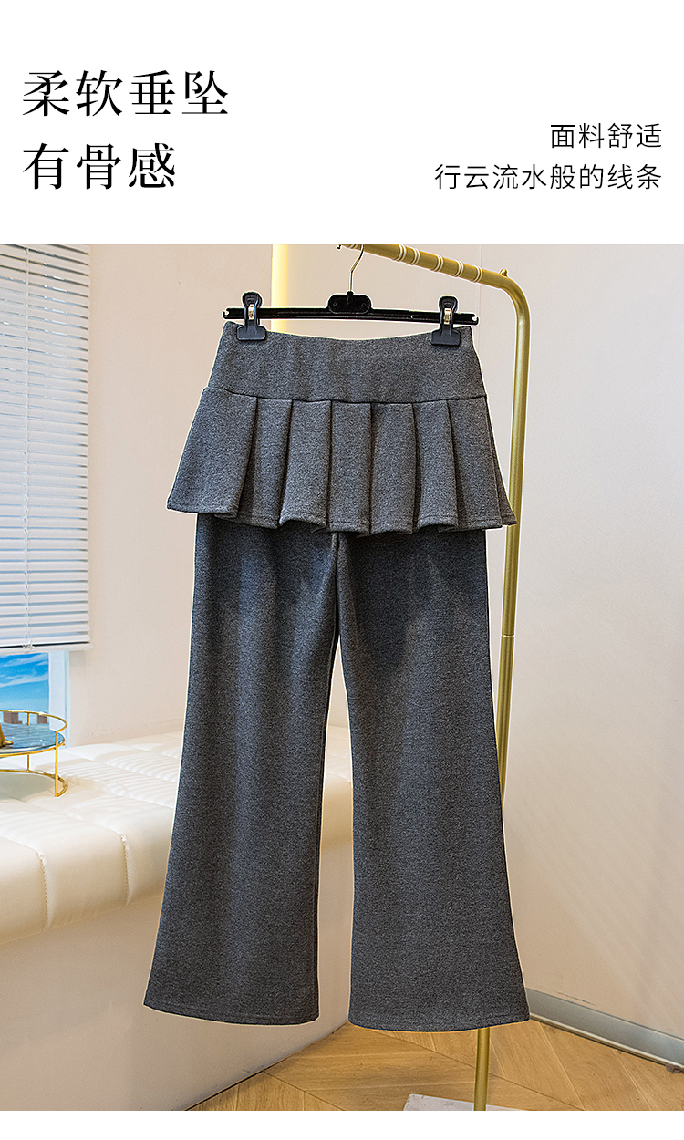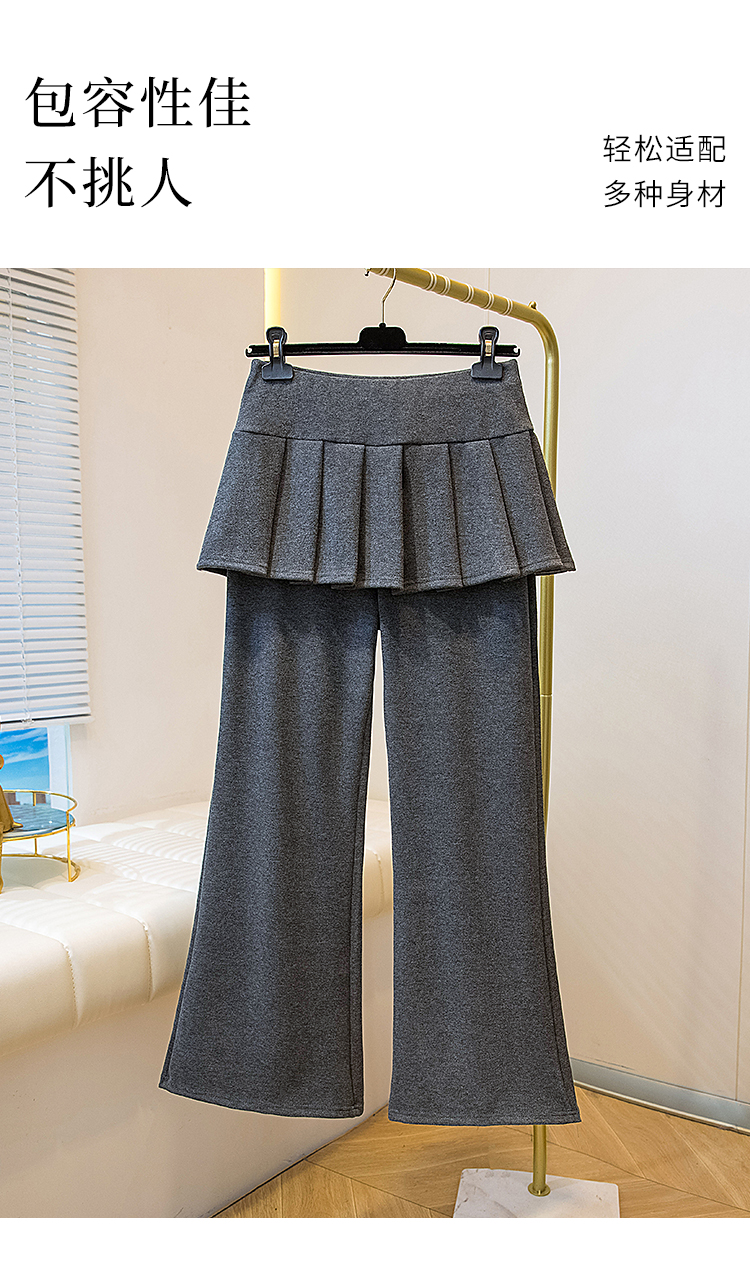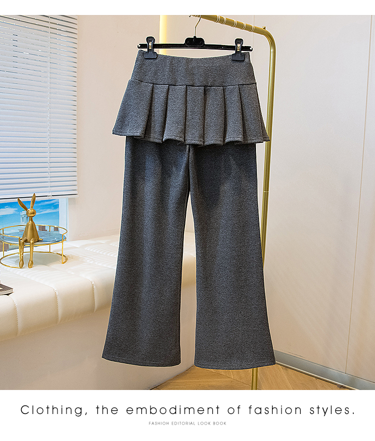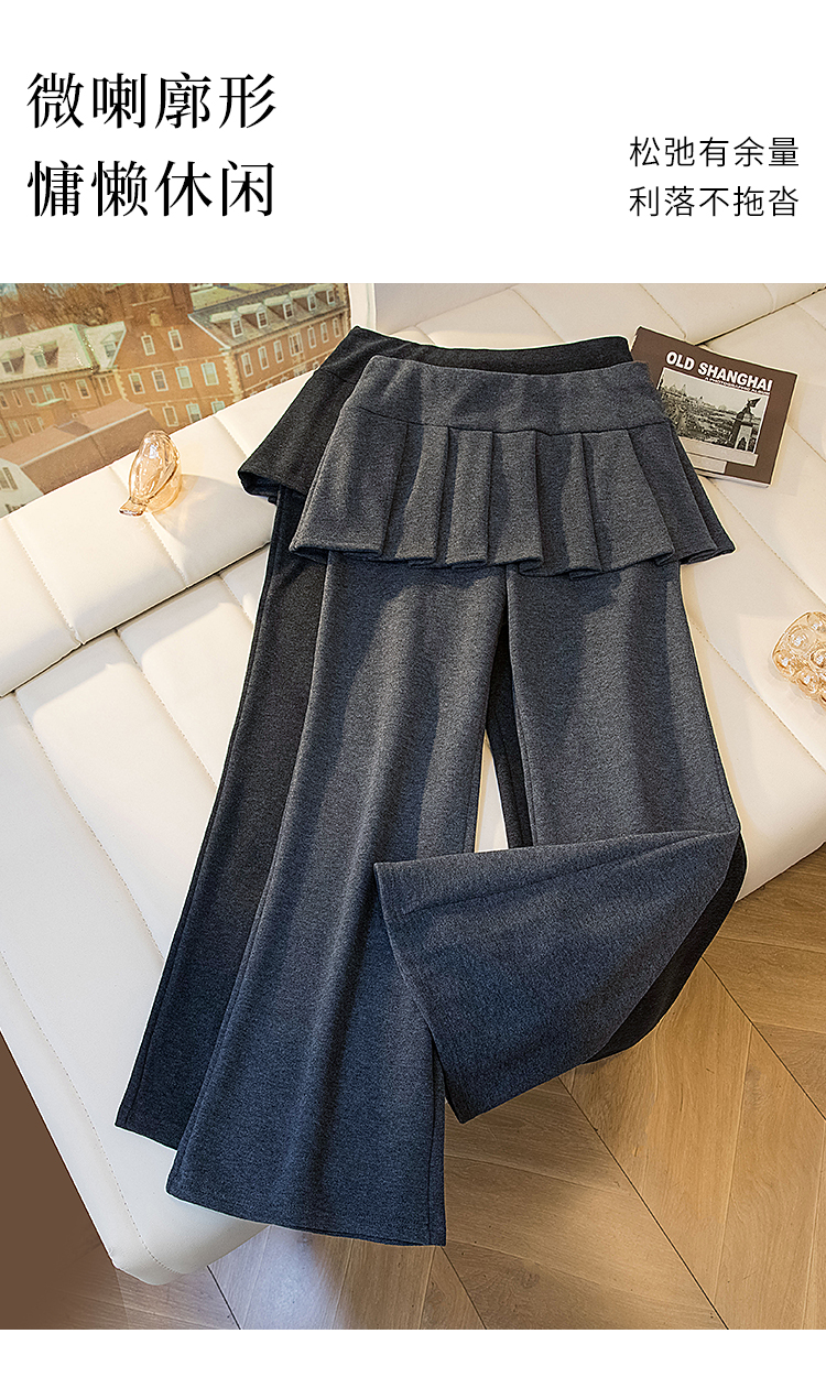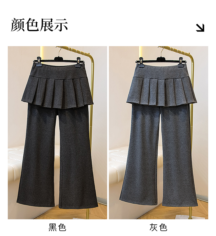 MY16915# 新款韩系叠穿假两件休闲微喇叭百褶屁帘裙修身显瘦长裤女女裝貨源服裝批發