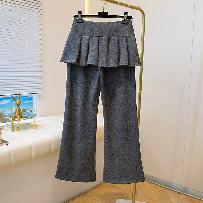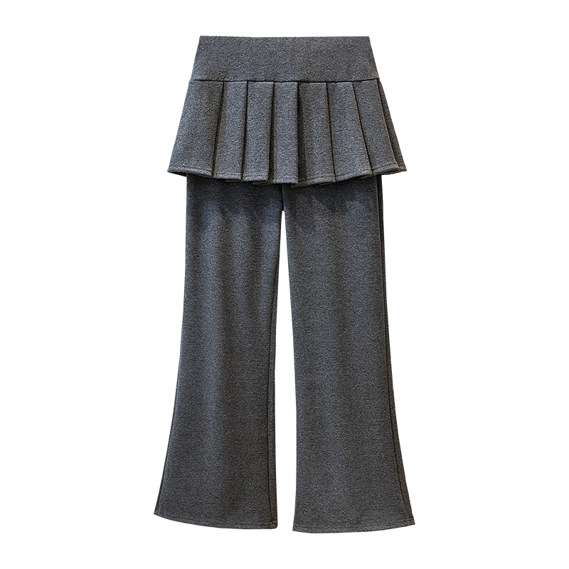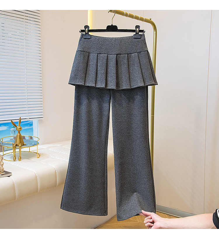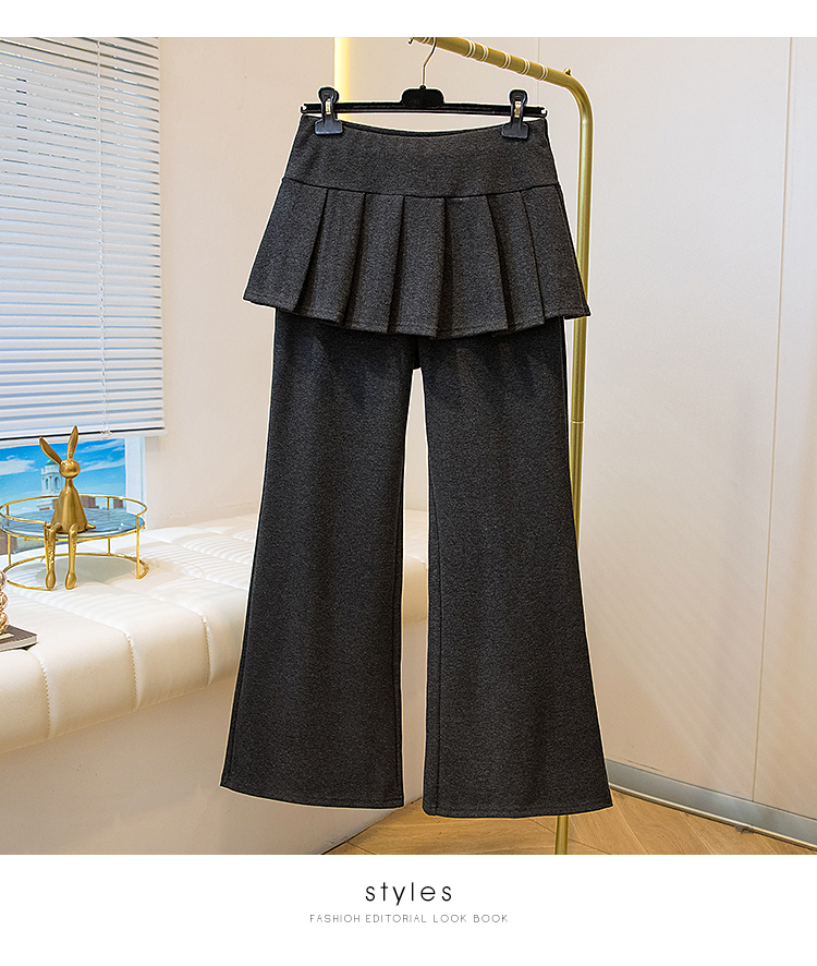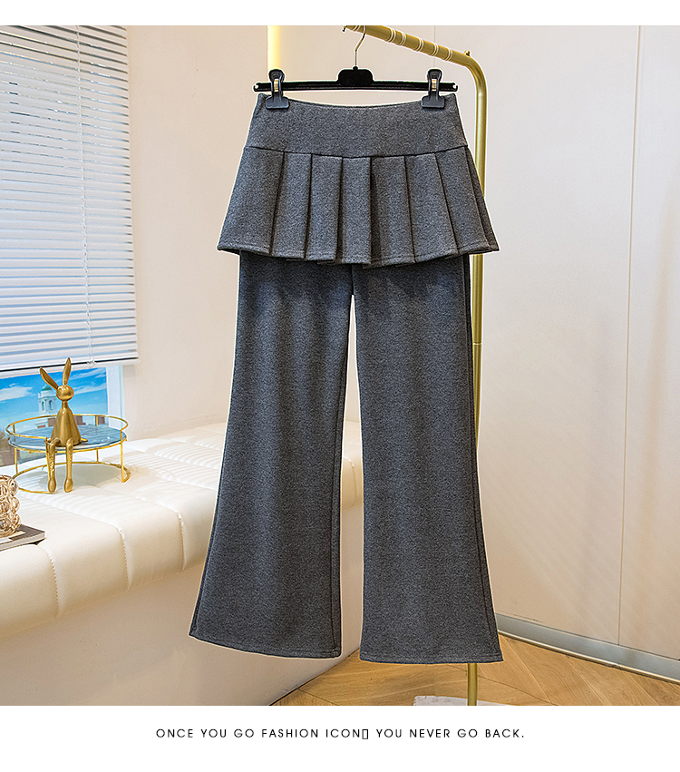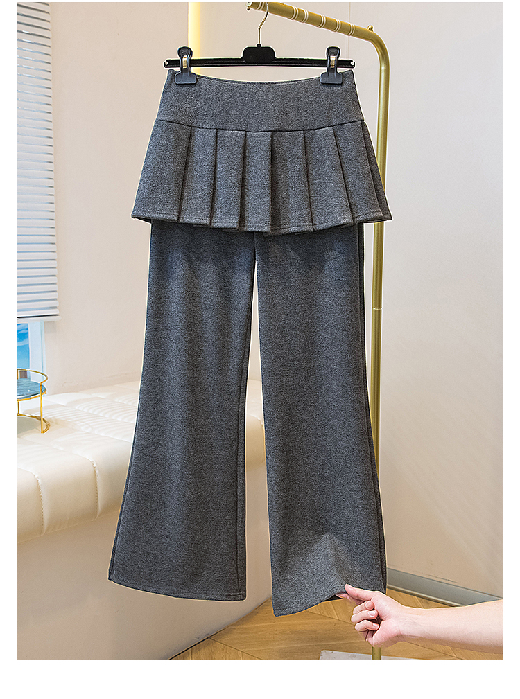 MY16915# 新款韩系叠穿假两件休闲微喇叭百褶屁帘裙修身显瘦长裤女女裝貨源服裝批發