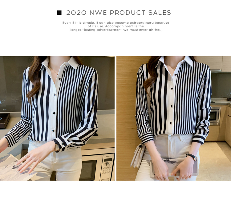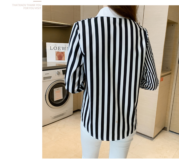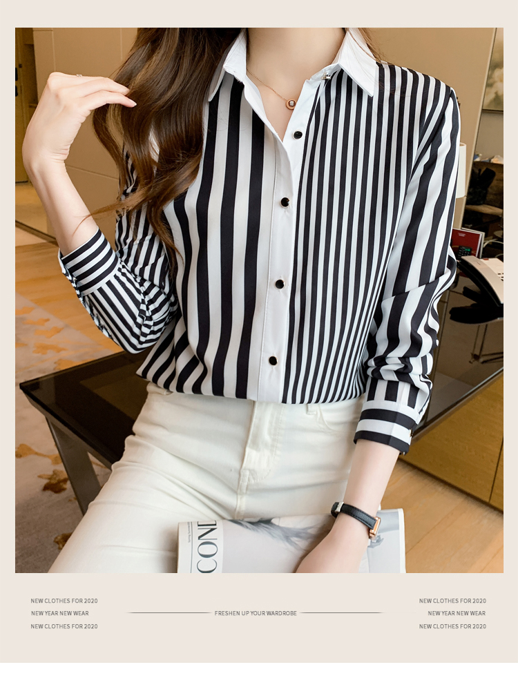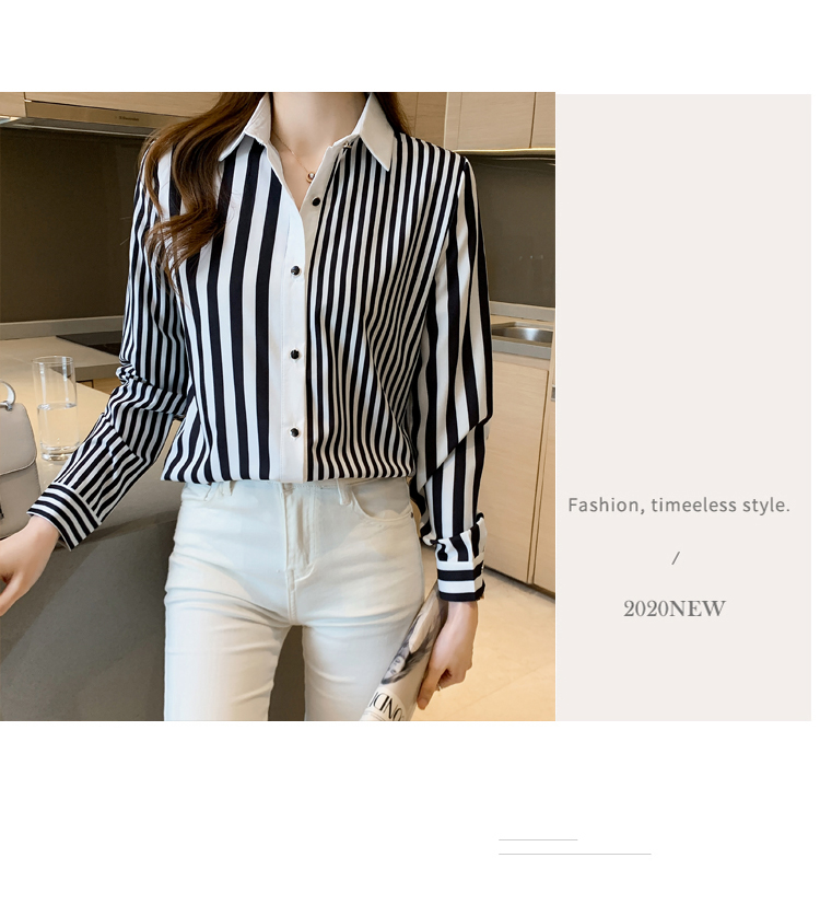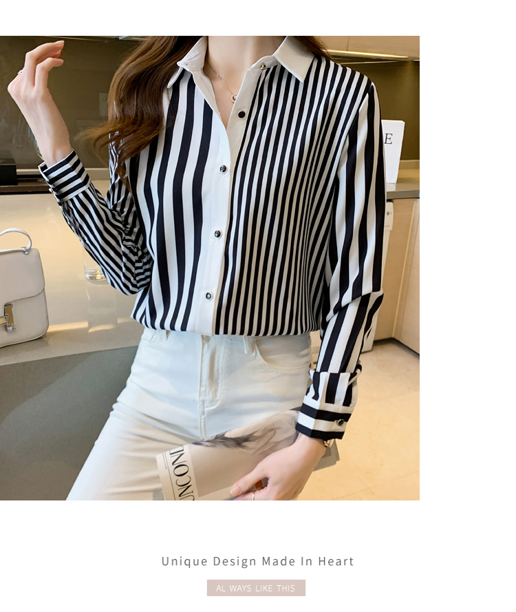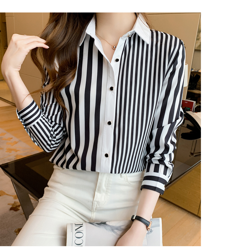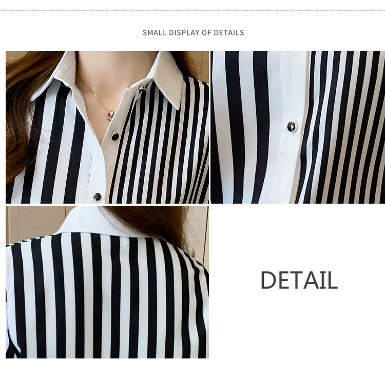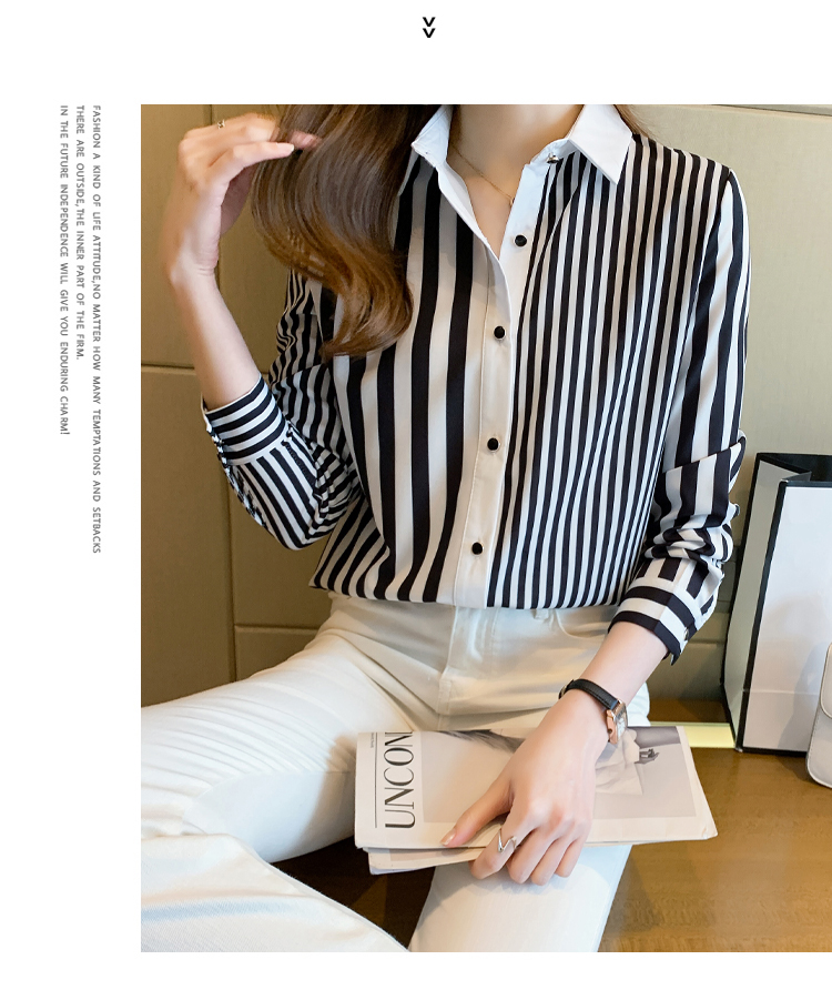 MY16936# 洋气休闲秋季新款女装翻领条纹雪纺衫上衣开衫衬衫打底衫衬衣女裝貨源服裝批發