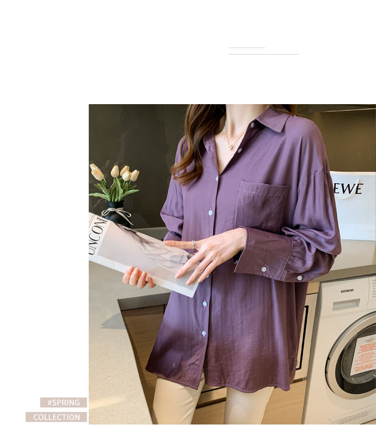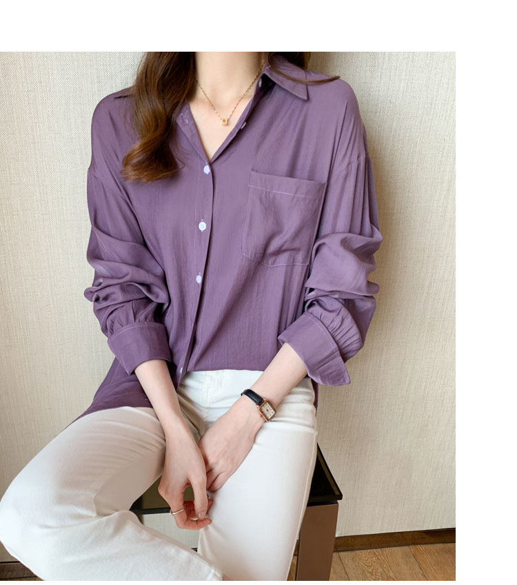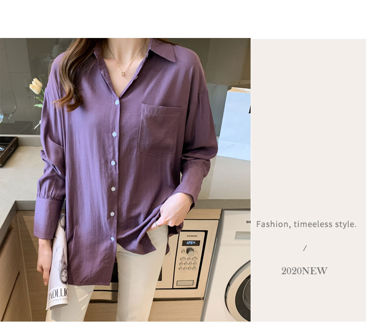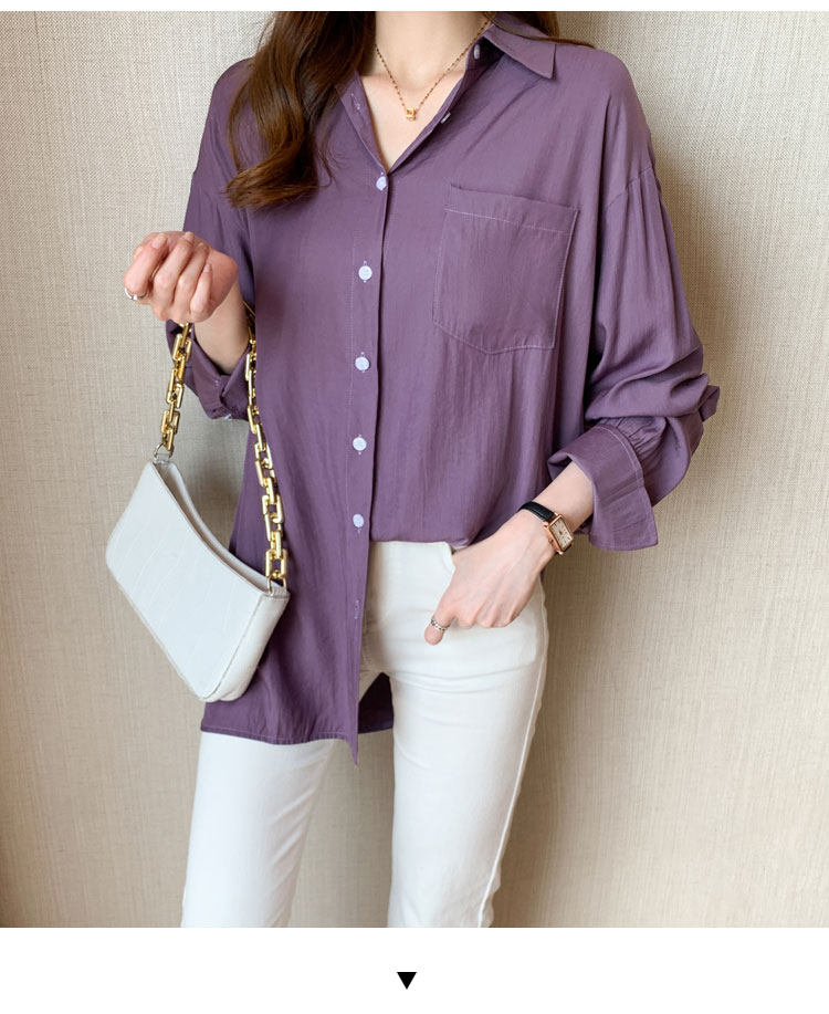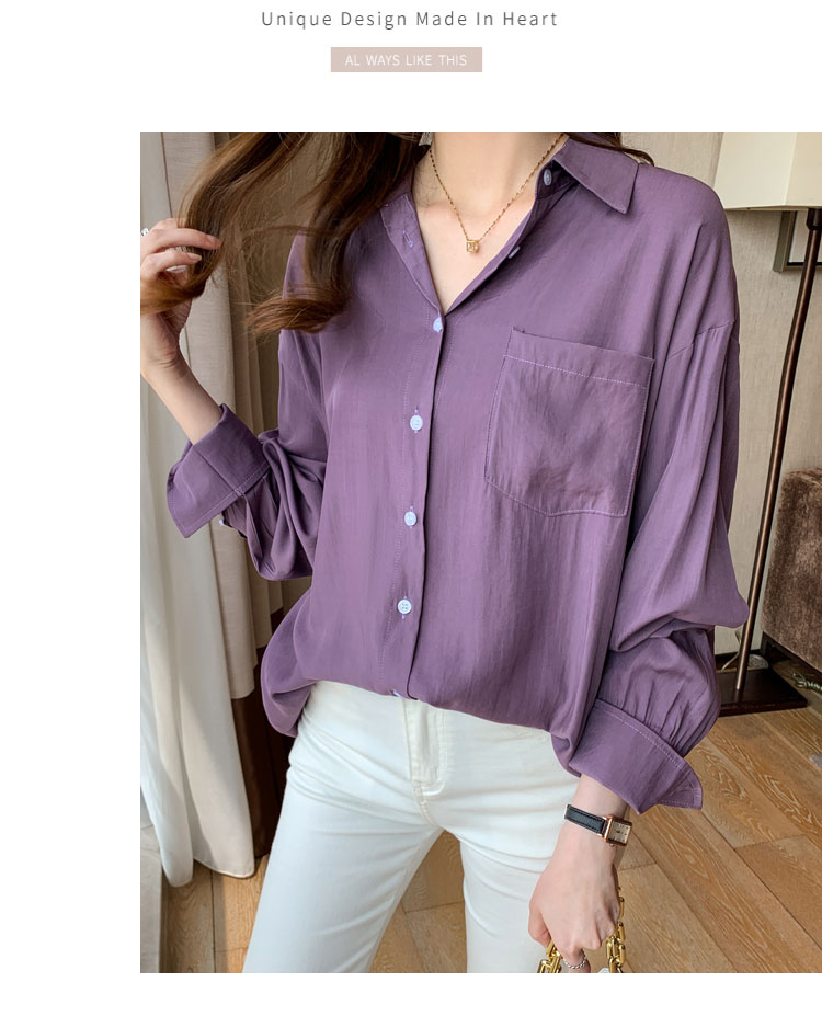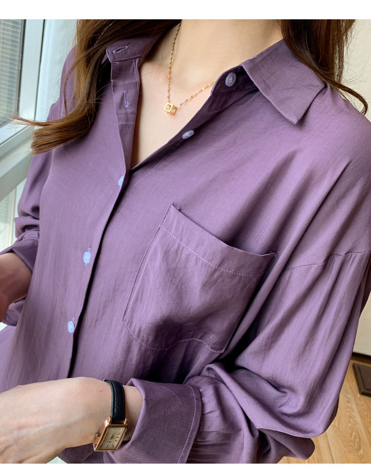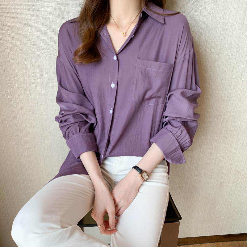 MY16937# 新款女装翻领紫色基础款雪纺衫开衫衬衫打底衫衬衣女裝貨源服裝批發