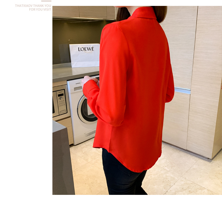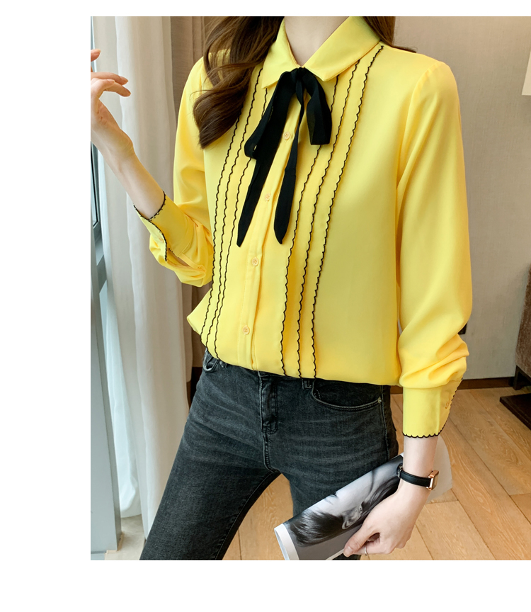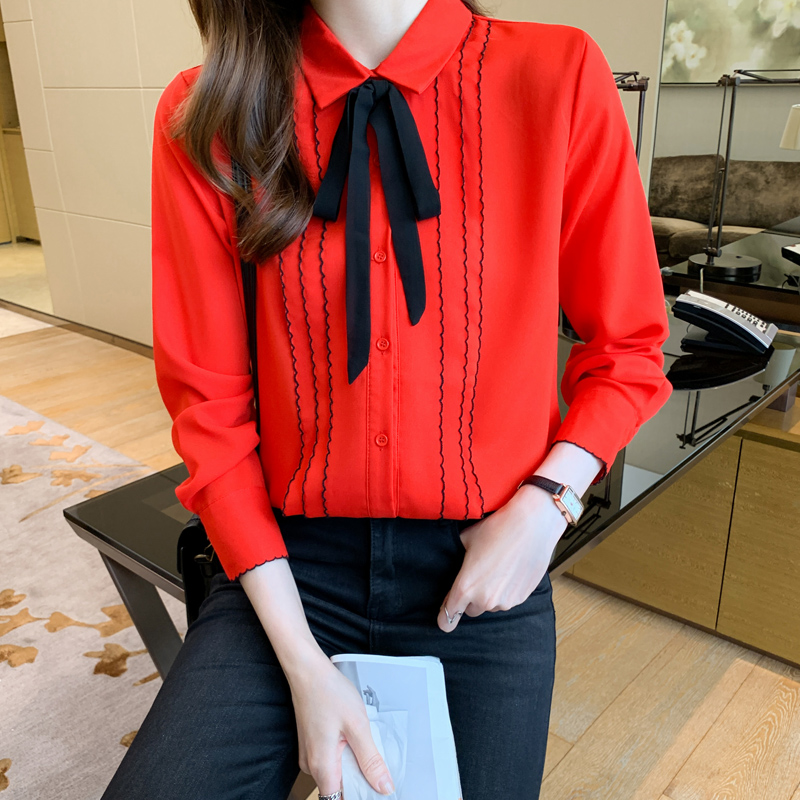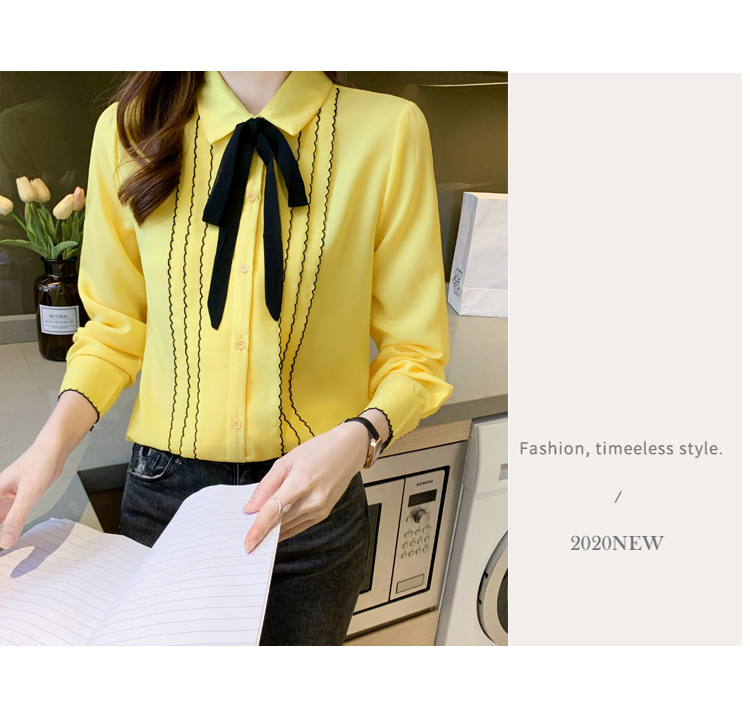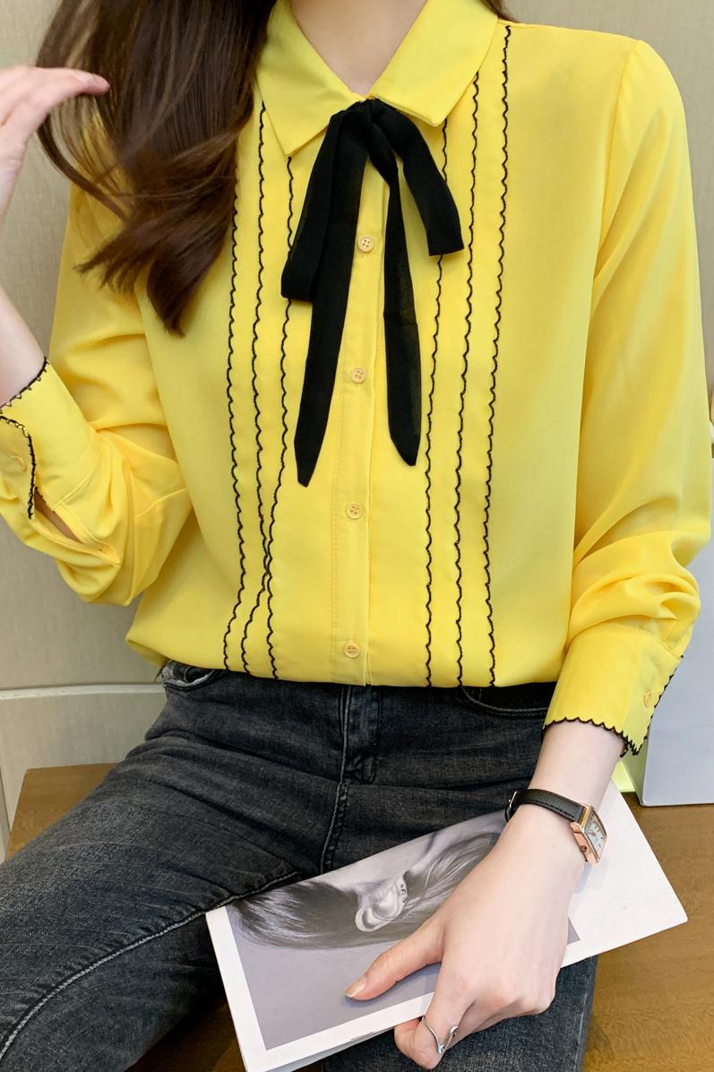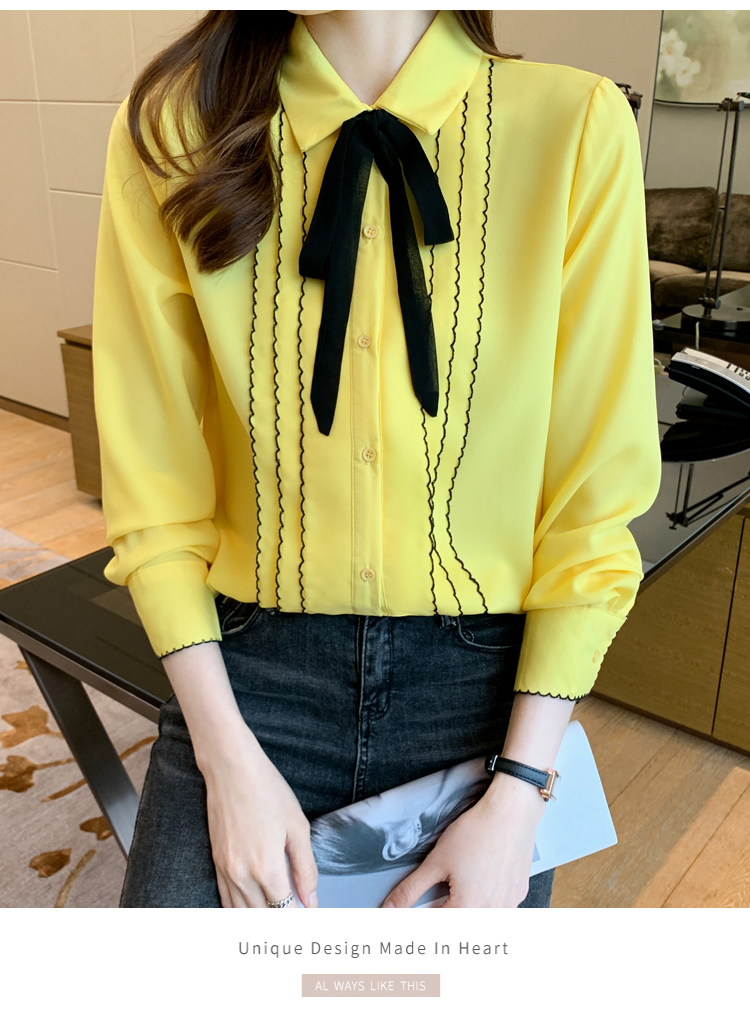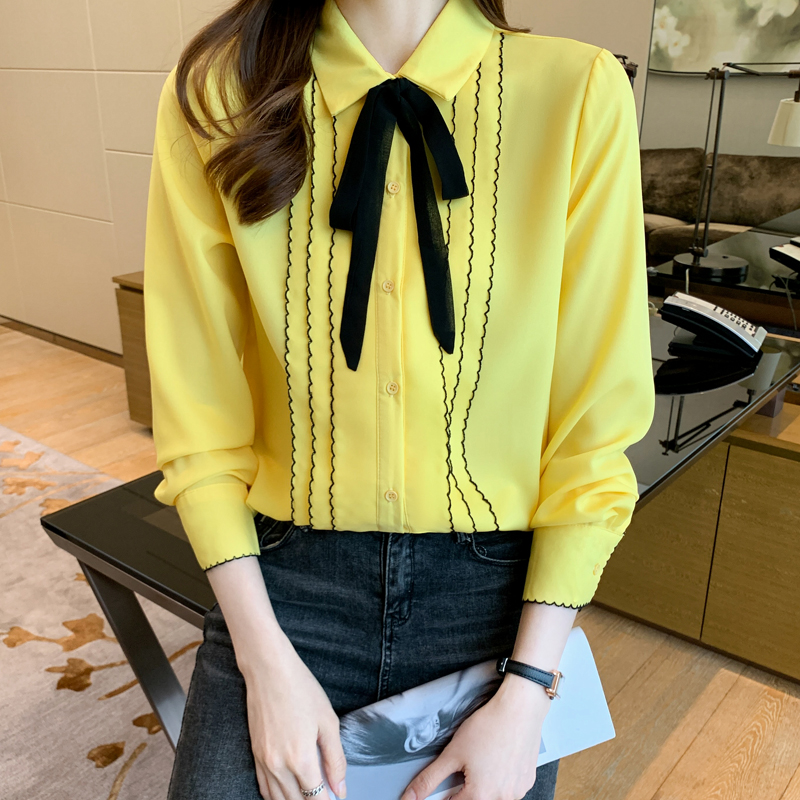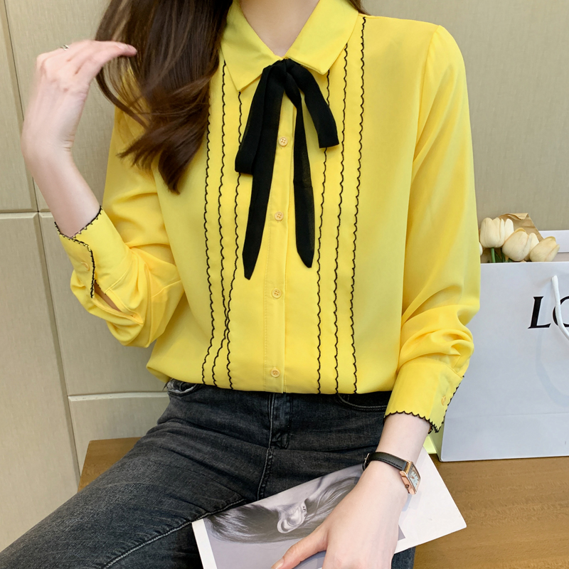 MY16938# 长袖雪纺衫气质上衣新款女装纯色翻领衬衫小衫女打底衫女裝貨源服裝批發