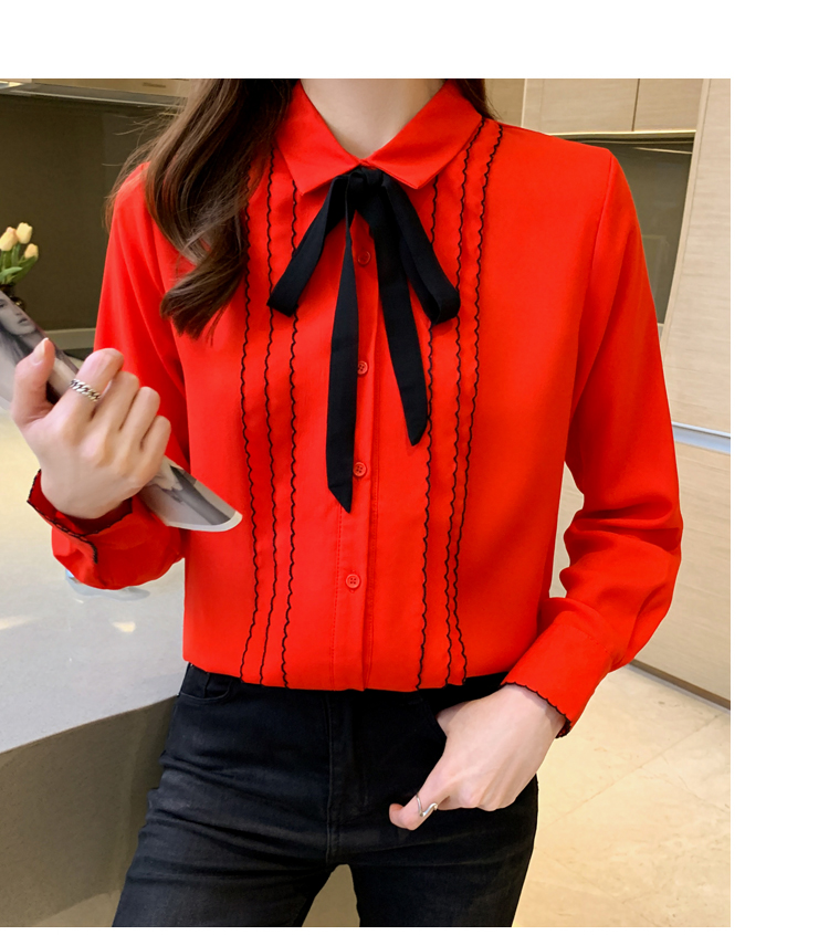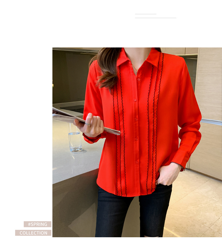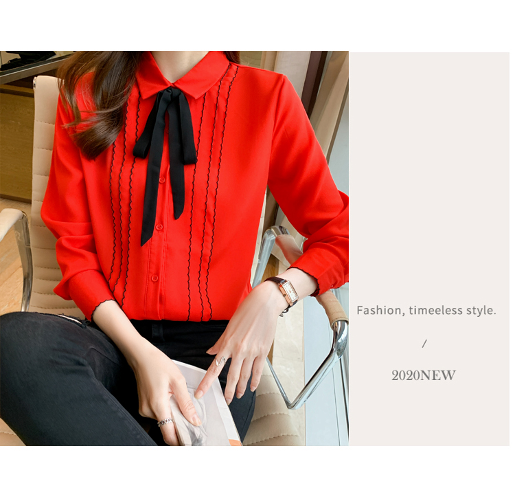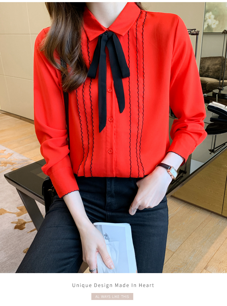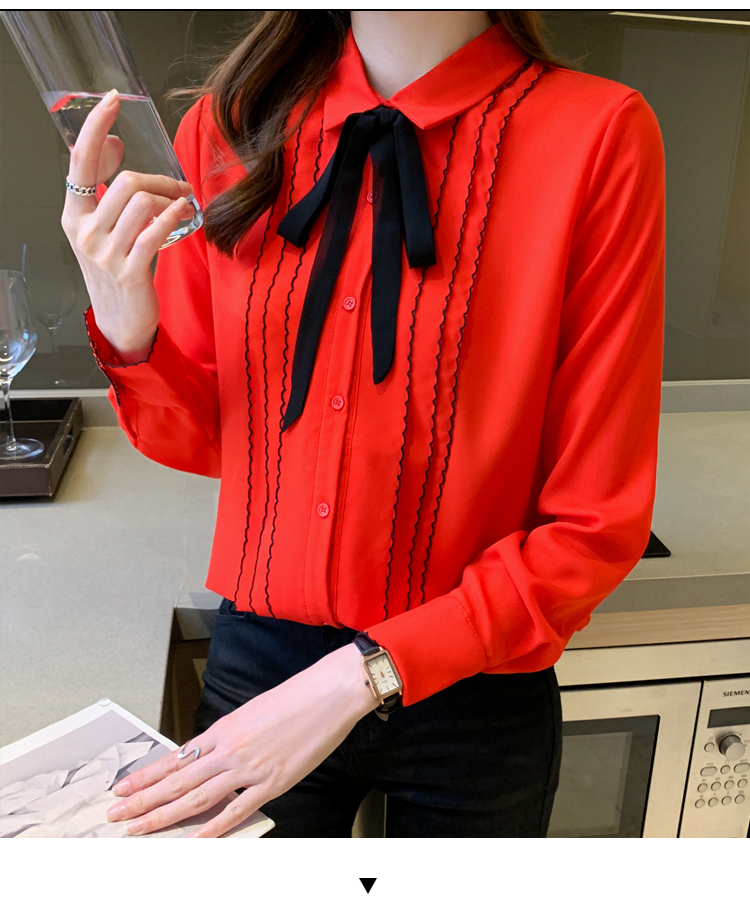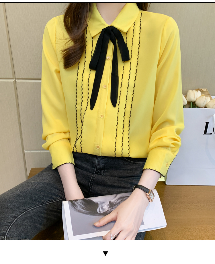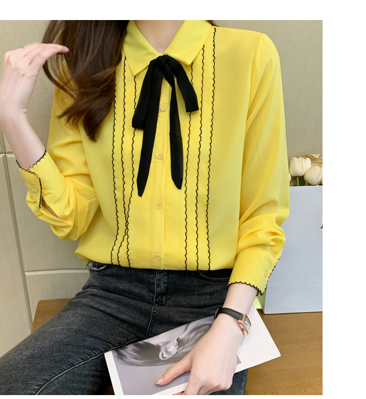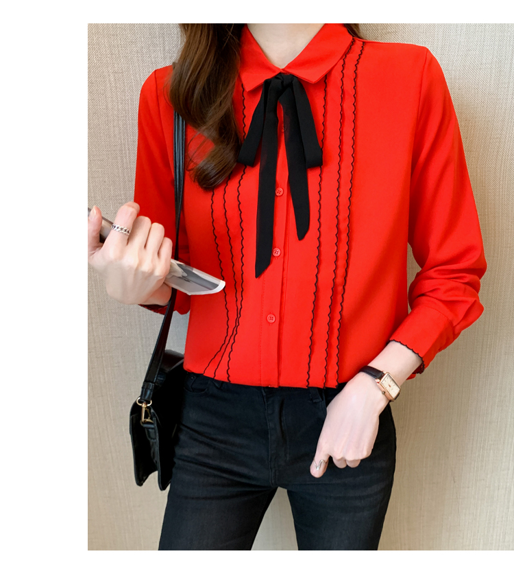 MY16938# 长袖雪纺衫气质上衣新款女装纯色翻领衬衫小衫女打底衫女裝貨源服裝批發