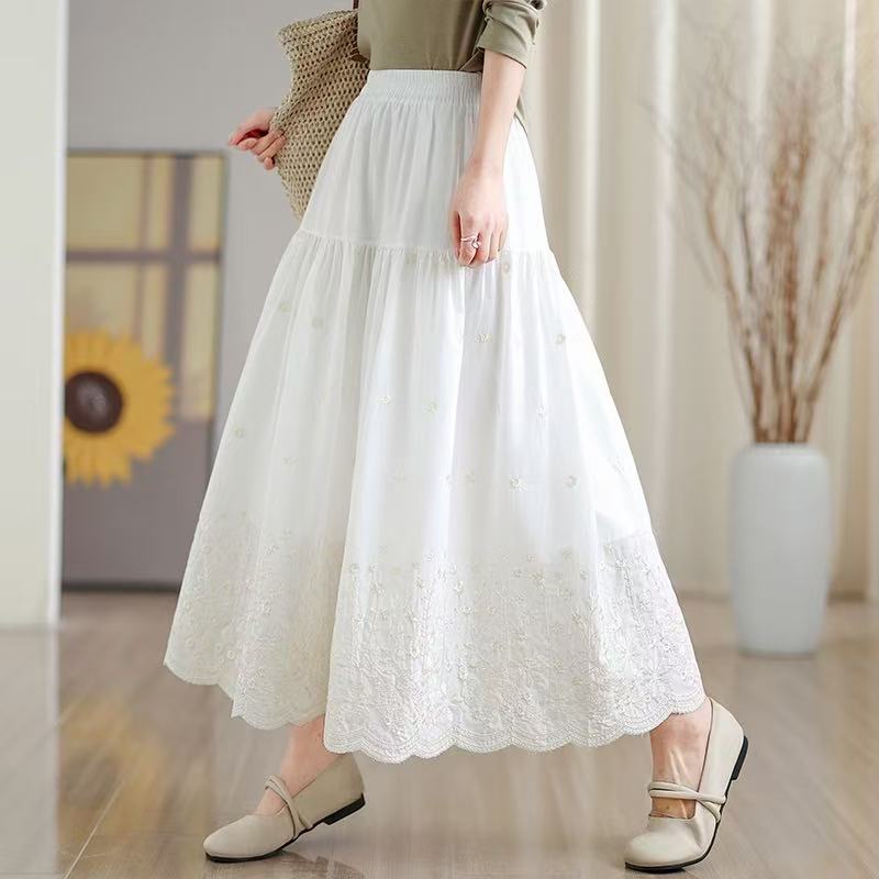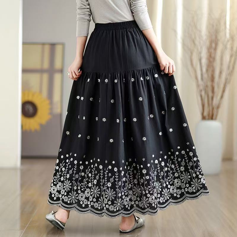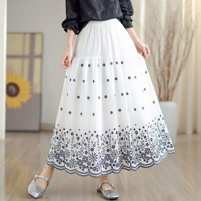 MY16940# 实拍 拼接碎花刺绣半身裙女春季新款温柔风高腰显瘦蛋糕裙A字长裙女裝貨源服裝批發