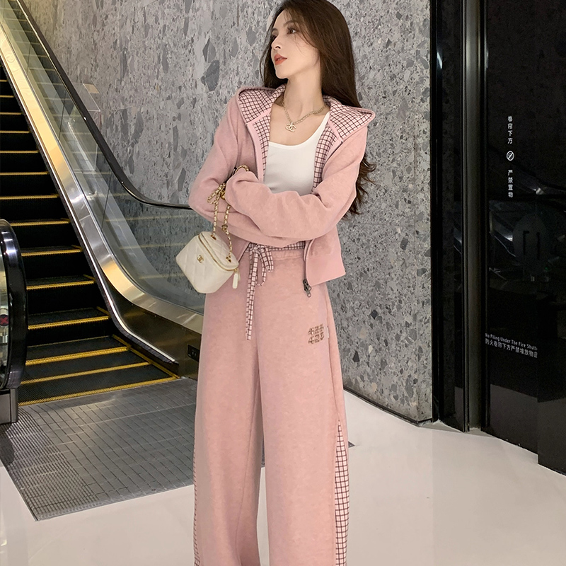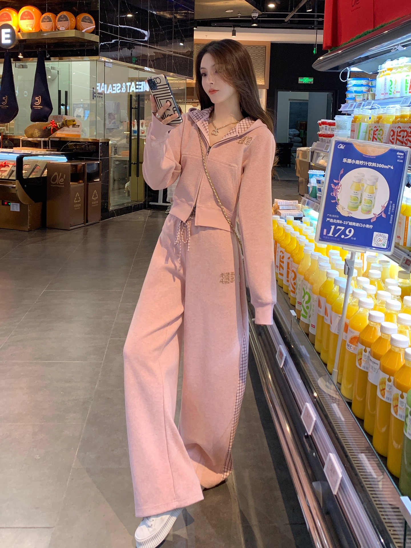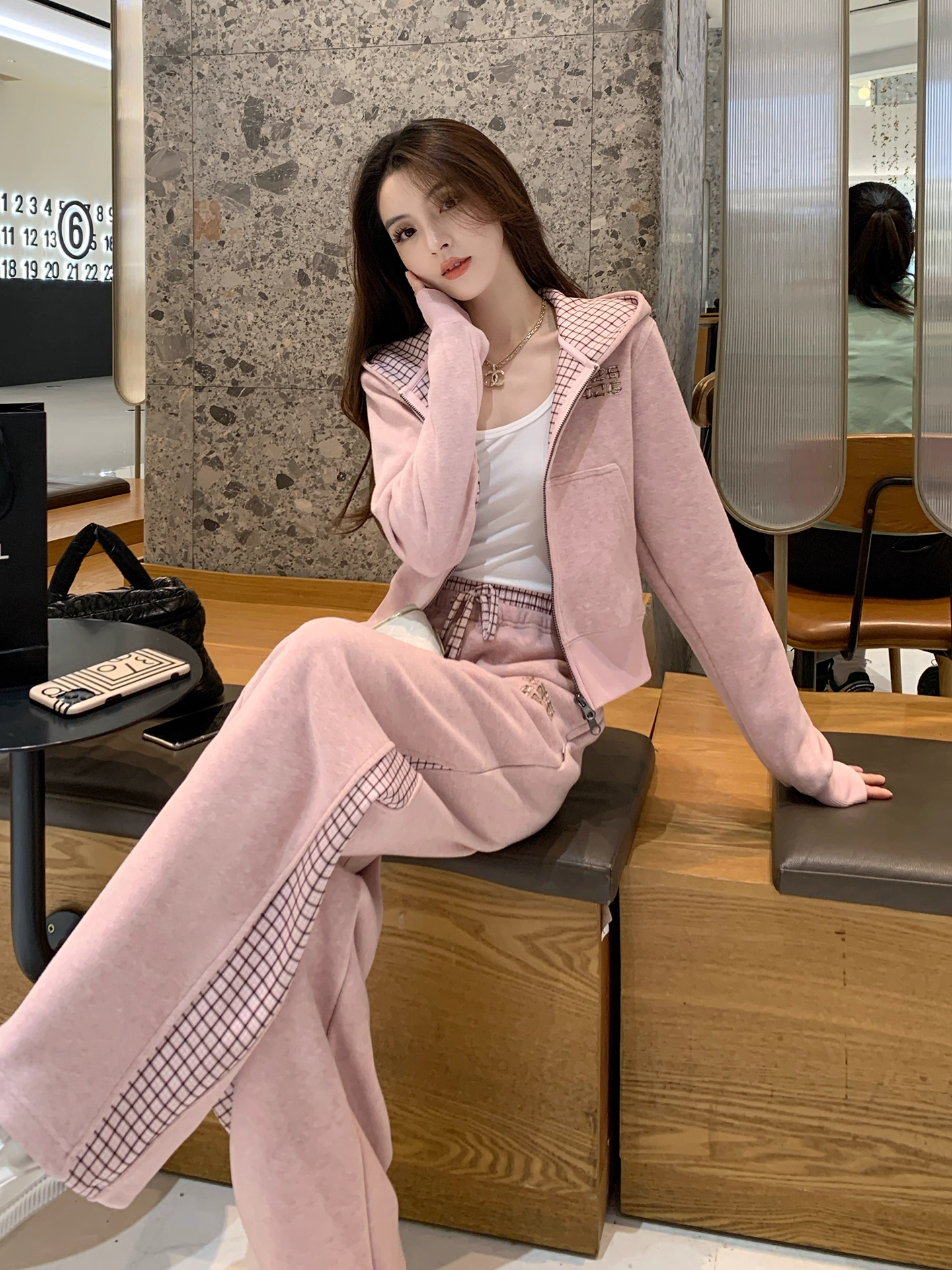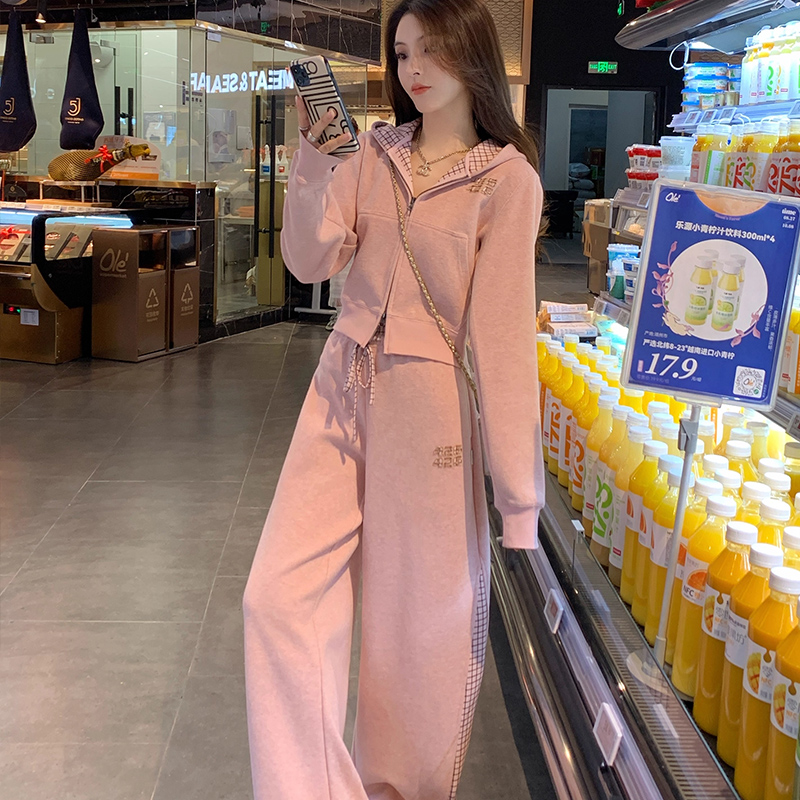 MY16946# 巨好看的早秋套装减龄超火高级感卫衣阔腿裤运动休闲两件套女裝貨源服裝批發