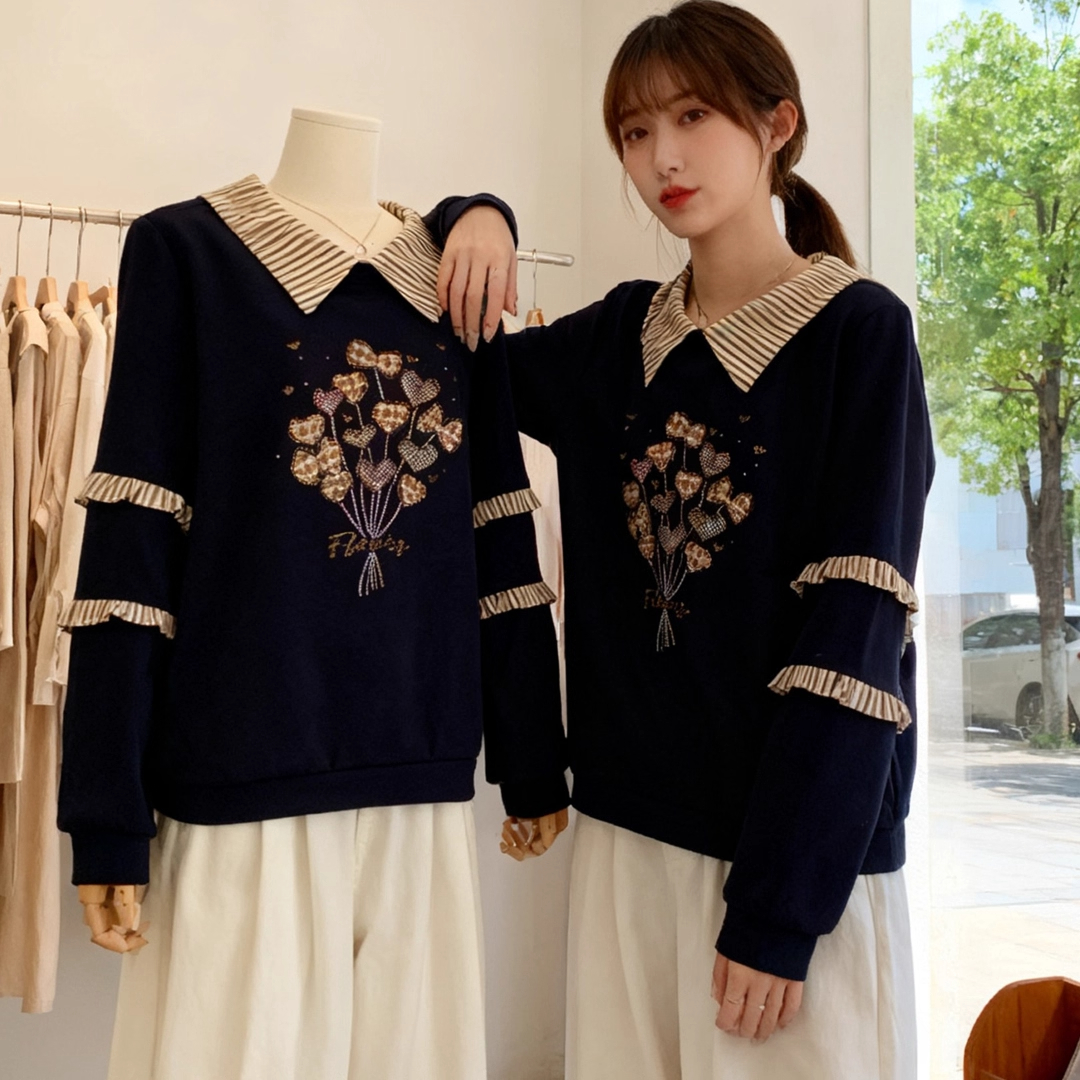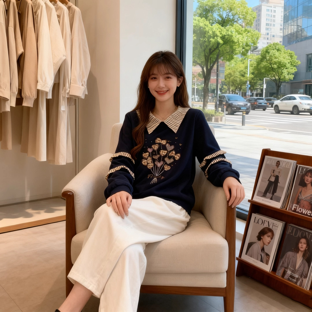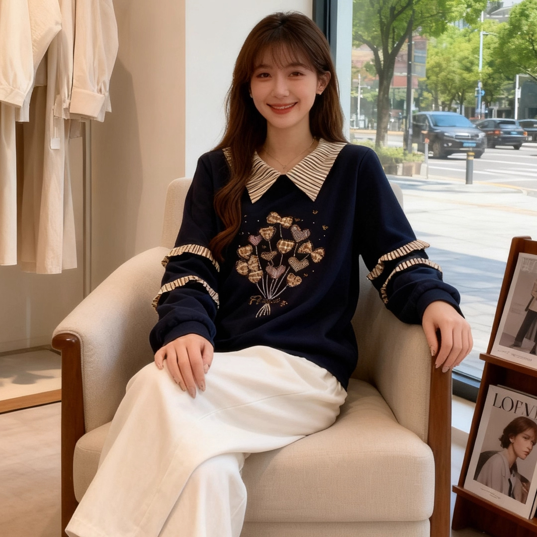 MY16947# 新款高端奢华超好看洋气时髦小个子炸街减龄别致印花卫衣女裝貨源服裝批發