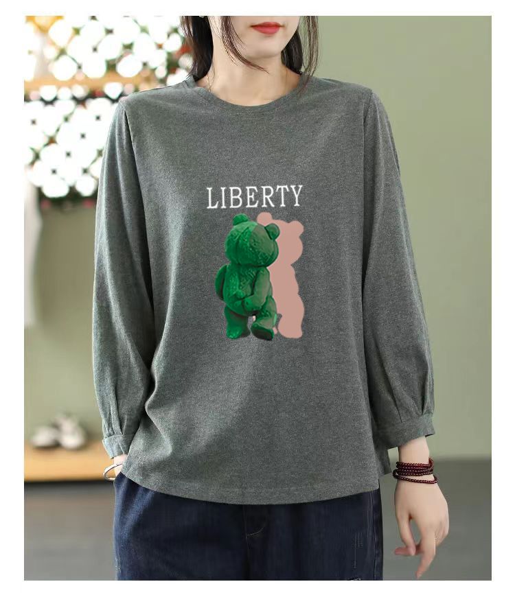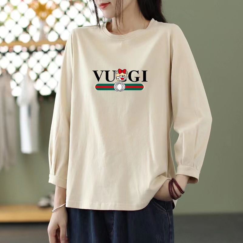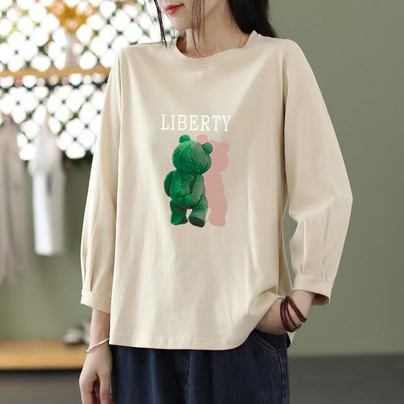 MY16967# 文艺纯棉九分袖T恤新款韩版宽松大码显瘦中袖圆领上衣女裝貨源服裝批發