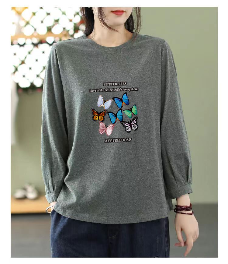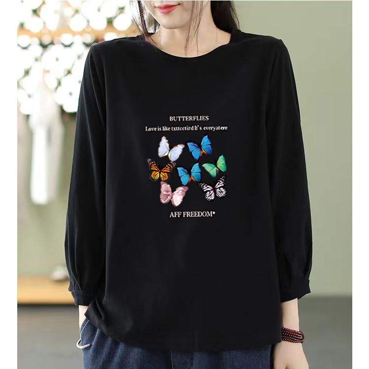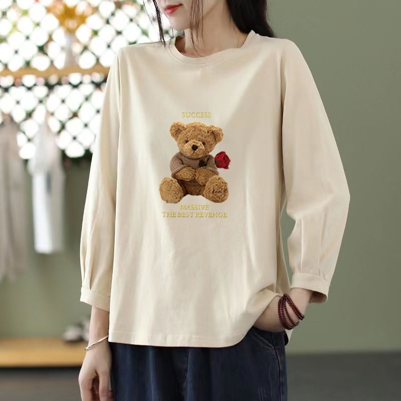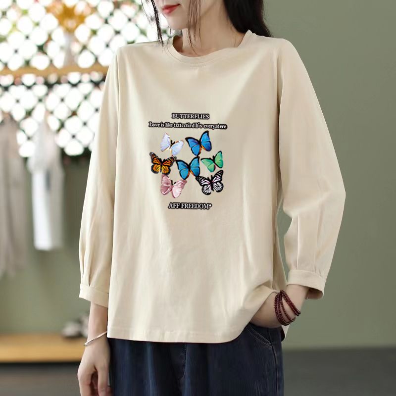 MY16968# 文艺纯棉九分袖T恤新款韩版宽松大码显瘦中袖圆领上衣女裝貨源服裝批發