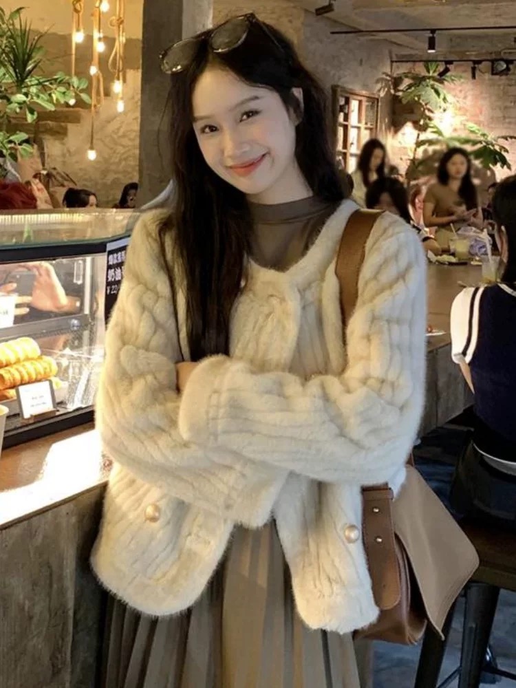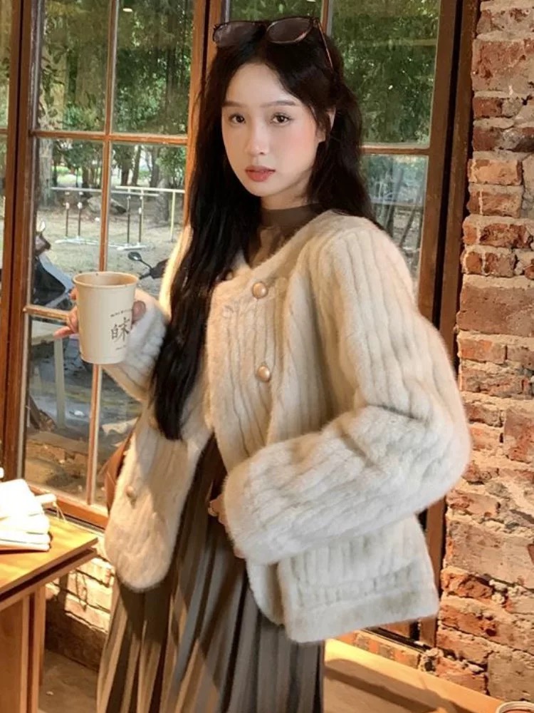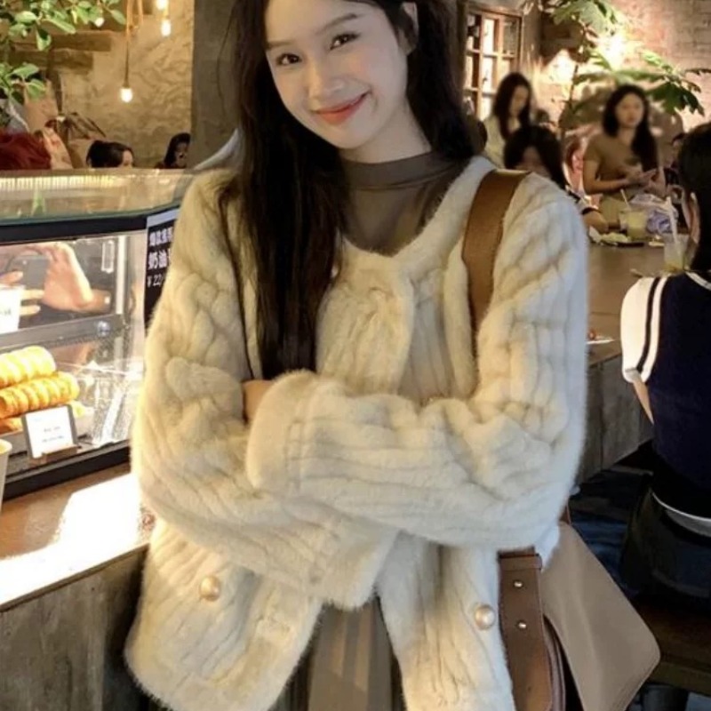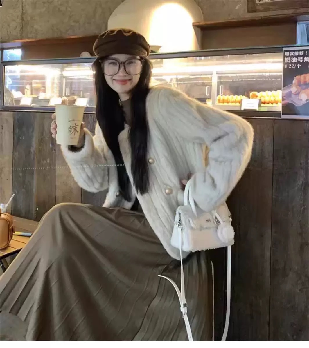MY17031# 外套新款显瘦小香风短款大衣宽松皮毛一体加厚仿水貂绒女裝貨源服裝批發
