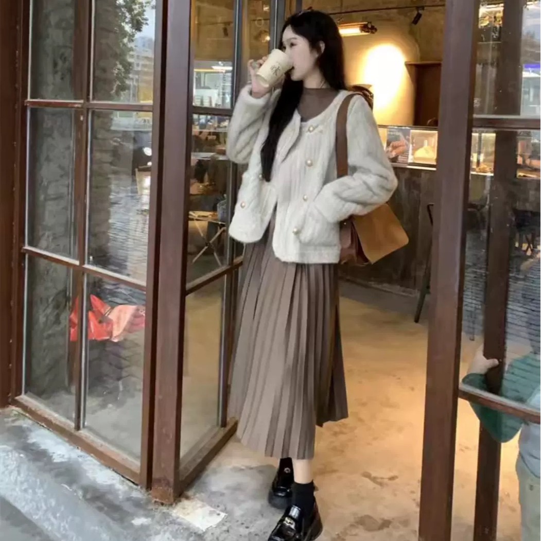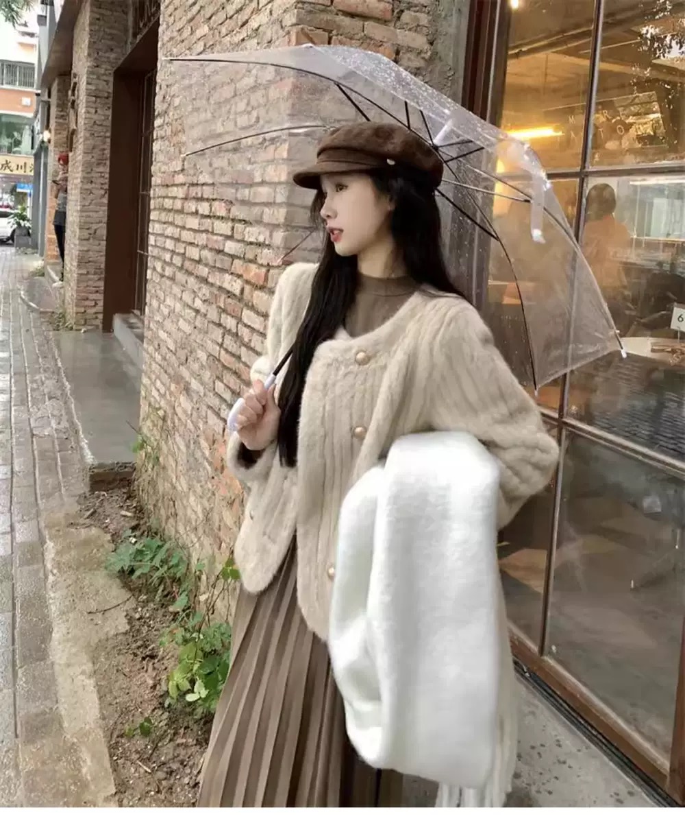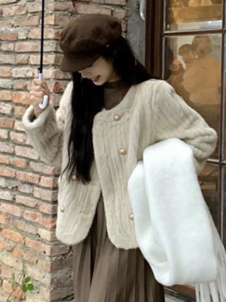 MY17031# 外套新款显瘦小香风短款大衣宽松皮毛一体加厚仿水貂绒女裝貨源服裝批發