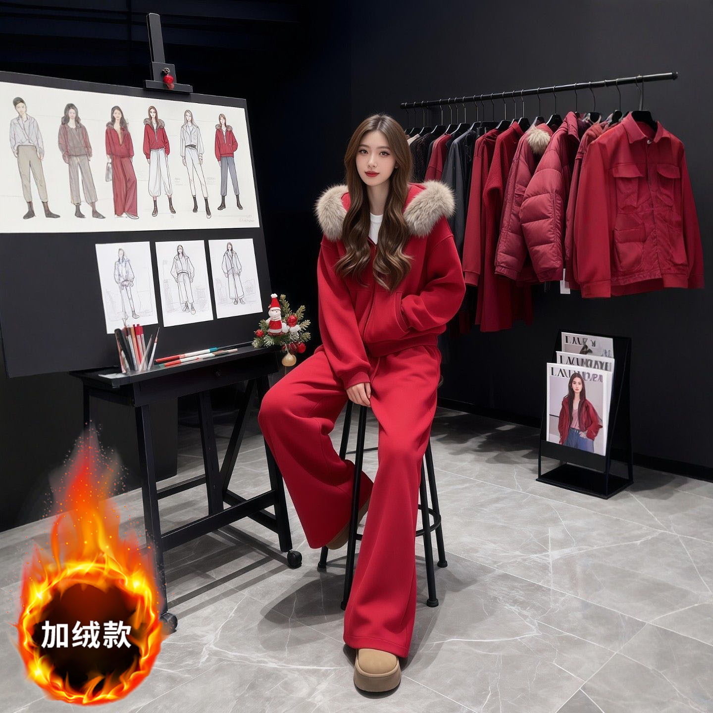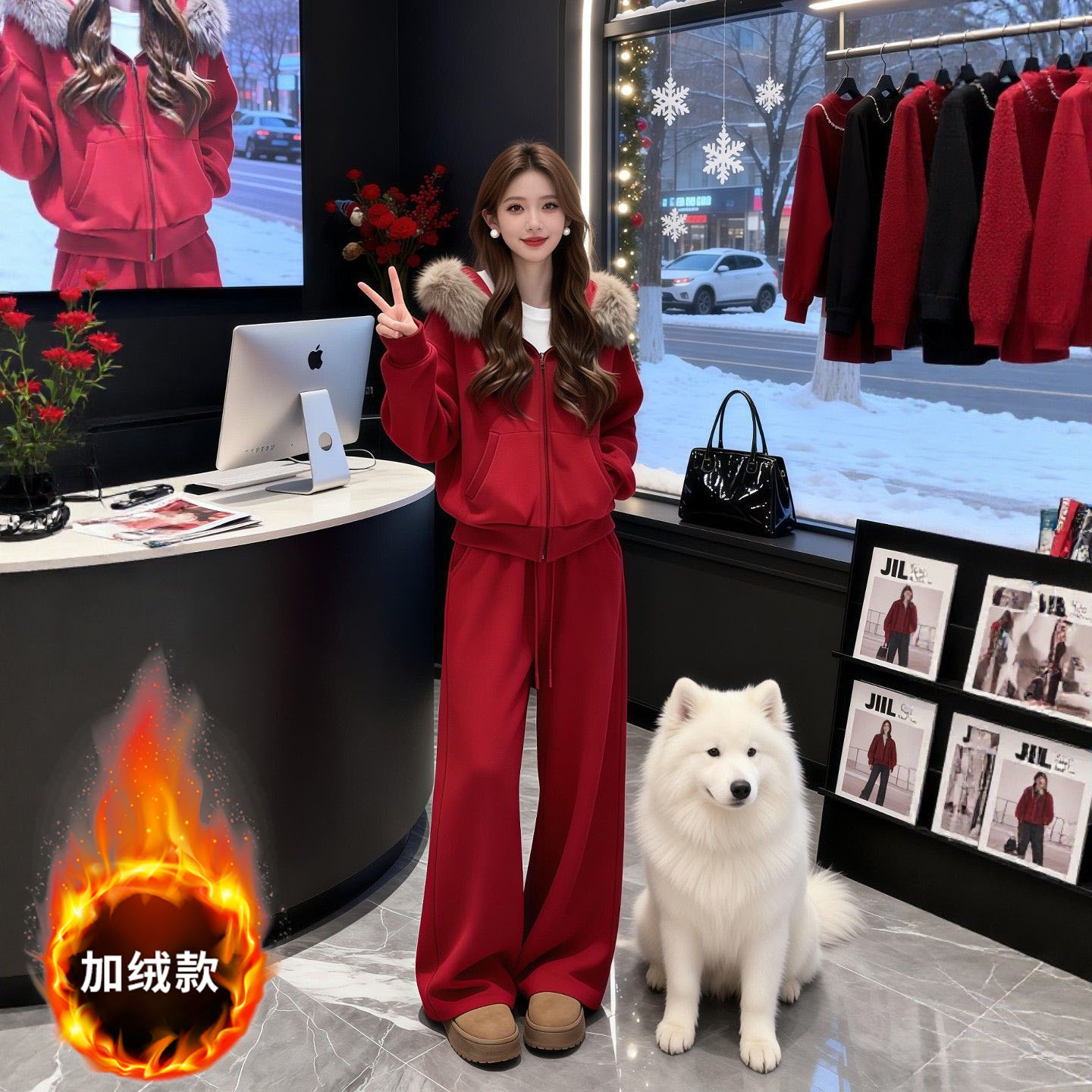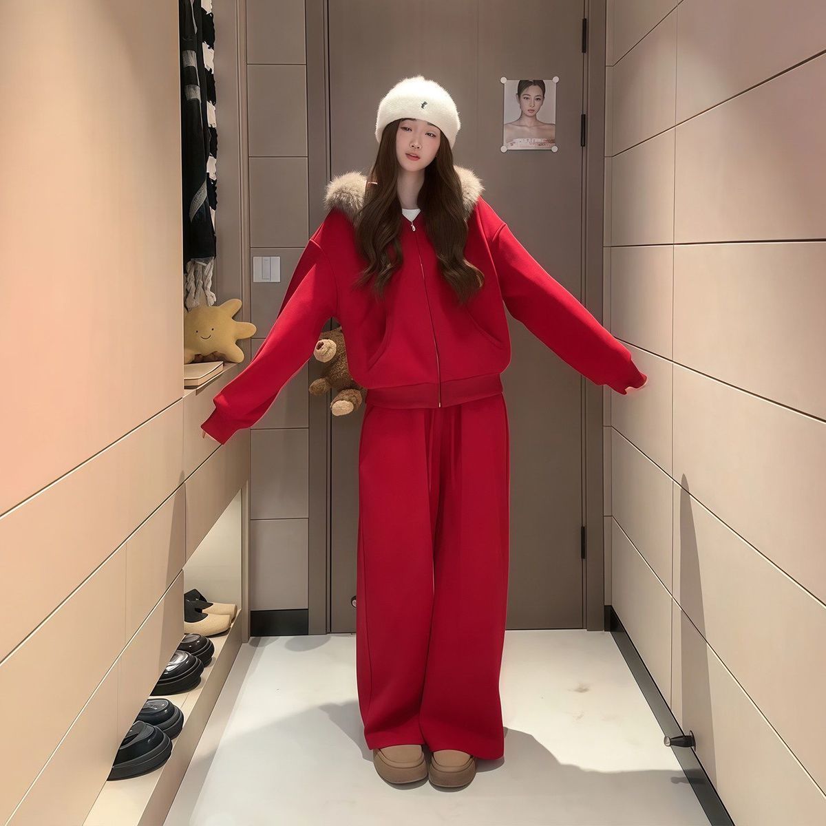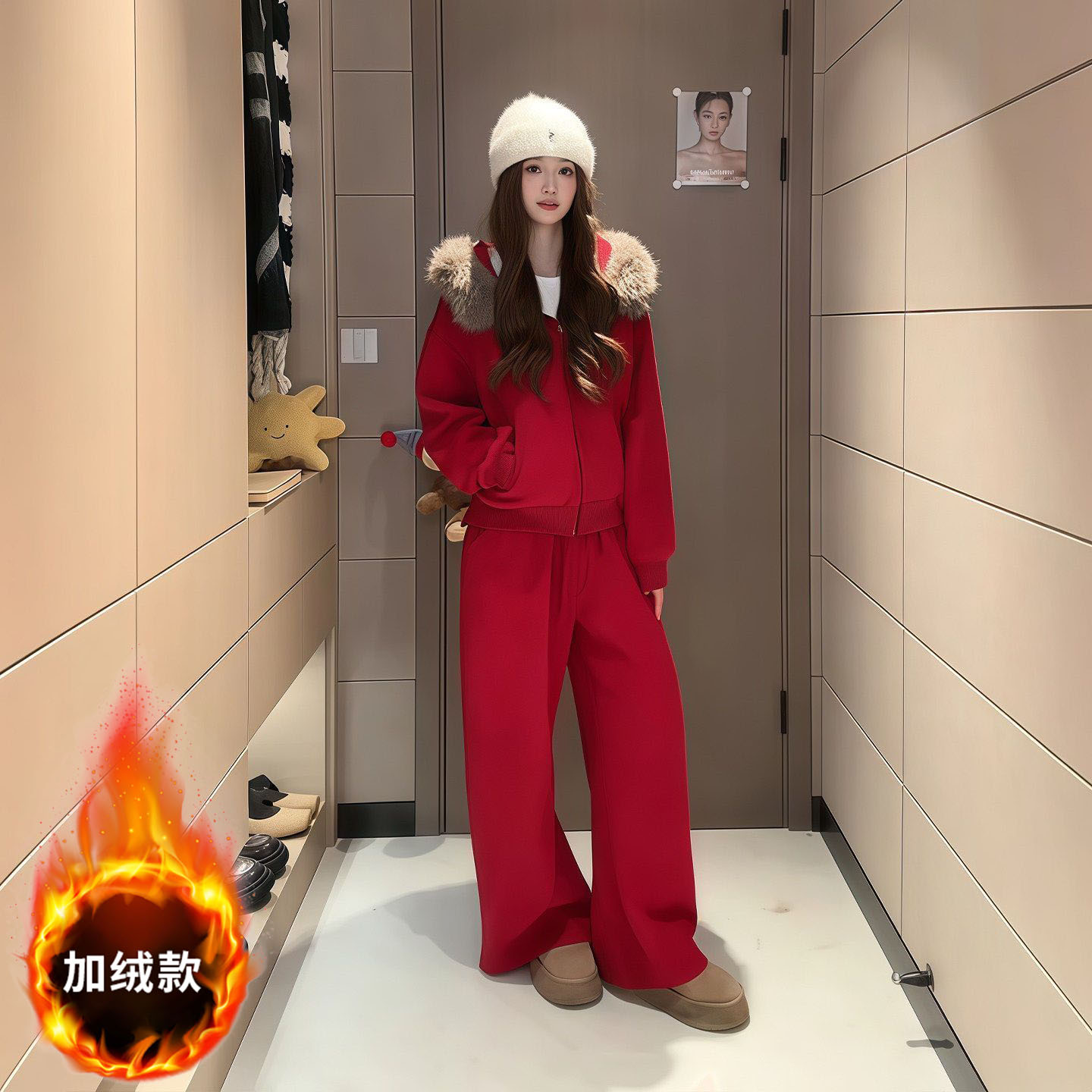 MY17440# 运动套装巨好看加绒连帽卫衣外套阔腿裤子一整套女裝貨源服裝批發